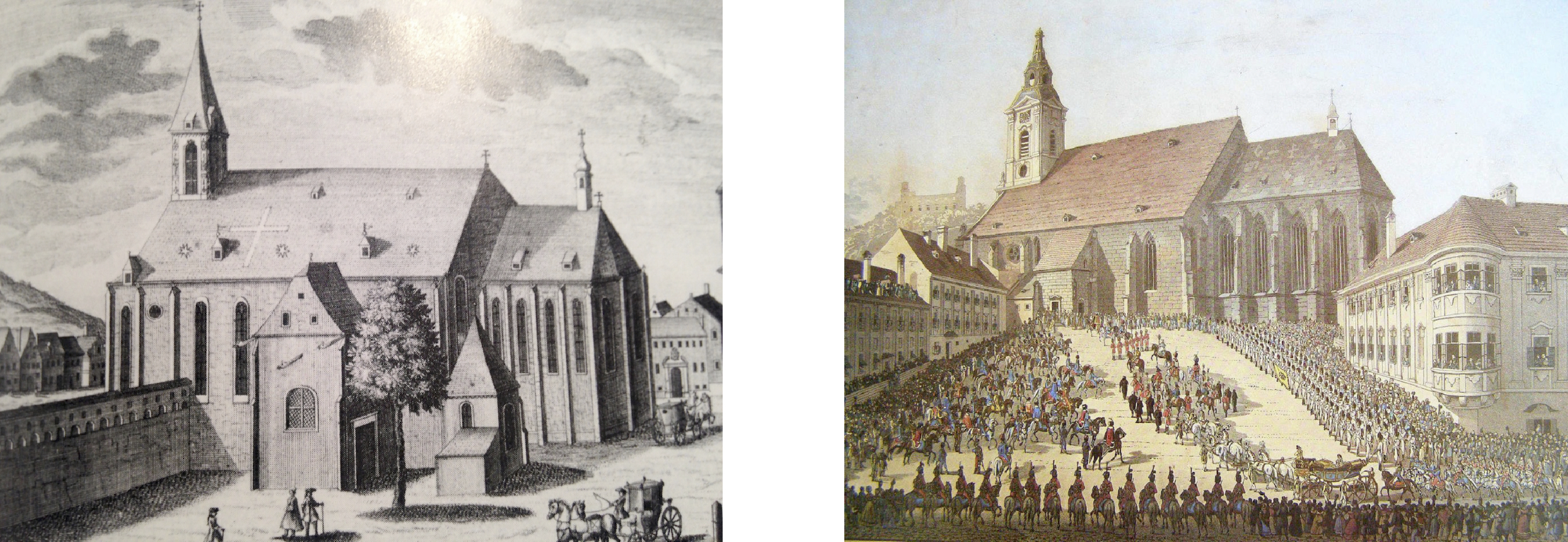 Baroková úprava prestavby mestského opevnenia bola prevedená po roku 1775, kedy po regulácii mesta podľa Fr. A. Hillebrandta sa začalo s asanáciou a prestavbou hradieb. Bolo prevedené kompozičné dotvorenie juhozápadnej fronty Rudnayovho námestia, úpravou dvoch svažujúcich sa terás a výtvarne súhlasne pojaté stvárnenie priečelí oboch obytných domov. Obidva domy sú dokladom bytovej kultúry z konca 18. storočia a tiež výtvarného zvládnutia náročného riešenia priestranstva námestia dotvárajúceho pohľady na gotickú architektúru Dómu Sv. Martina.