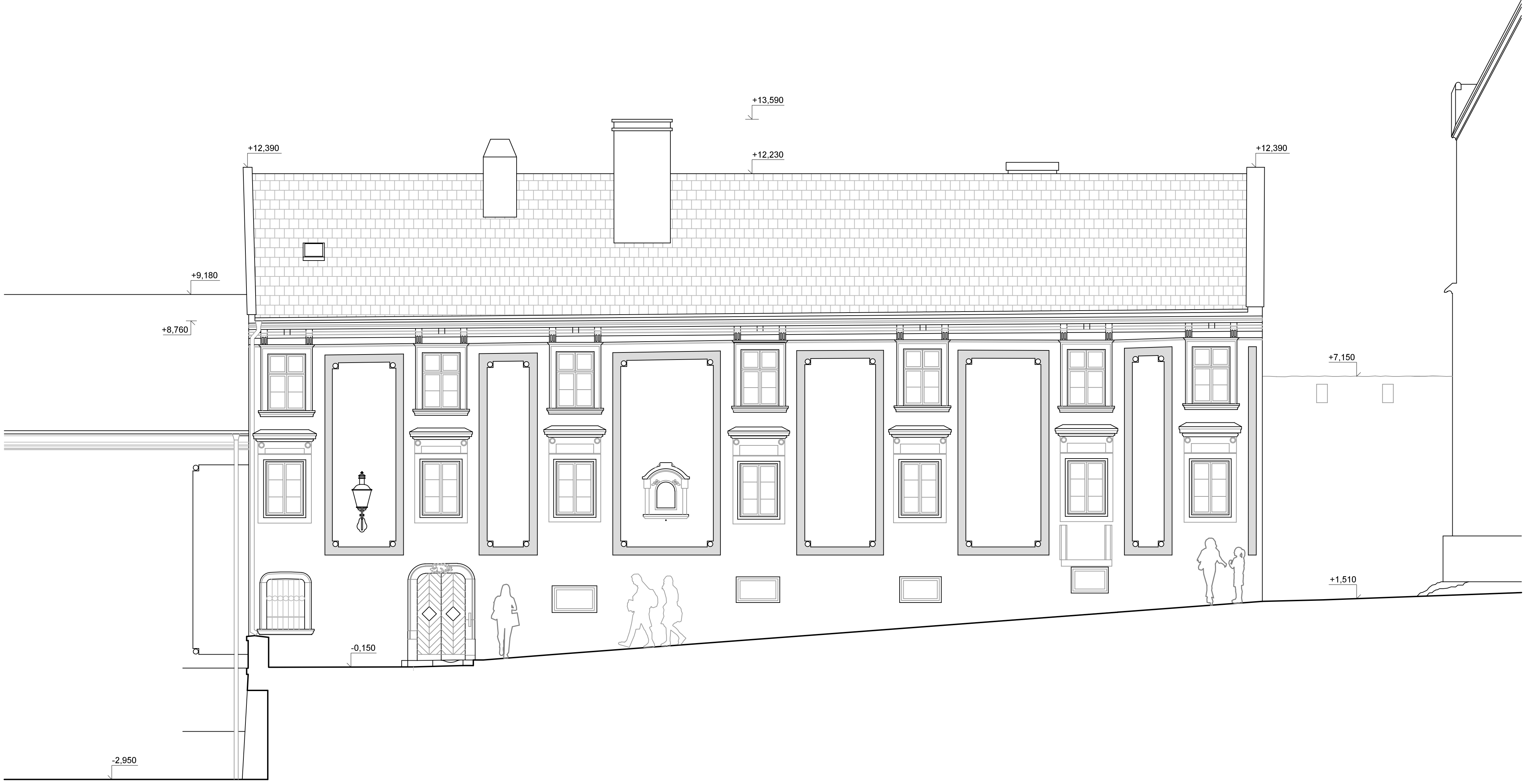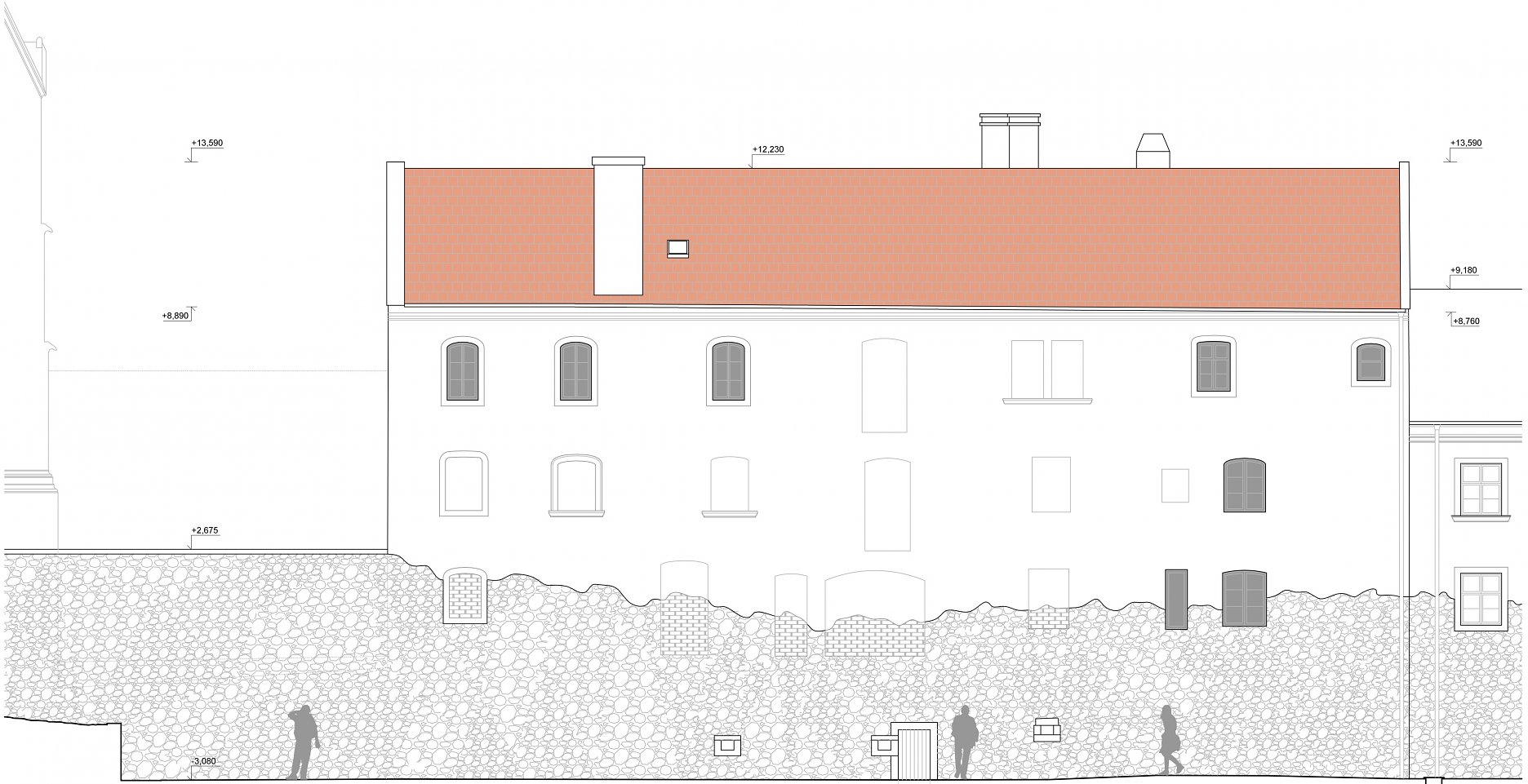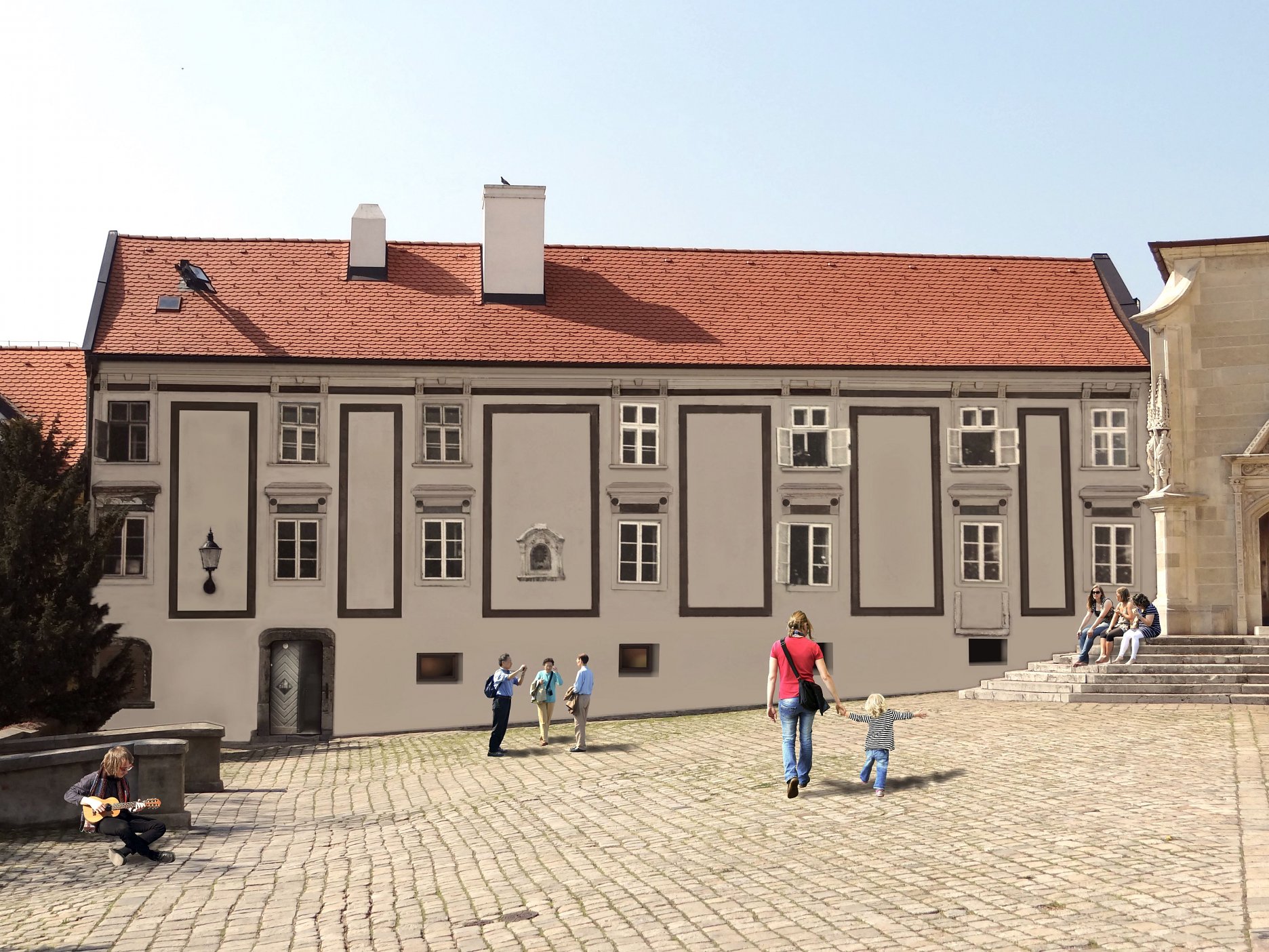 Z architektonického hľadiska ide o dvojaký prístup pamiatkovej obnovy. Zo strany Rudnayovho námestia počíta návrh s exaktnou rekonštrukciou barokovej východnej fasády, ktorá ako jediná v tomto verejnom priestore nebola nikdy obnovovaná a svojim vzhľadom a polohou narúša celistvý dojem z historického prostredia. Fasáda západná, ktorá menila svoj vzhľad po celé stáročia vplyvom úprav okolia, nevykazuje výnimočnú architektonickú hodnotu a preto prístup k jej obnove sleduje jej hlbší význam ako stavebnej substancie. Nakoľko ide o parkánový múr fortifikačného systému západných hradieb Prešporka, navrhuje sa odstránenie vonkajších omietok do úrovne 1NP, čím sa nadviaže na už použitý princíp riešenia fasády susedného objektu. Parkánový múr tak dostane celistvejší a jasnejší vzhľad začínajúc od pôvodnej Vidrickej brány až po svätomartinský dóm. Vrchné podlažia tejto fasády ostanú sčasti presvetlené pôvodnými otvormi. V miestach, kde si to funkcia vnútorných priestorov nevyžaduje, ostanú viaceré pôvodné otvory naďalej zamurované.