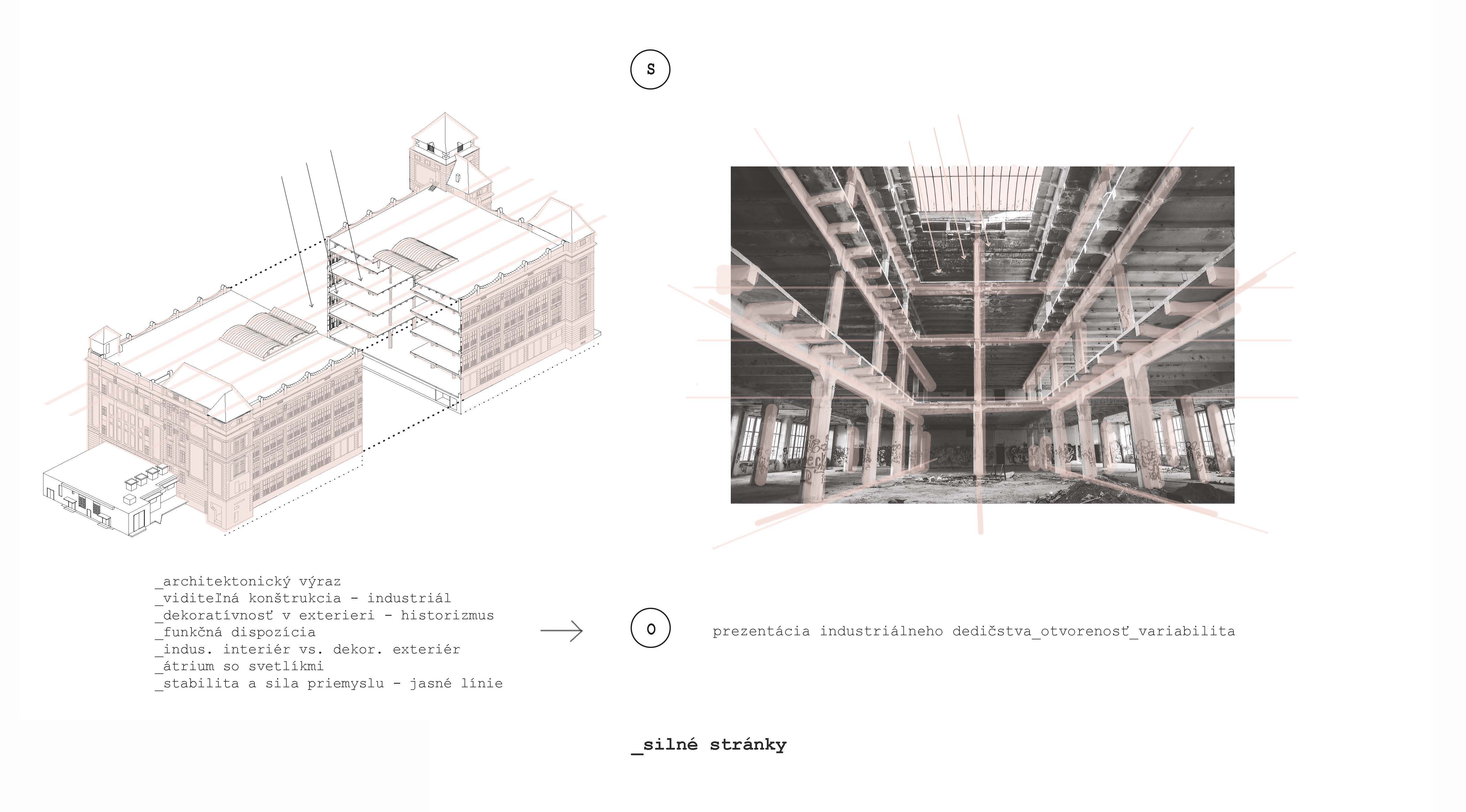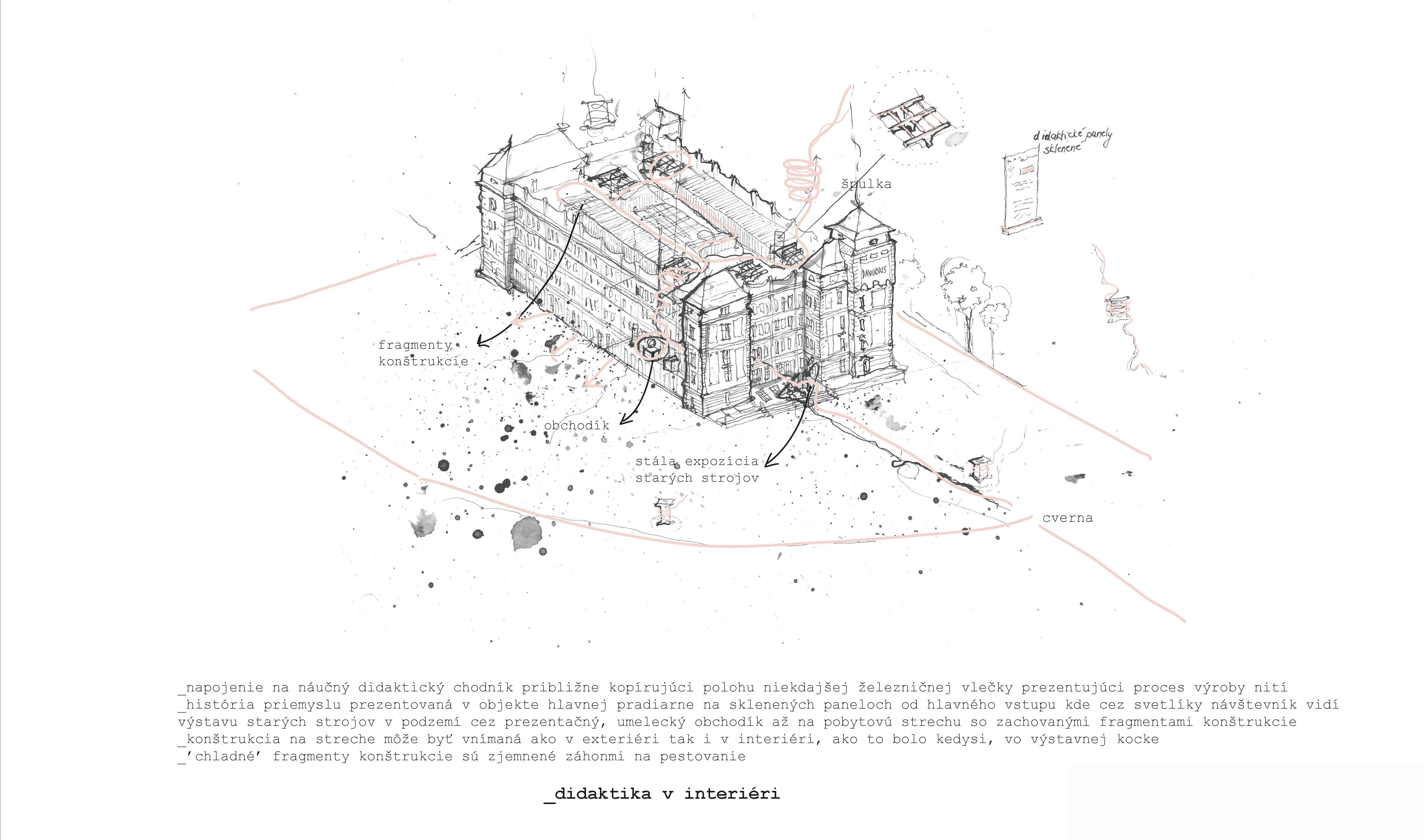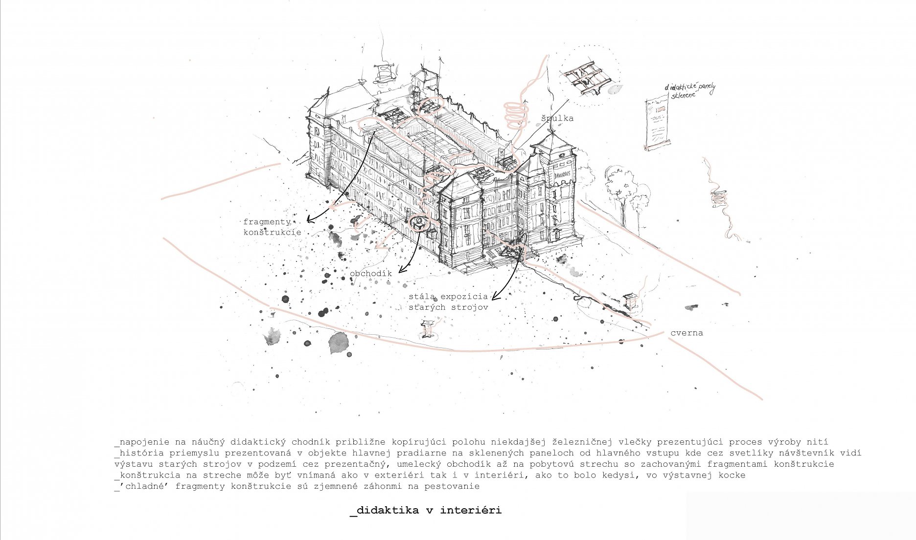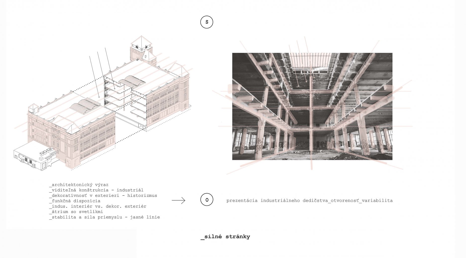 Podnetom pre vznik diplomovej práce je za posledné desaťročia opakujúci sa trend zanedbávania industriálnej architektúry a jej potenciálu. Industriálna architektúra a jej chátranie je v dnešnej dobe čoraz častejšie predmetom diskusie. V mnohých prípadoch (aj v tomto konkrétnom) sa Národná kultúrna pamiatka dostáva do rúk developerov, ktorí nie vždy hľadia na pamiatkové hodnoty objektu. Cieľom návrhu je sprístupnenie pamiatky širokej verejnosti, pozdvihnutie povedomia o industriálnom dedičstve a jeho dôležitosti. Vypracovaný návrh sa prostredníctvom multifunkčného a variabilného využitia priestorov snúbi s didaktickými prvkami zakomponovanými v interiéri aj exteriéri, čím sa obracia na všetky cieľové skupiny - deti, dospelích, dôchodcov, či odbornú verejnosť.
