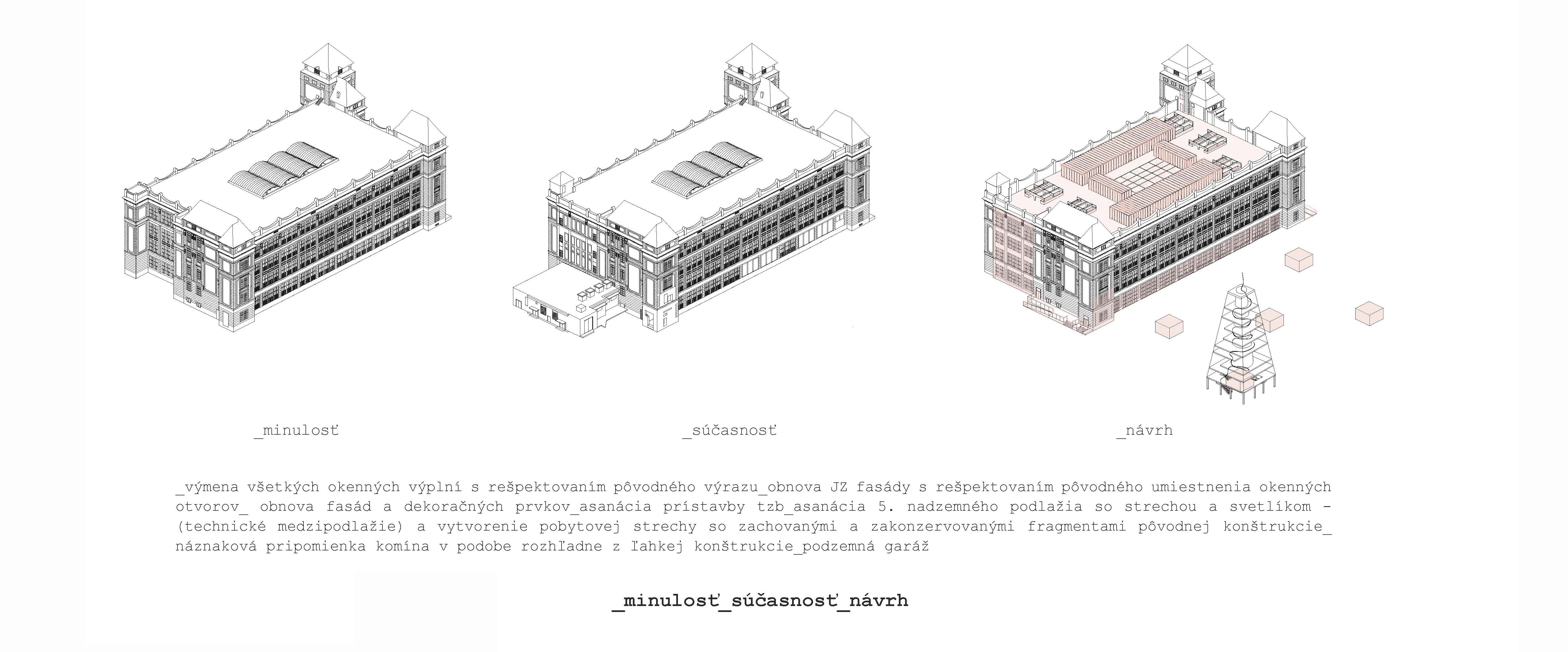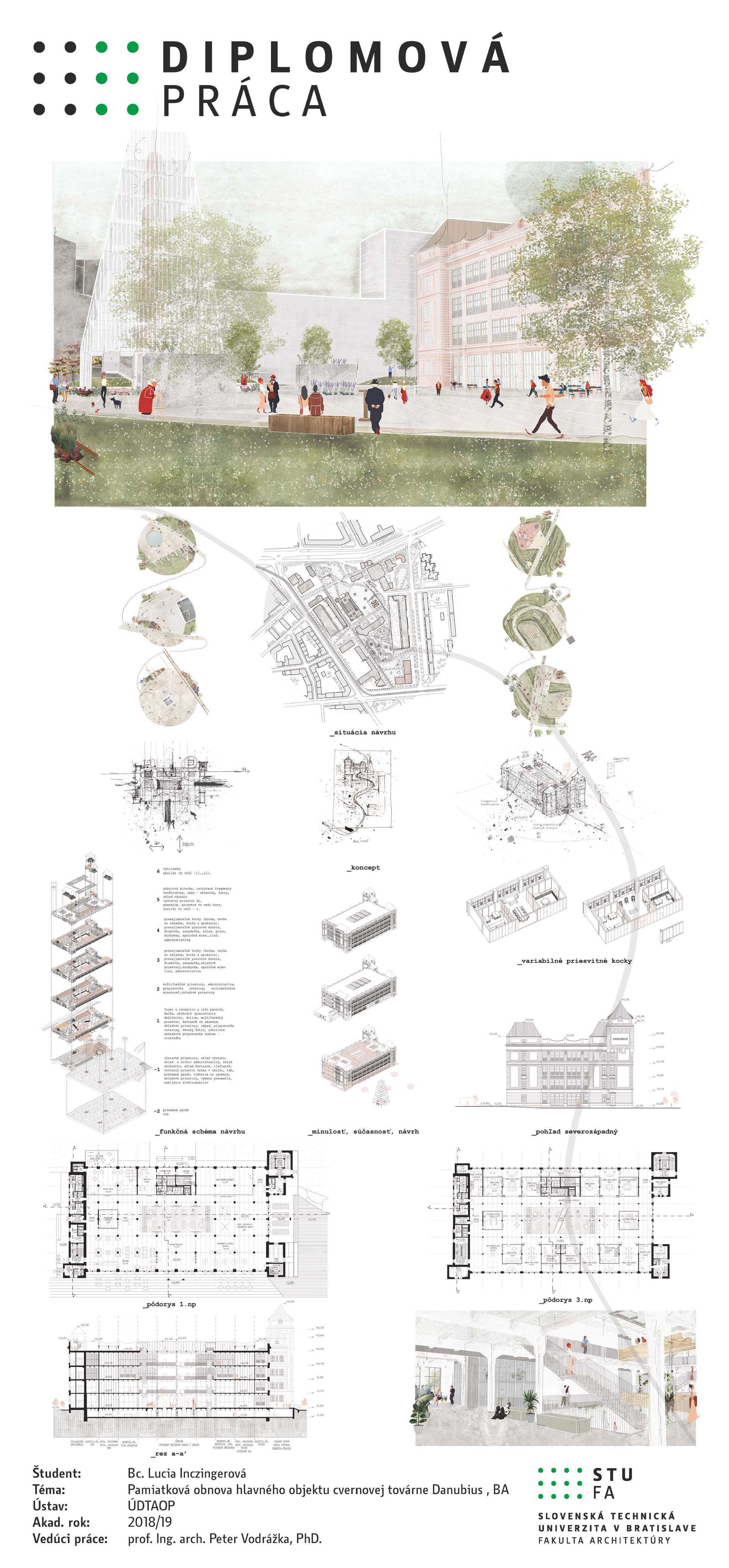 Predmetom riešenia diplomovej práce bol návrh pamiatkovej obnovy hlavného objektu cvernovej továrne Danubius v Bratislave na Trnavskej ceste. Vznik cvernovej továrne Danubius spolu s objektom hlavnej pradiarne, ktorý je dnes Národnou kultúrnou pamiatkou, sa datuje od roku 1909. Svojho času továreň zamestnávala vyše 600 zamestnancov a spracovávala egyptskú, americkú a tureckú vlnu na výrobu bavlnených nití.