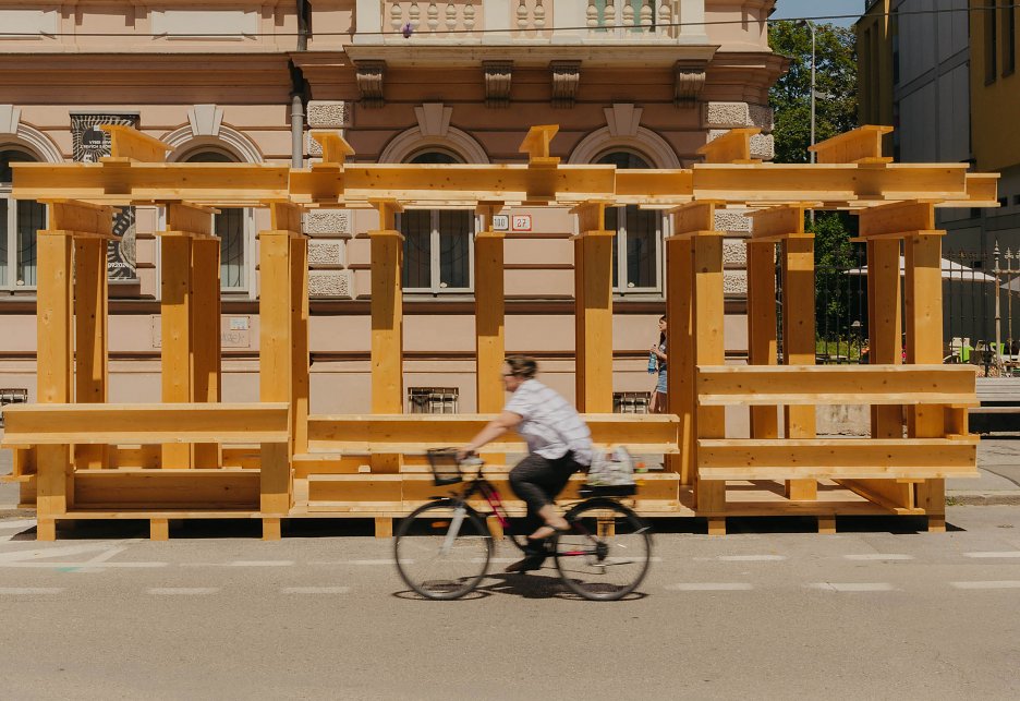 Prvý trenčiansky parklet vytvoril nórsky architektonický ateliér Rintala - Eggertsson, ktorý sa špecializuje na stavby z dreva. Trenčiansky parklet nám môže pripomínať rímsky chrám alebo hustý les stromov. Jeho autor sa inšpiroval aj industriálnym dedičstvom Trenčína, rímskym odkazom i prírodou v okolí mesta. Intervencia vytvára na prehriatej ulici miesto pre pobyt a tieň.