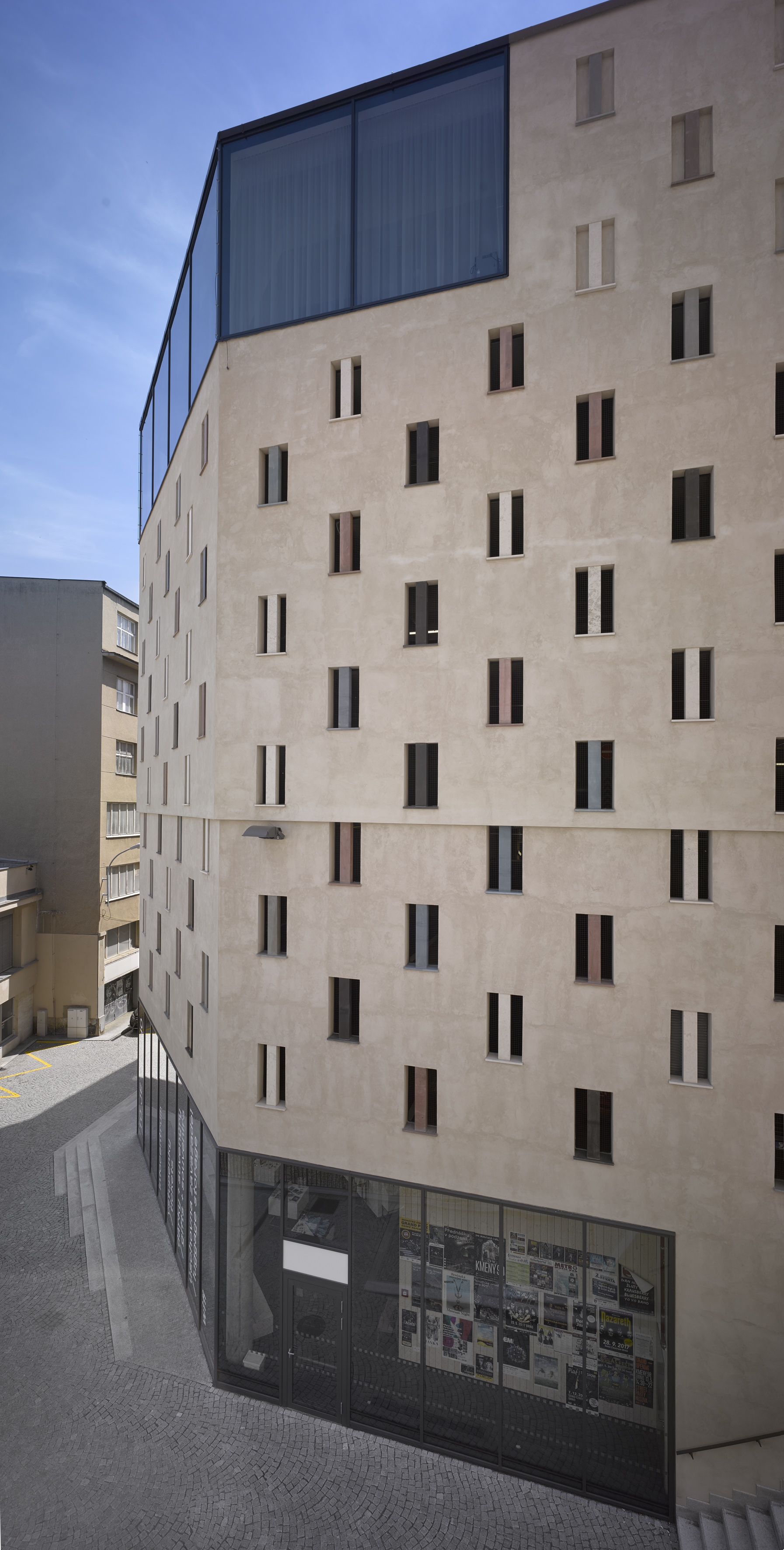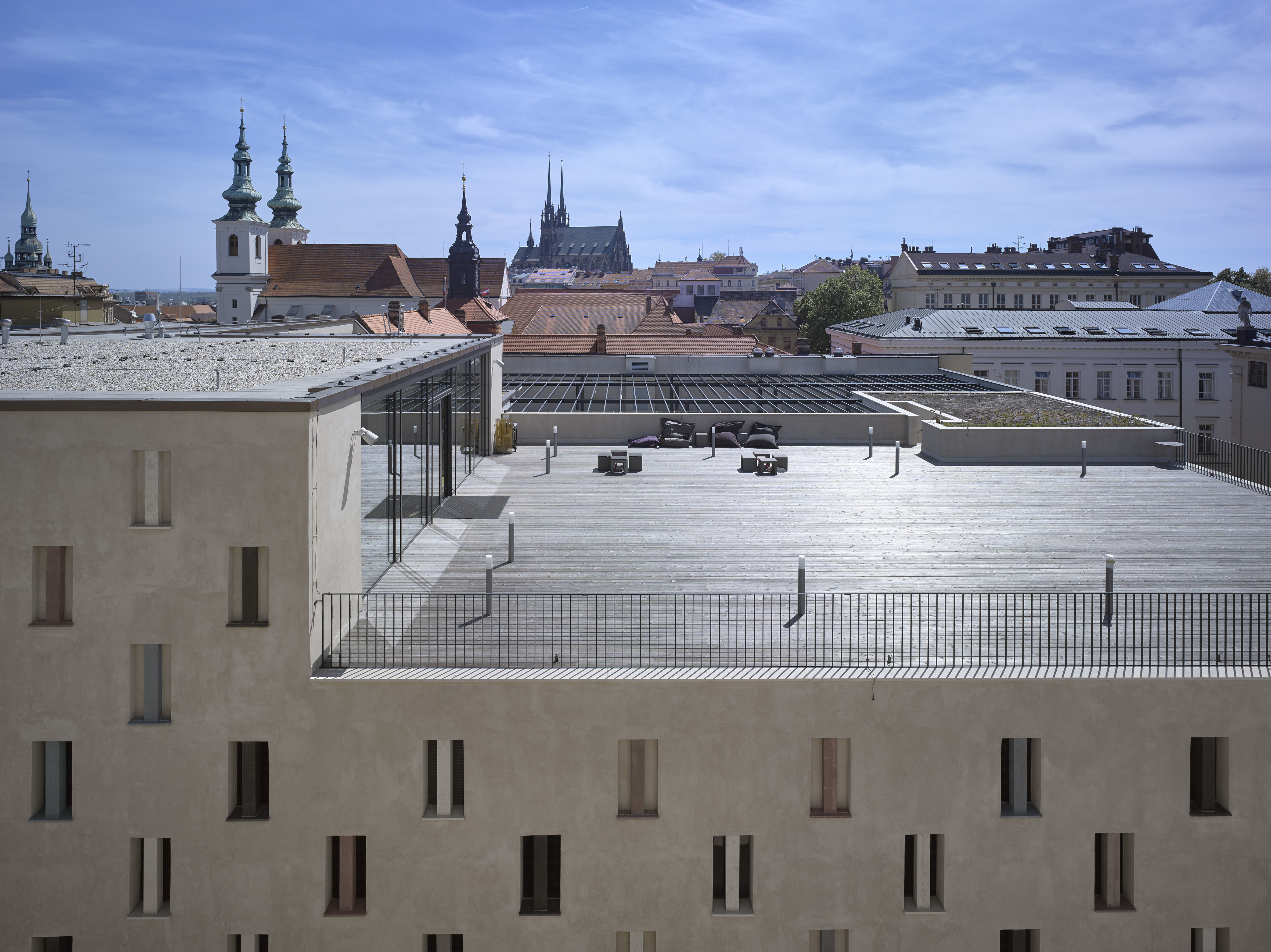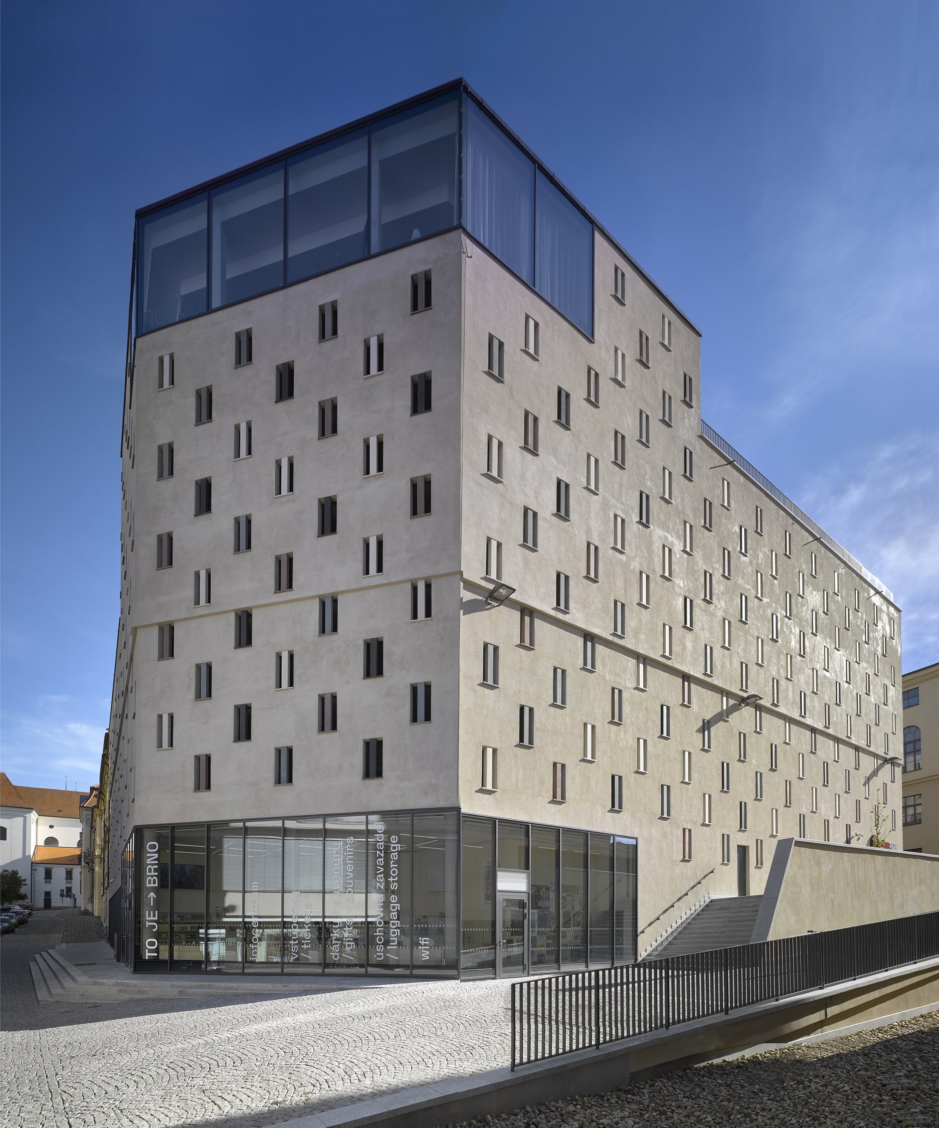 Na prízemí je v nároži umiestnené Turistické informačné centrum mesta Brna a ďalšie komerčné priestory. Na najvyššom podlaží s výhľadom na vedutu mesta je situovaný nájomný priestor, ktorý disponuje terasou na streche.