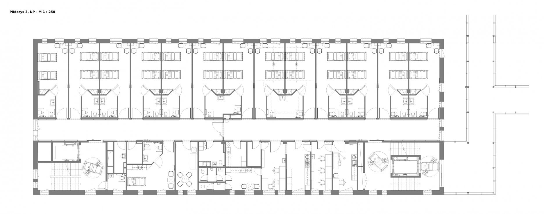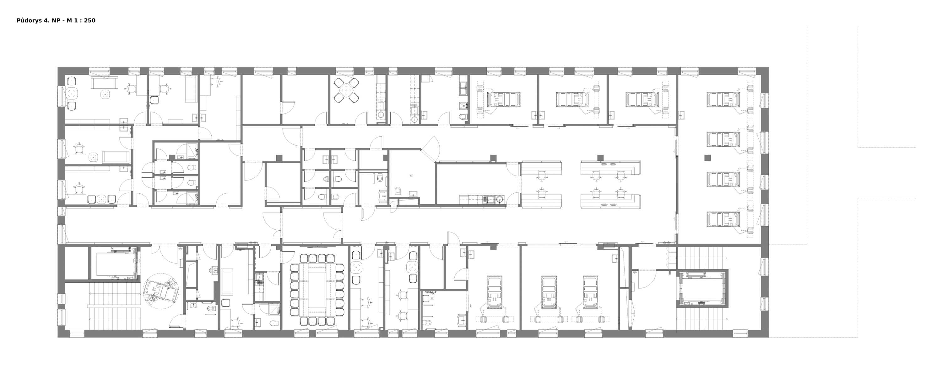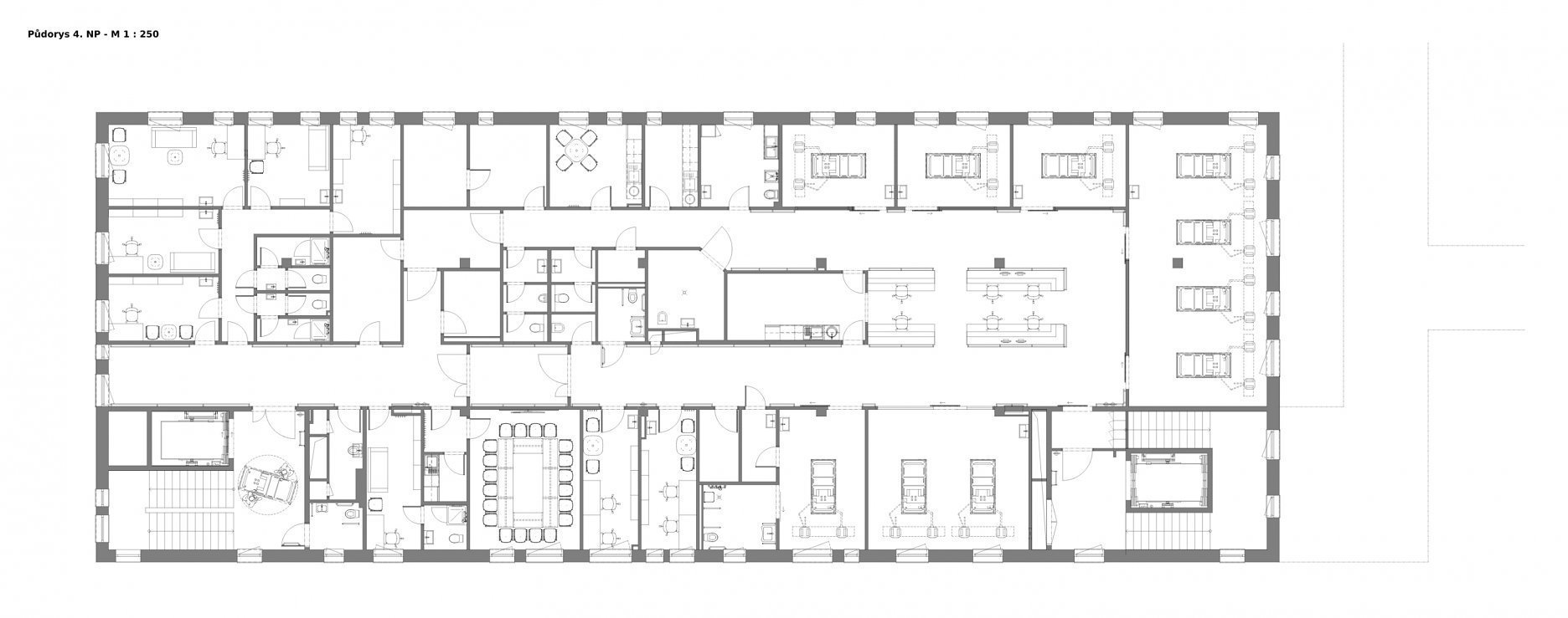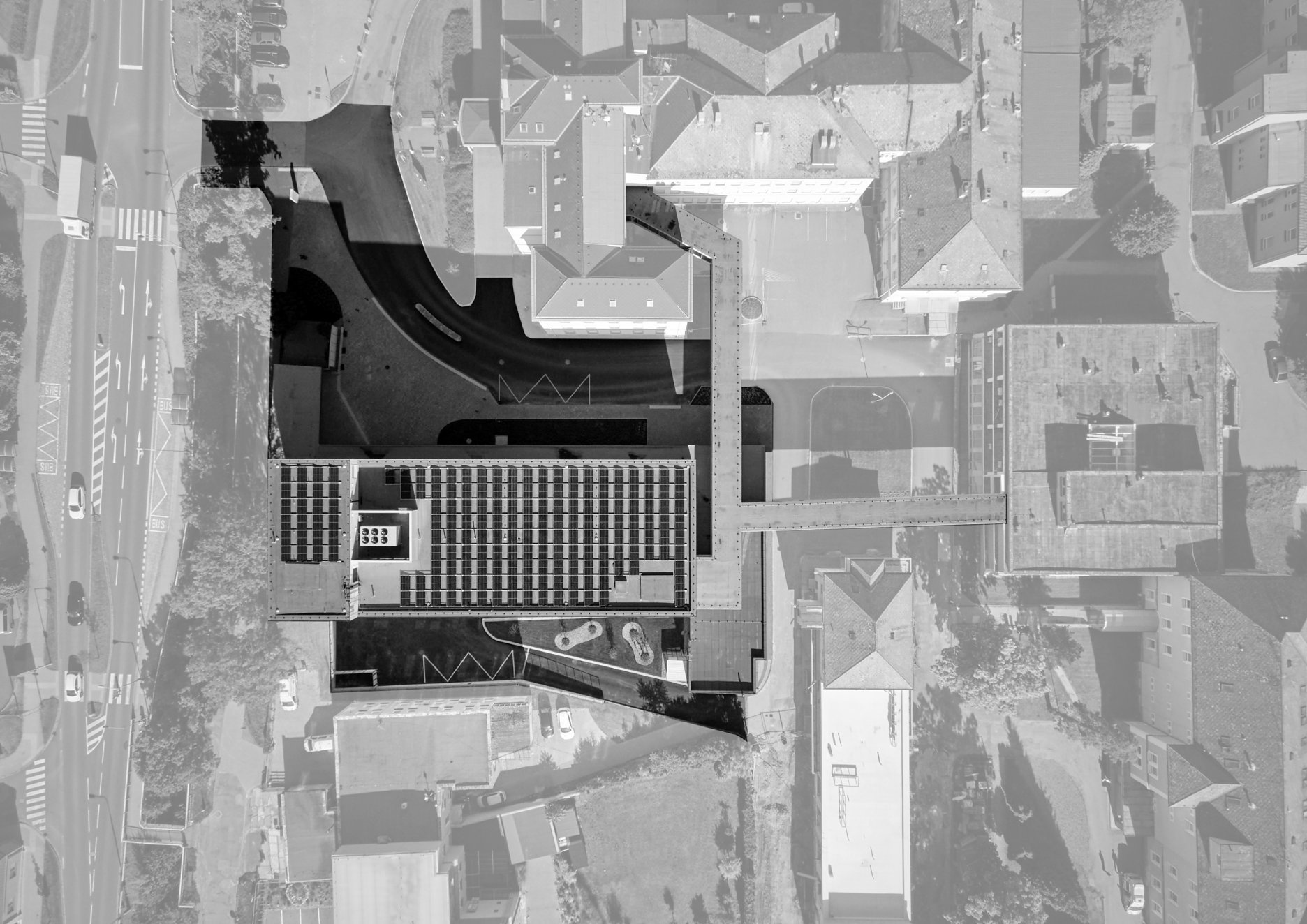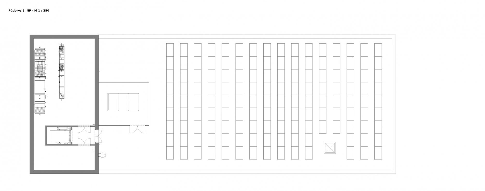 Novostavba, koncipovaná ako jednoduchý kváder, stojí na pôdoryse s rozmermi 48x18 metrov. Budova má jedno podzemné a päť nadzemných podlaží, na streche sa nachádza technické zázemie a fotovoltaické panely.
