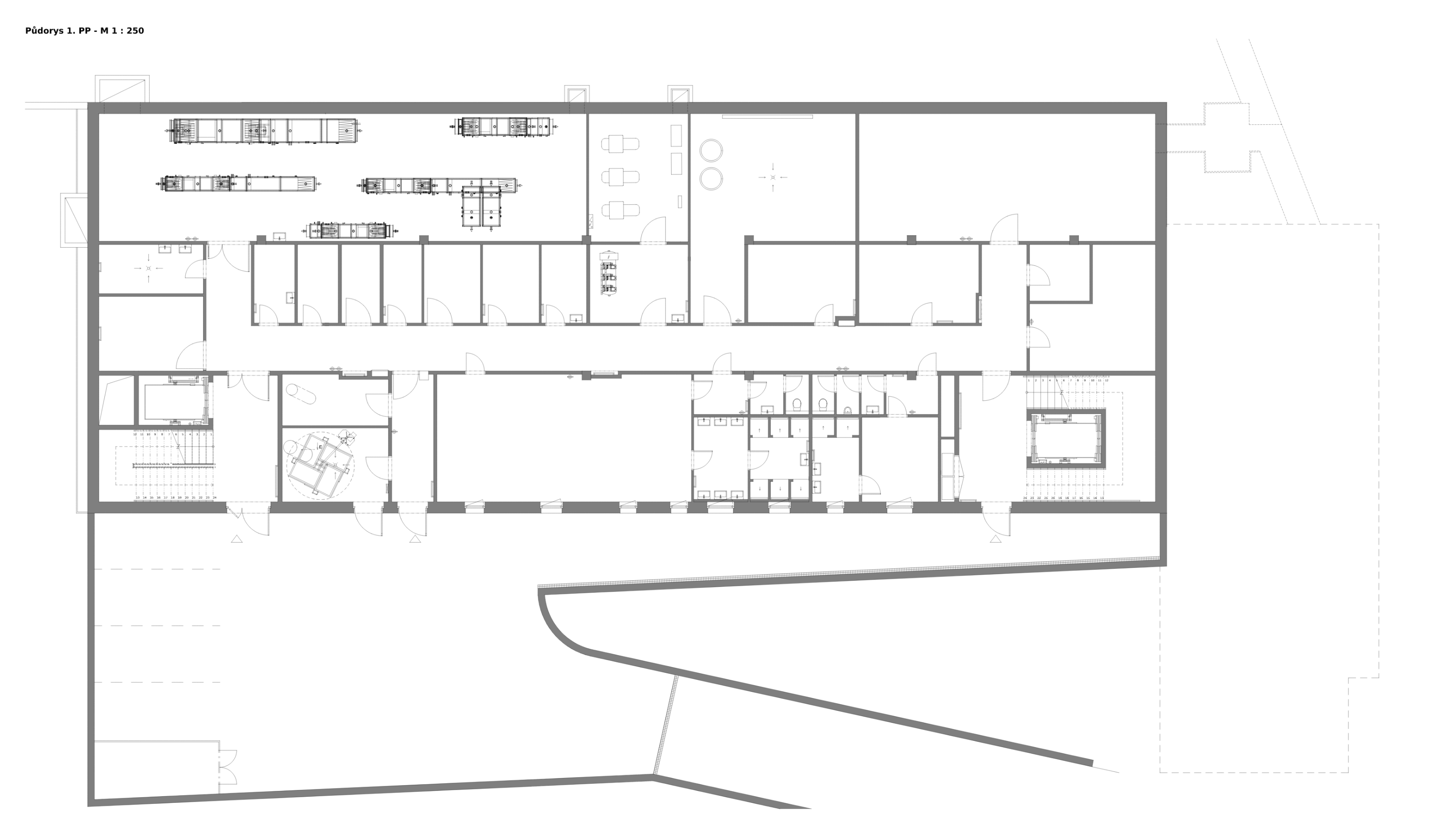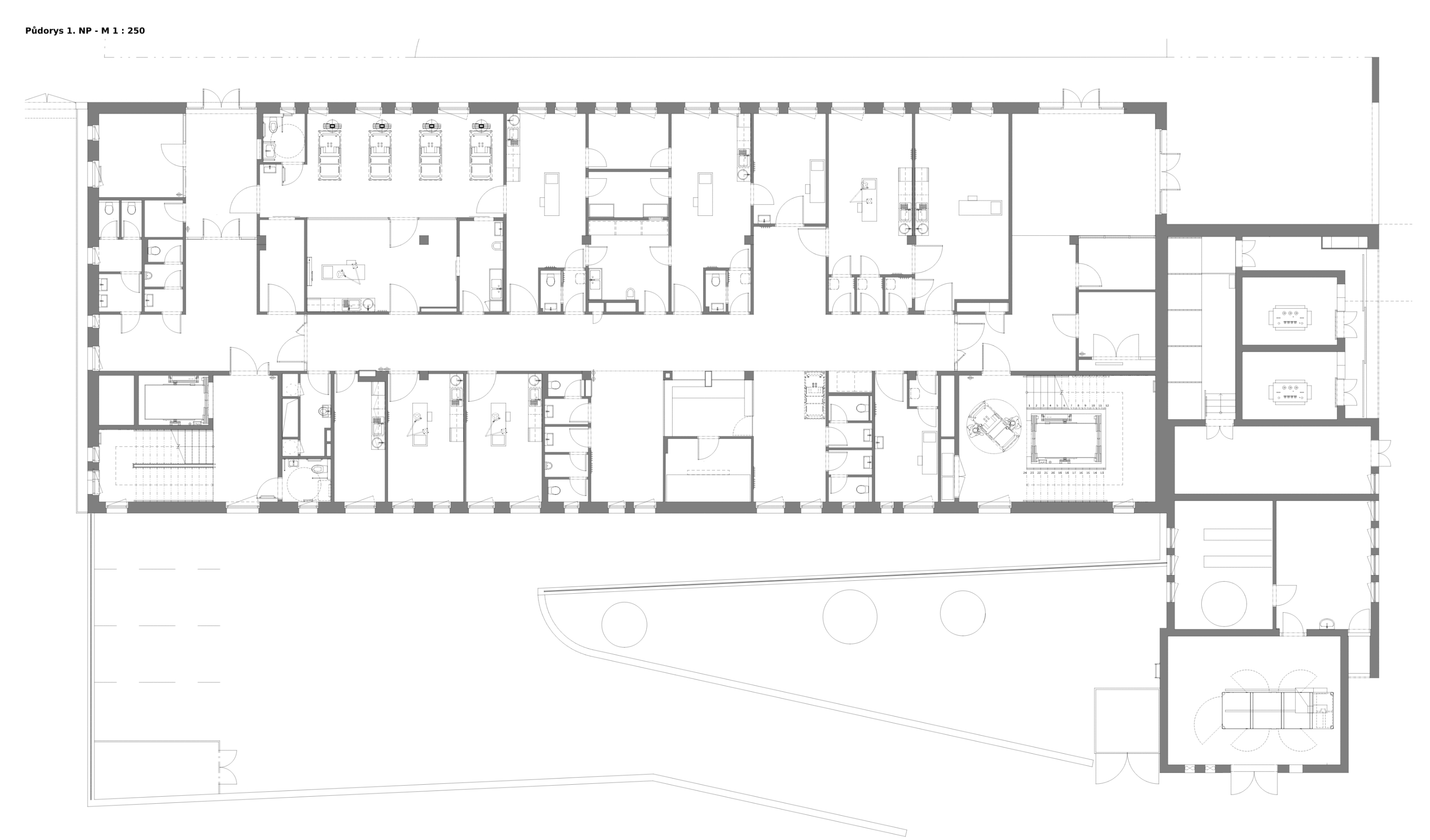 Stavbe ustúpila pôvodná budova riaditeľstva nemocnice. Z juhu k novému pavilónu prilieha staršia budova trafostanice s dieselcentrálou.