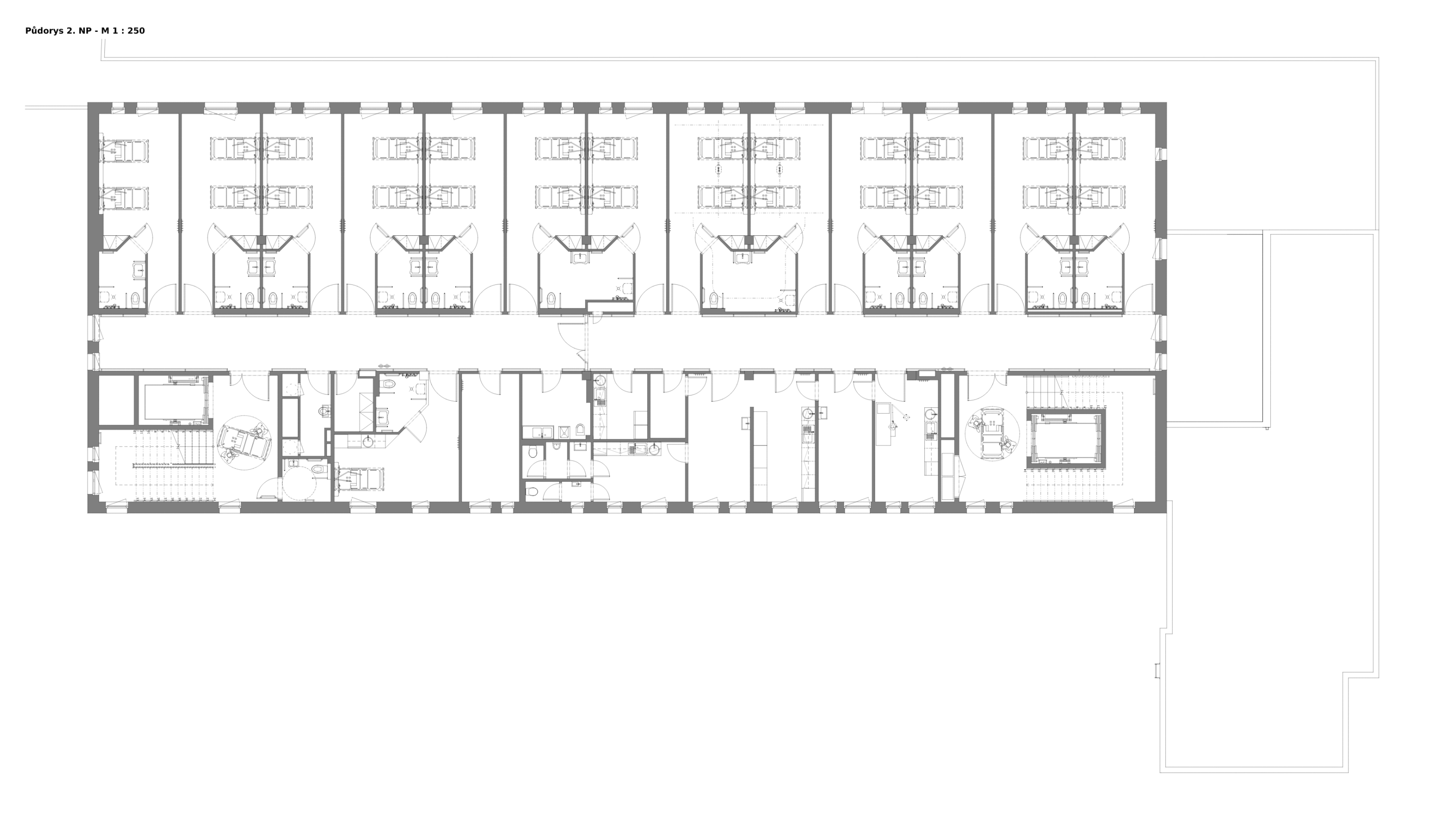 Tretí vstup pre personál nemocnice, umiestnený na 1. podlaží, sprístupňuje vonkajšia rampa na juhozápadnej strane budovy.