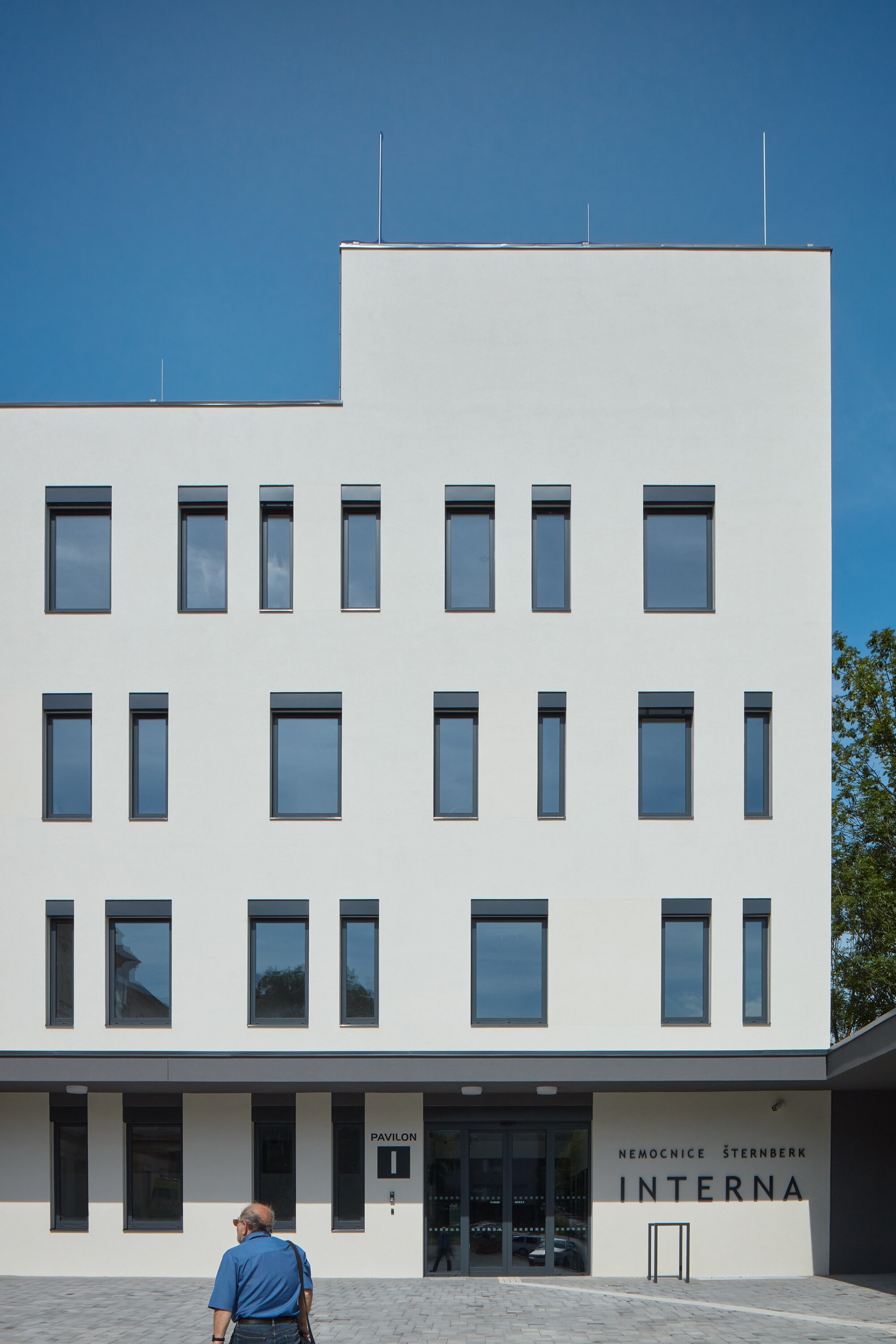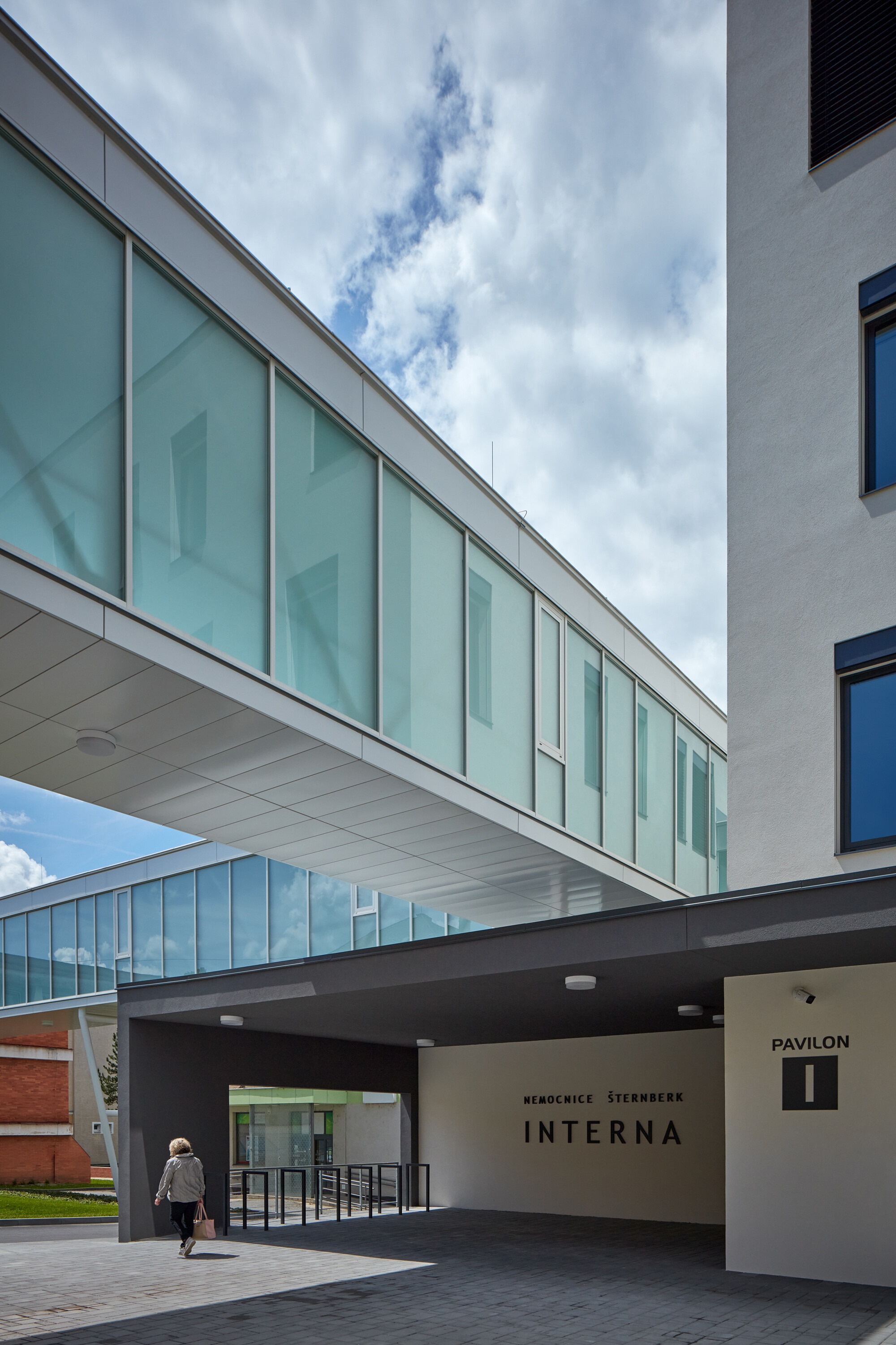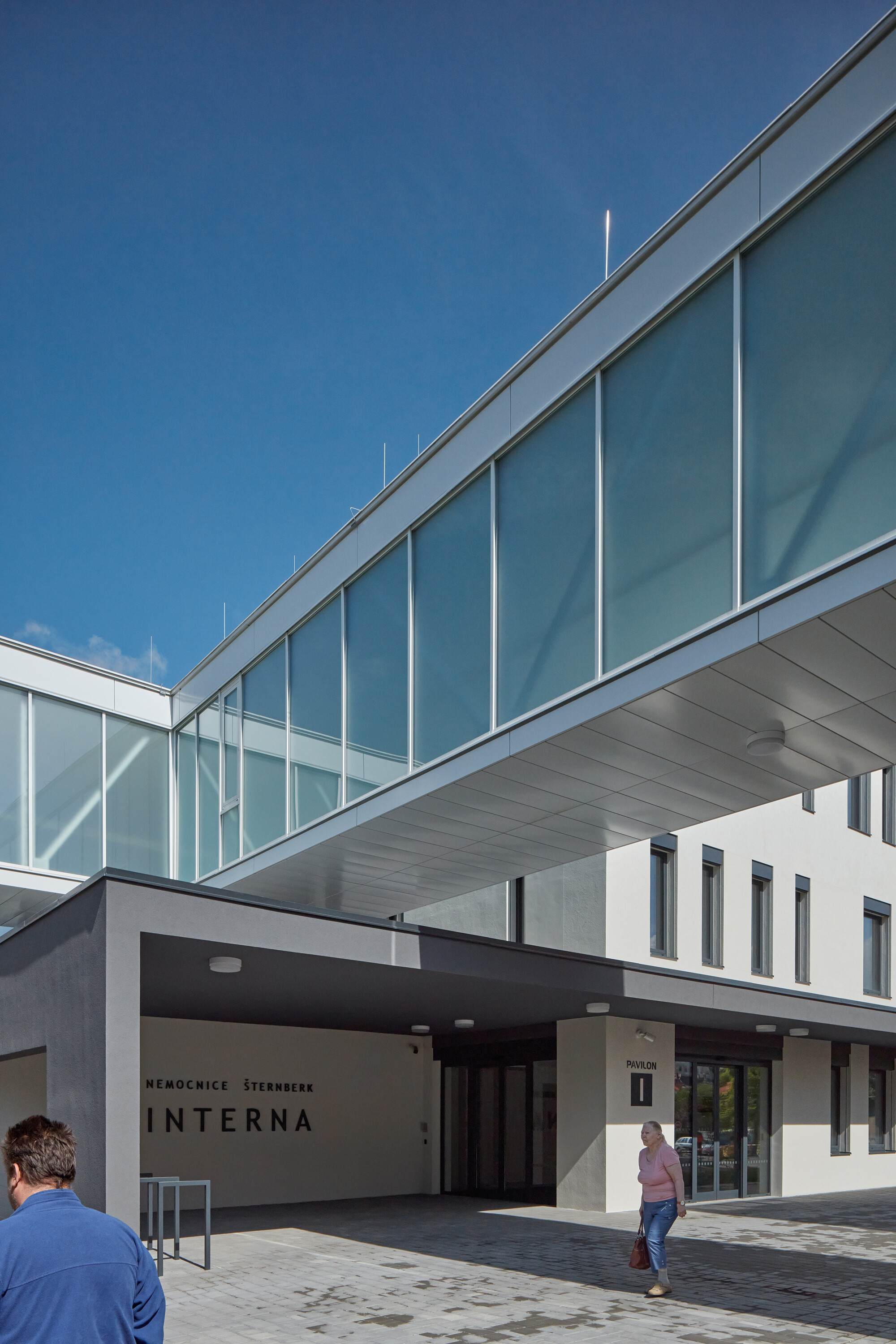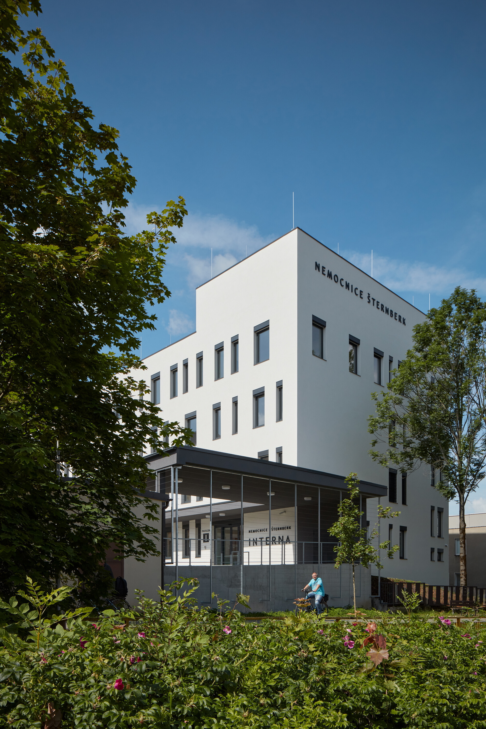 Ateliér Adam Rujbr Architects, v ktorého portfóliu majú výrazné zastúpenie projekty zdravotníckych zariadení (viď. súvisiace články v závere textu), v závere minulého roka dokončil pavilón internej medicíny. Novostavba sa nachádza v severnej časti areálu šternberskej nemocnice. Jednou z priorít pri riešení objektu bola ideálna nadväznosť na existujúce pavilóny a vytvorenie prehľadného vstupu do zdravotníckeho komplexu.