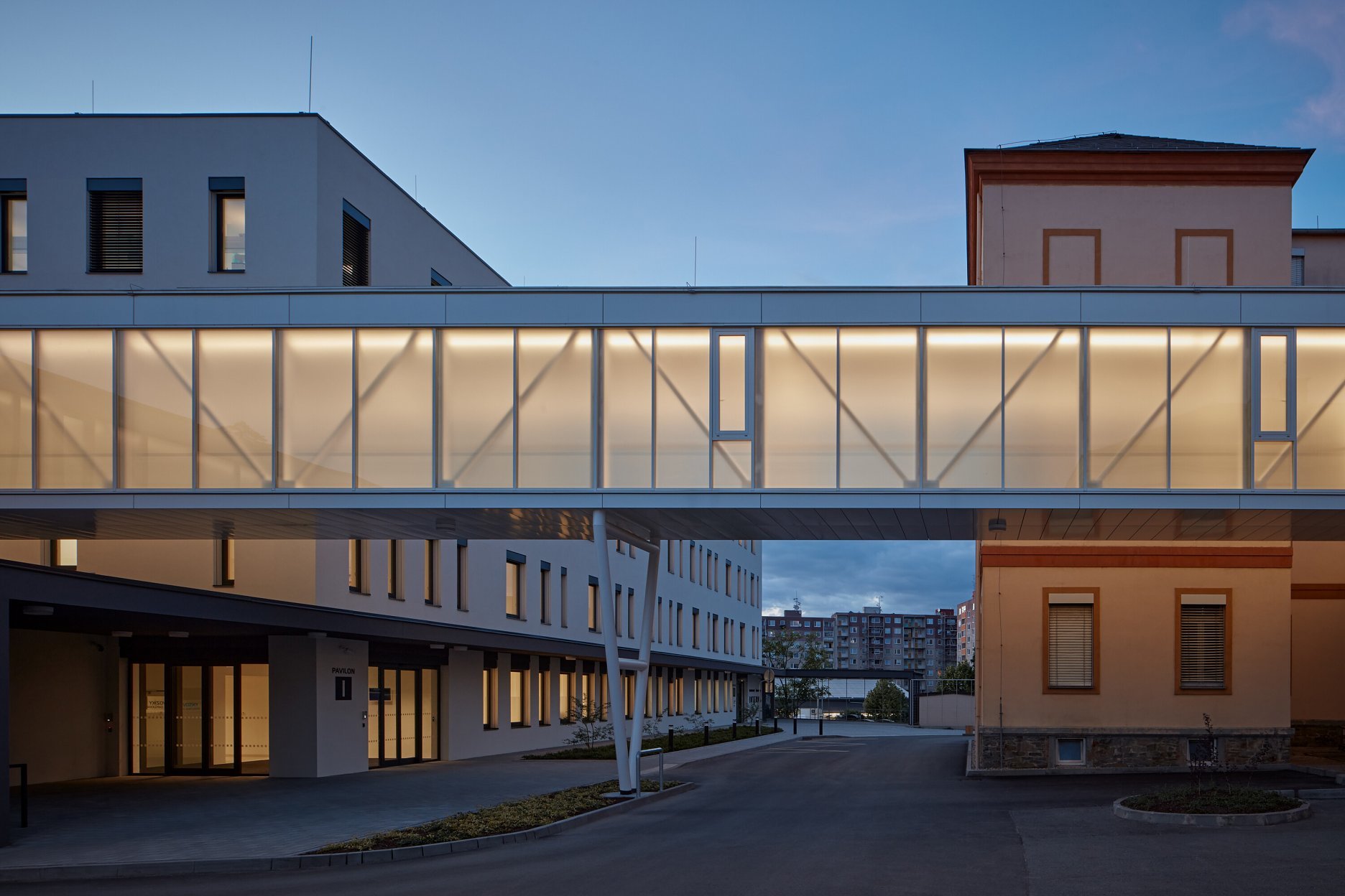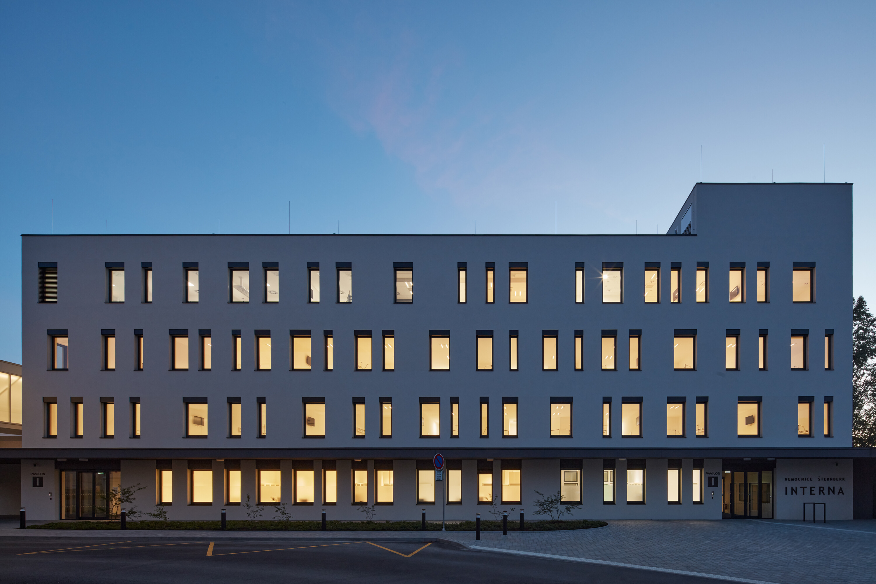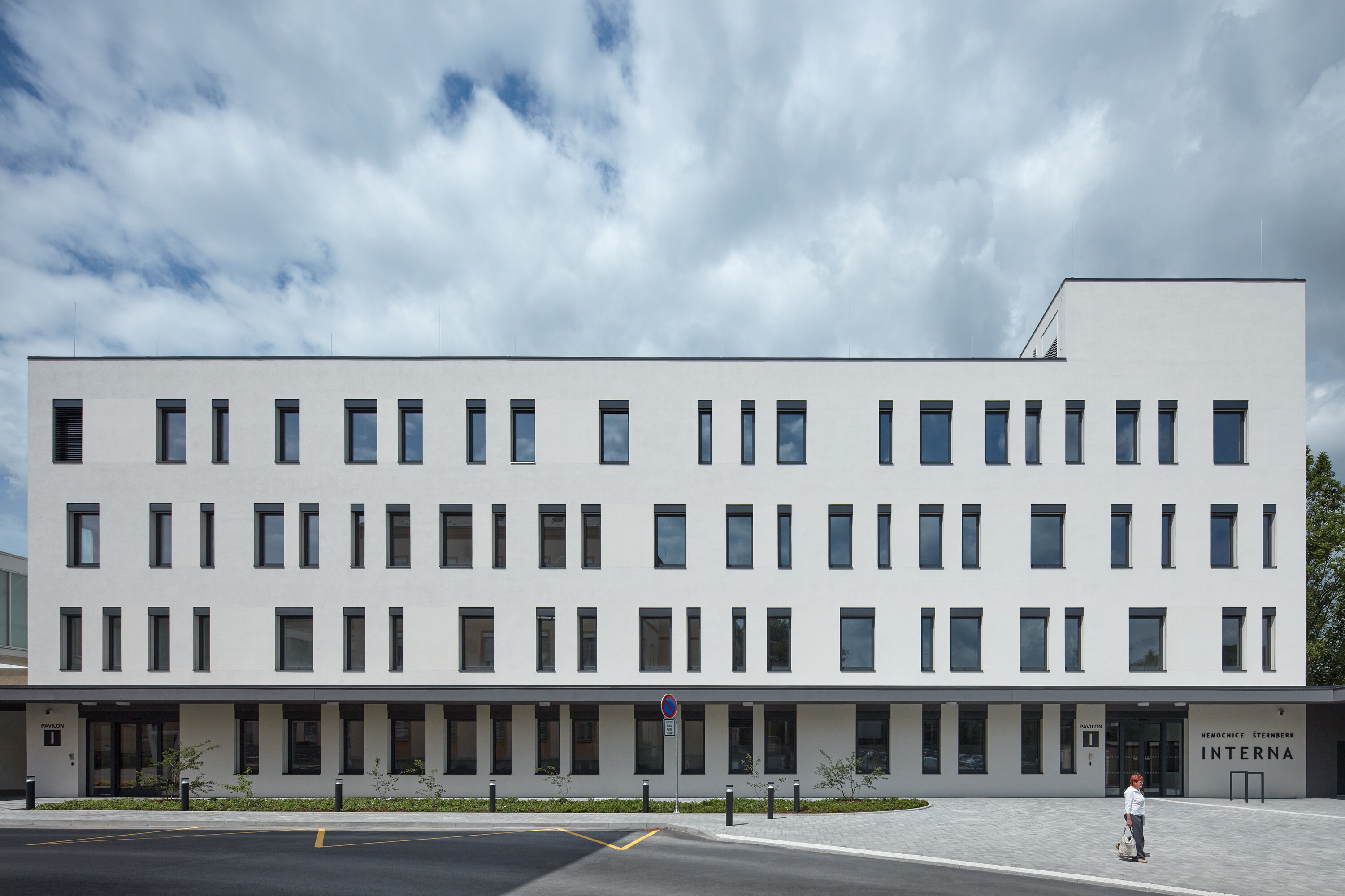 Ateliér Adam Rujbr Architects, v ktorého portfóliu majú výrazné zastúpenie projekty zdravotníckych zariadení (viď. súvisiace články v závere textu), v závere minulého roka dokončil pavilón internej medicíny. Novostavba sa nachádza v severnej časti areálu šternberskej nemocnice. Jednou z priorít pri riešení objektu bola ideálna nadväznosť na existujúce pavilóny a vytvorenie prehľadného vstupu do zdravotníckeho komplexu.