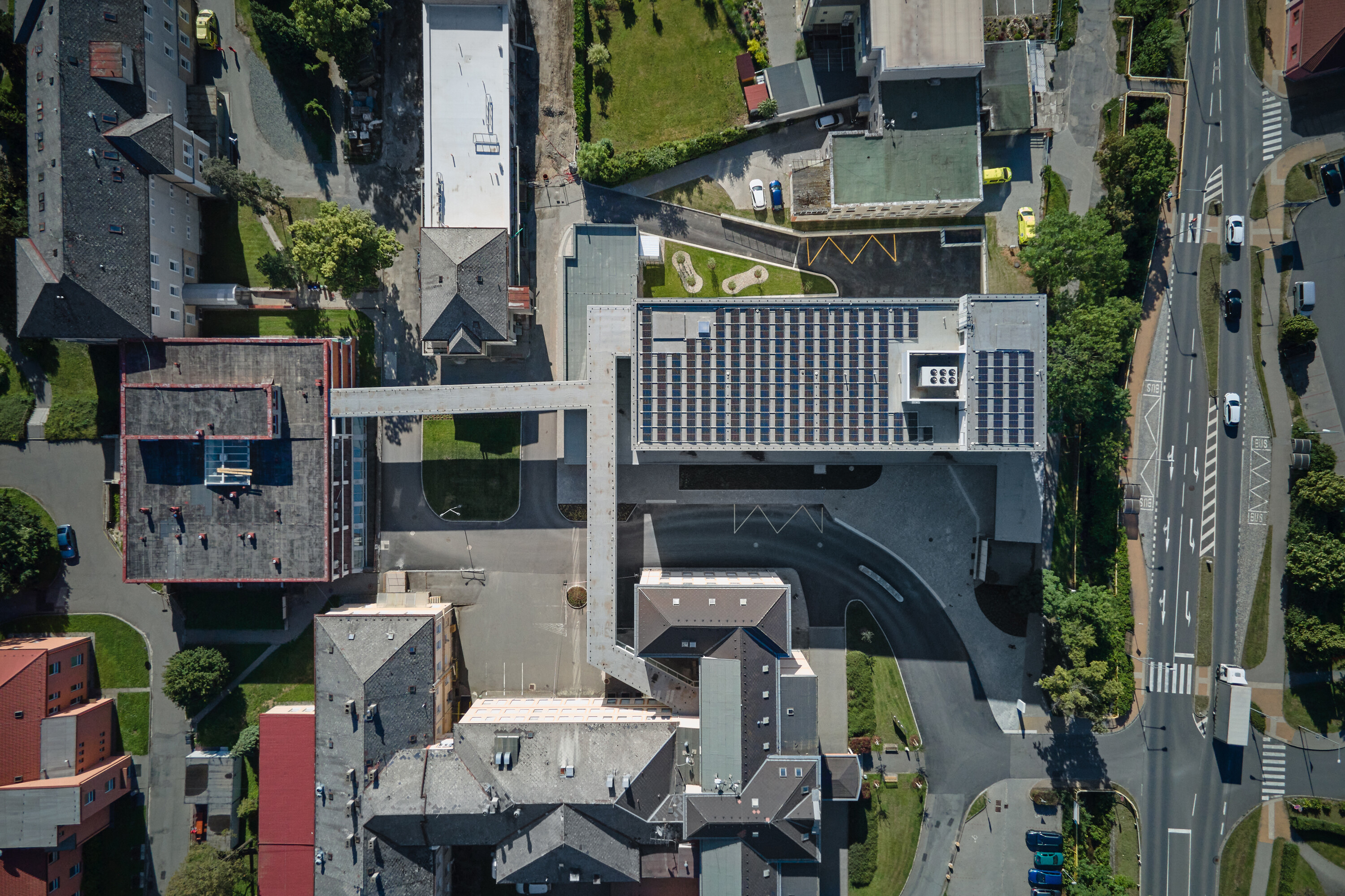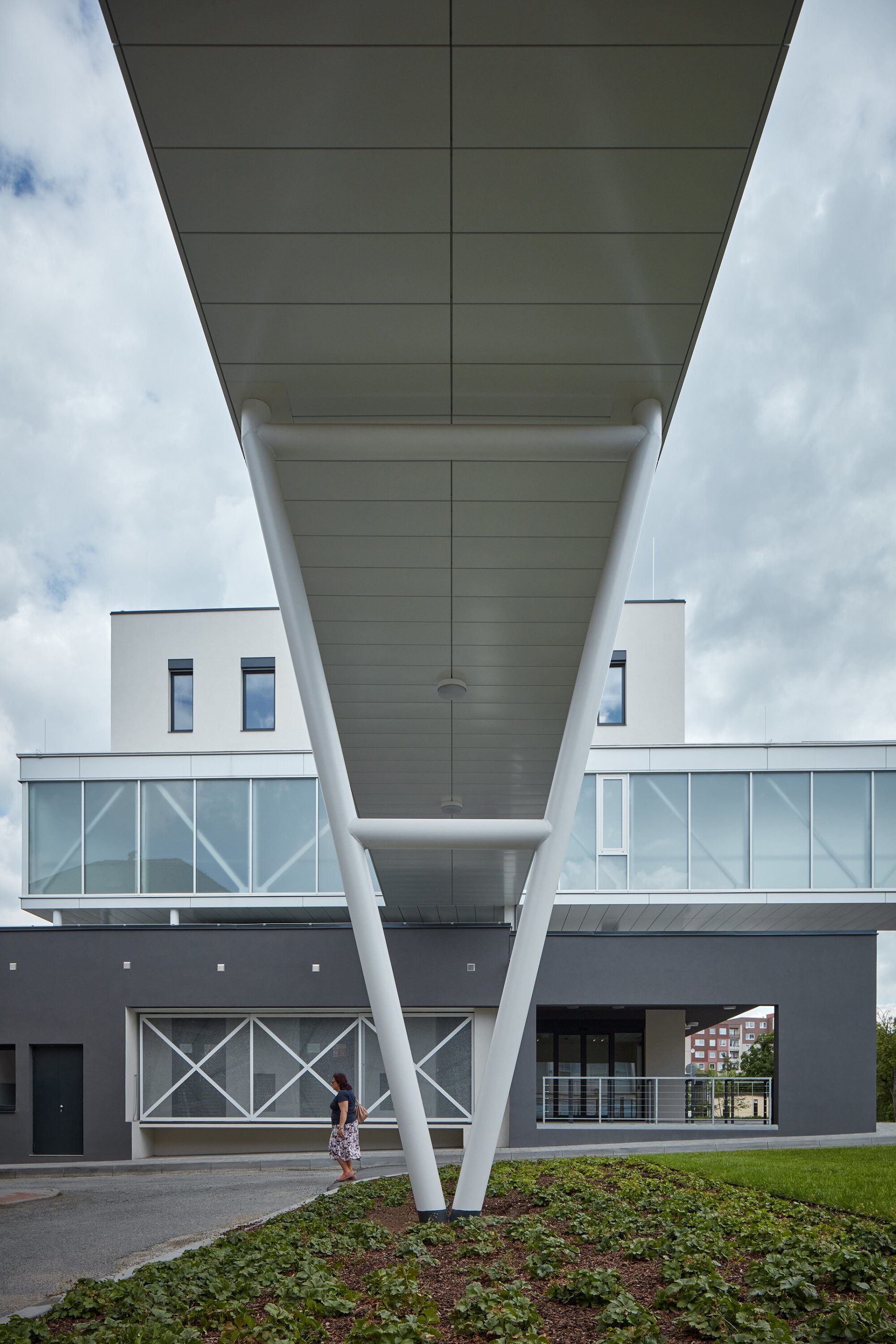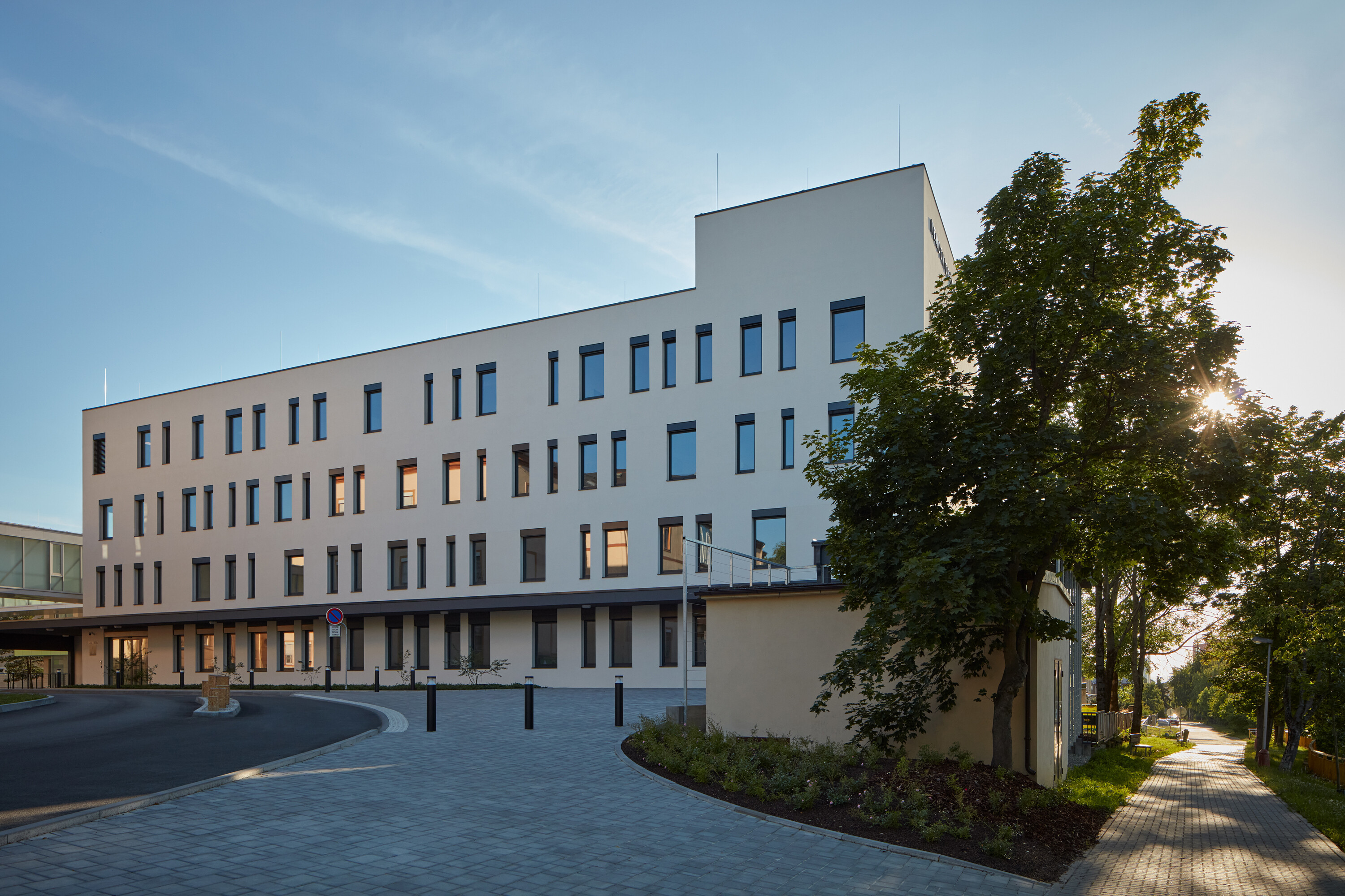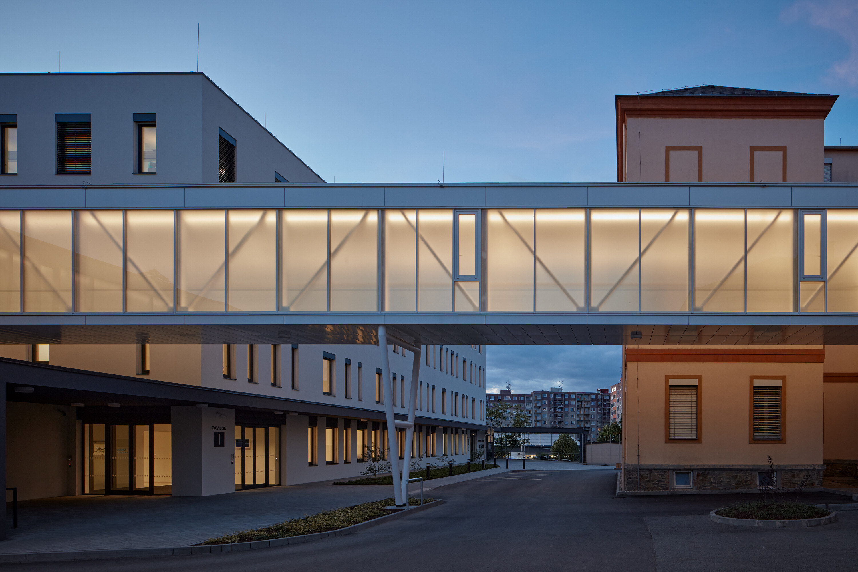 Ateliér Adam Rujbr Architects, v ktorého portfóliu majú výrazné zastúpenie projekty zdravotníckych zariadení (viď. súvisiace články v závere textu), v závere minulého roka dokončil pavilón internej medicíny. Novostavba sa nachádza v severnej časti areálu šternberskej nemocnice. Jednou z priorít pri riešení objektu bola ideálna nadväznosť na existujúce pavilóny a vytvorenie prehľadného vstupu do zdravotníckeho komplexu.