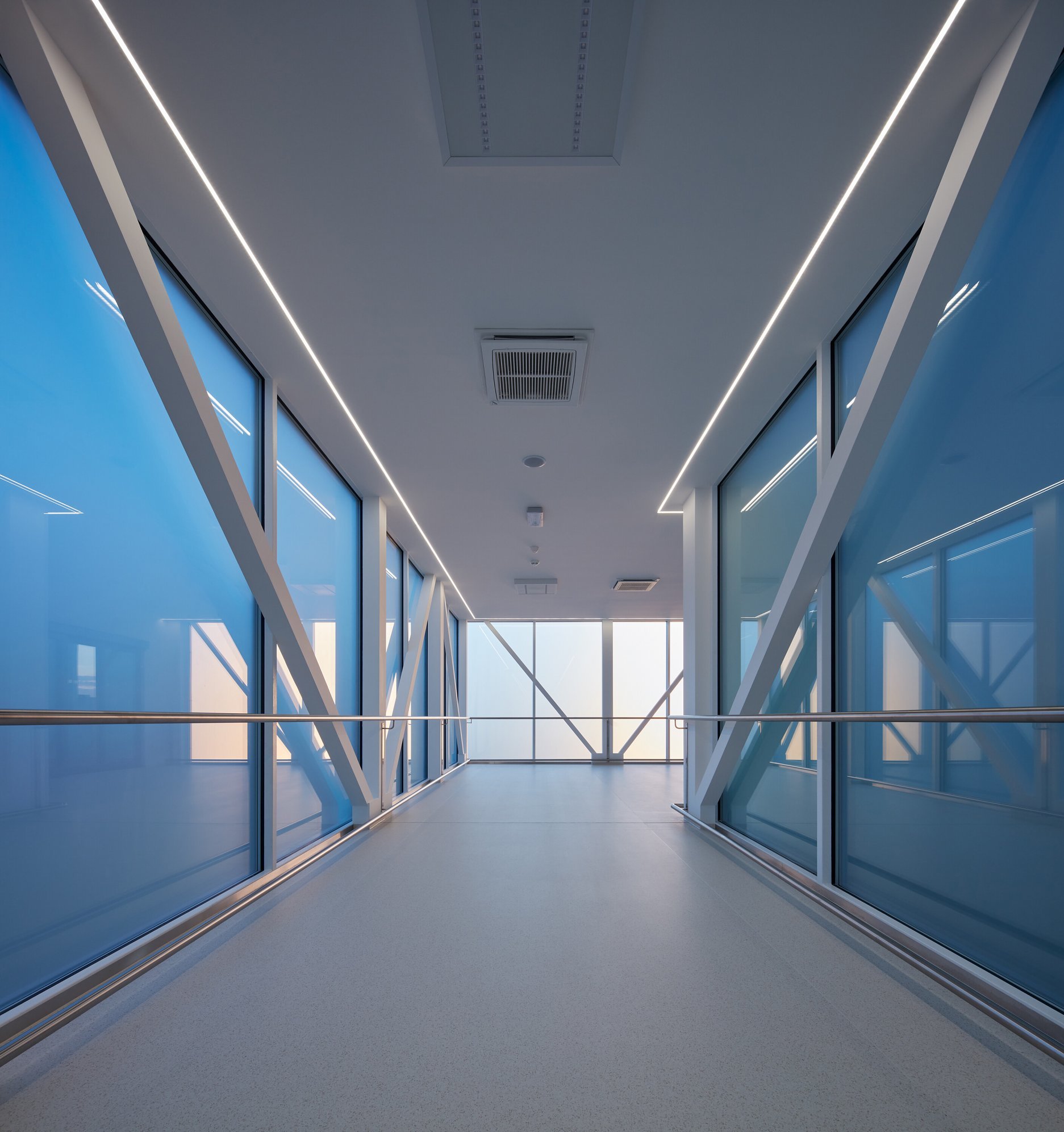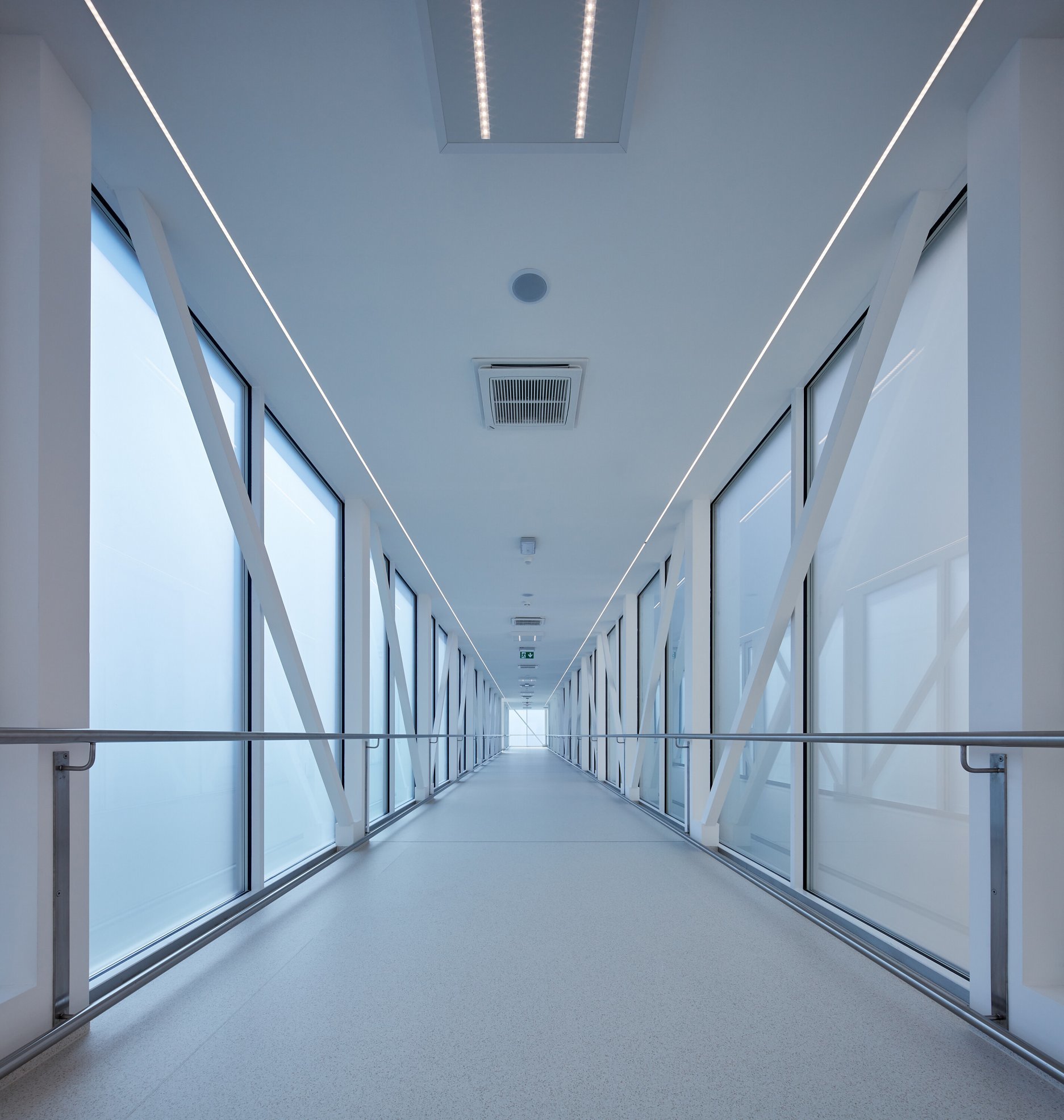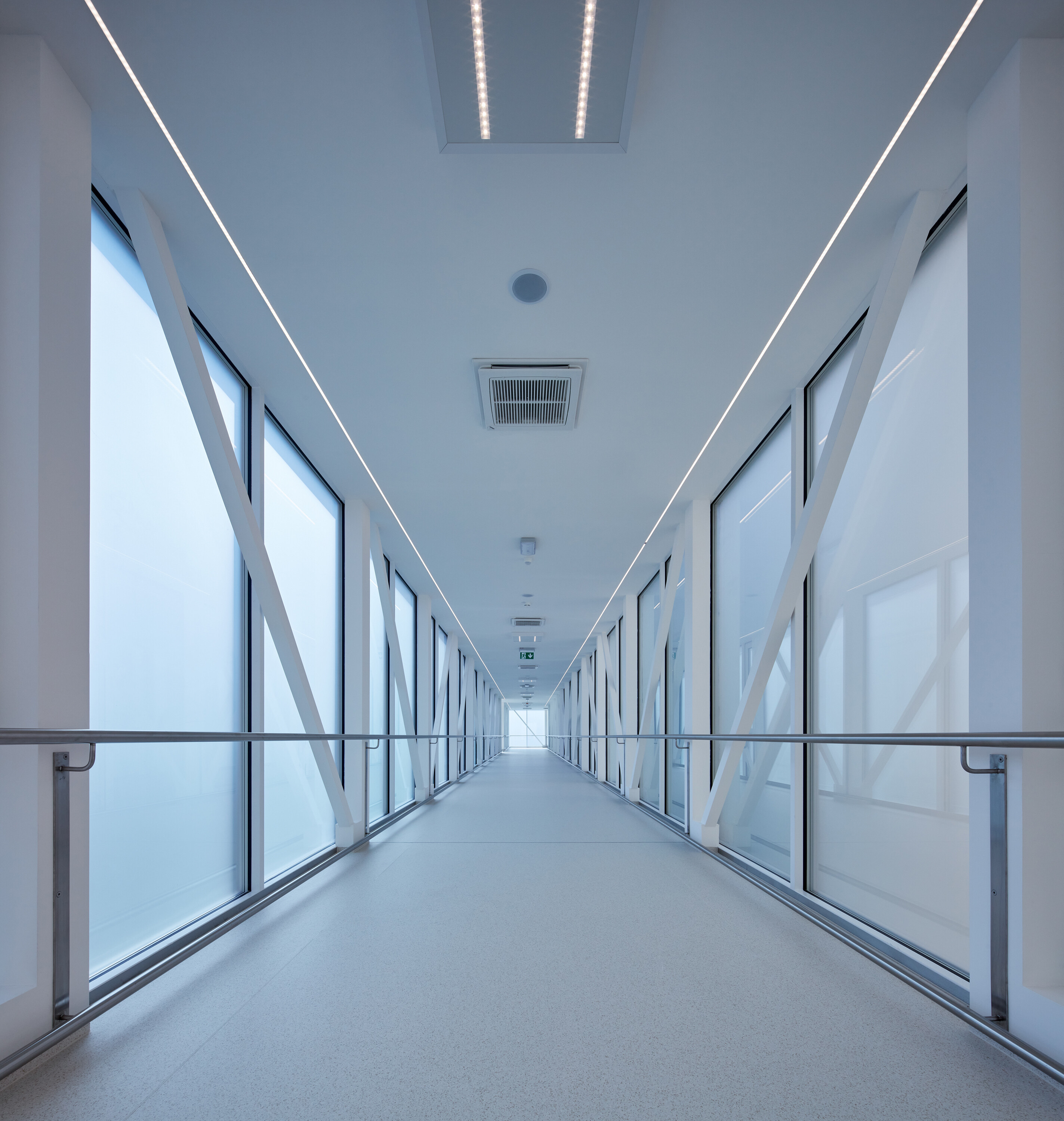Raster fasády umožňuje variabilné riešenie vnútorných dispozícií. Podstatné nie je len množstvo denného svetla a prehľadnosť celého pavilónu, ale aj premenlivosť svetelnej atmosféry v interiéri počas dňa. Pre pacientov a ich rodiny, ale aj pre zamestnancov, ktorí tu pracujú, to znamená, že nie sú izolovaní od okolitého sveta.