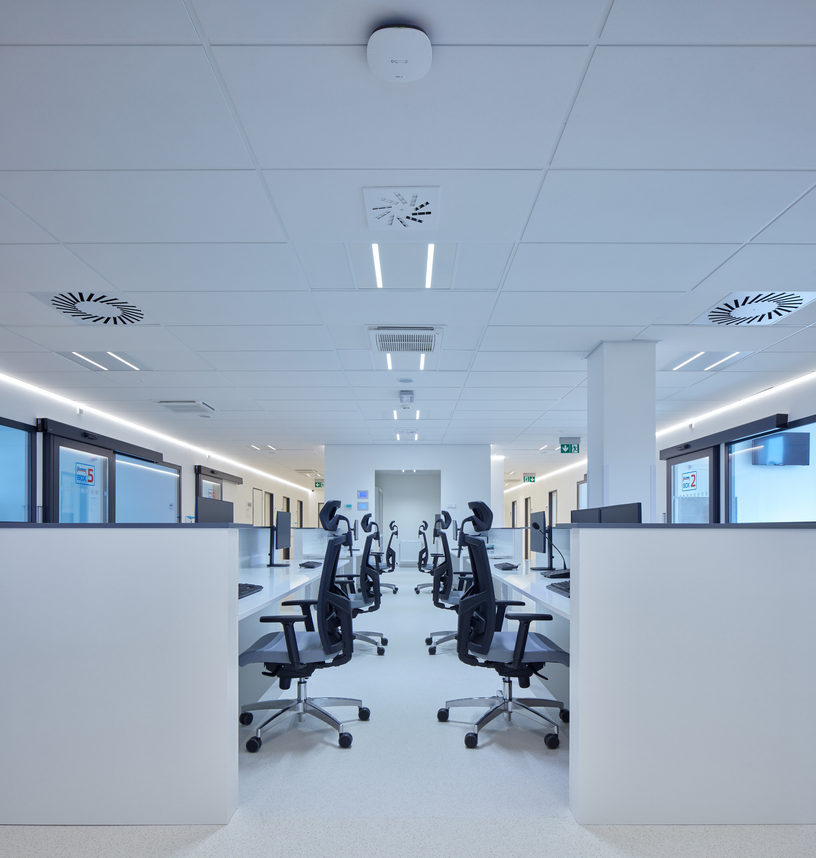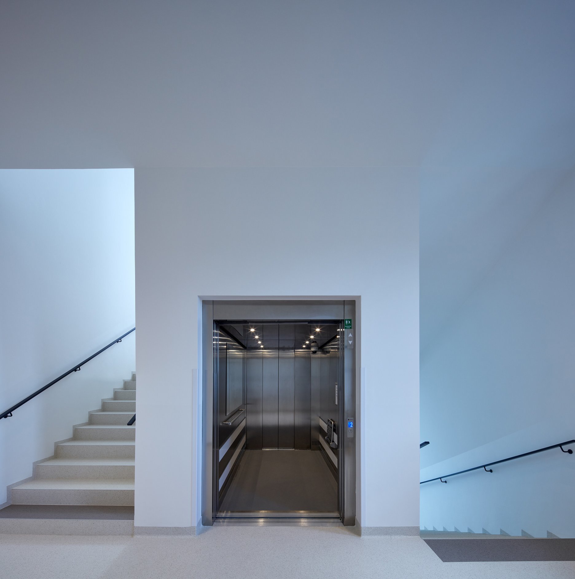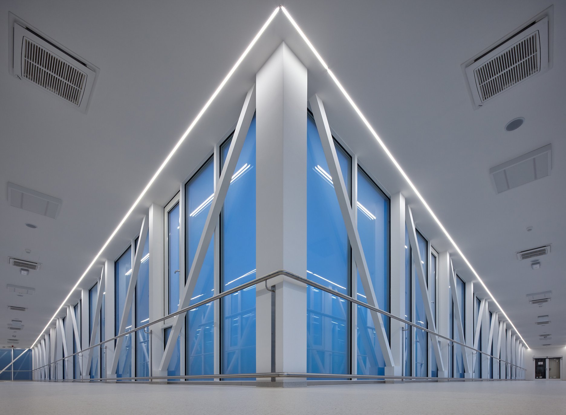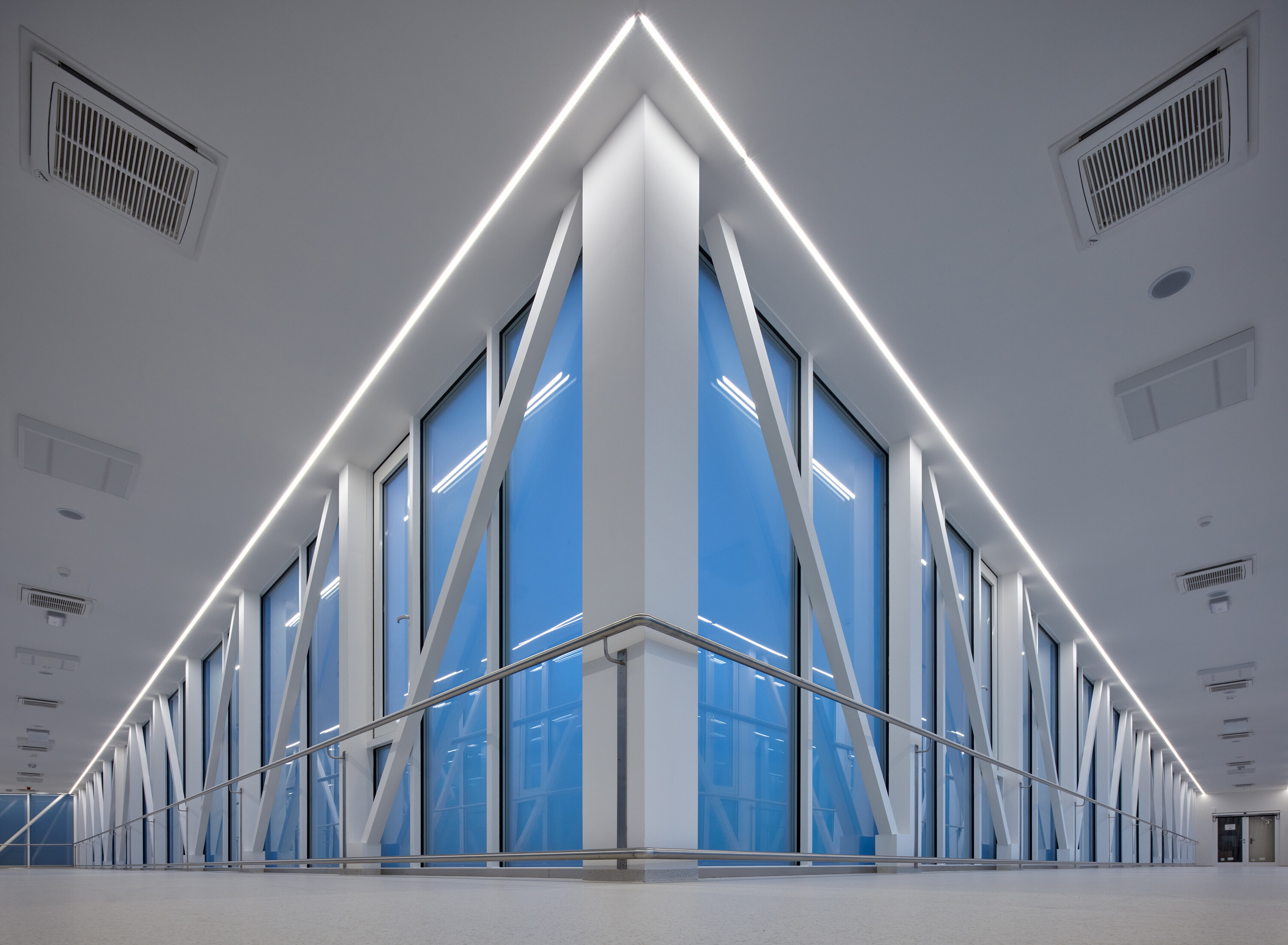 Raster fasády umožňuje variabilné riešenie vnútorných dispozícií. Podstatné nie je len množstvo denného svetla a prehľadnosť celého pavilónu, ale aj premenlivosť svetelnej atmosféry v interiéri počas dňa. Pre pacientov a ich rodiny, ale aj pre zamestnancov, ktorí tu pracujú, to znamená, že nie sú izolovaní od okolitého sveta.