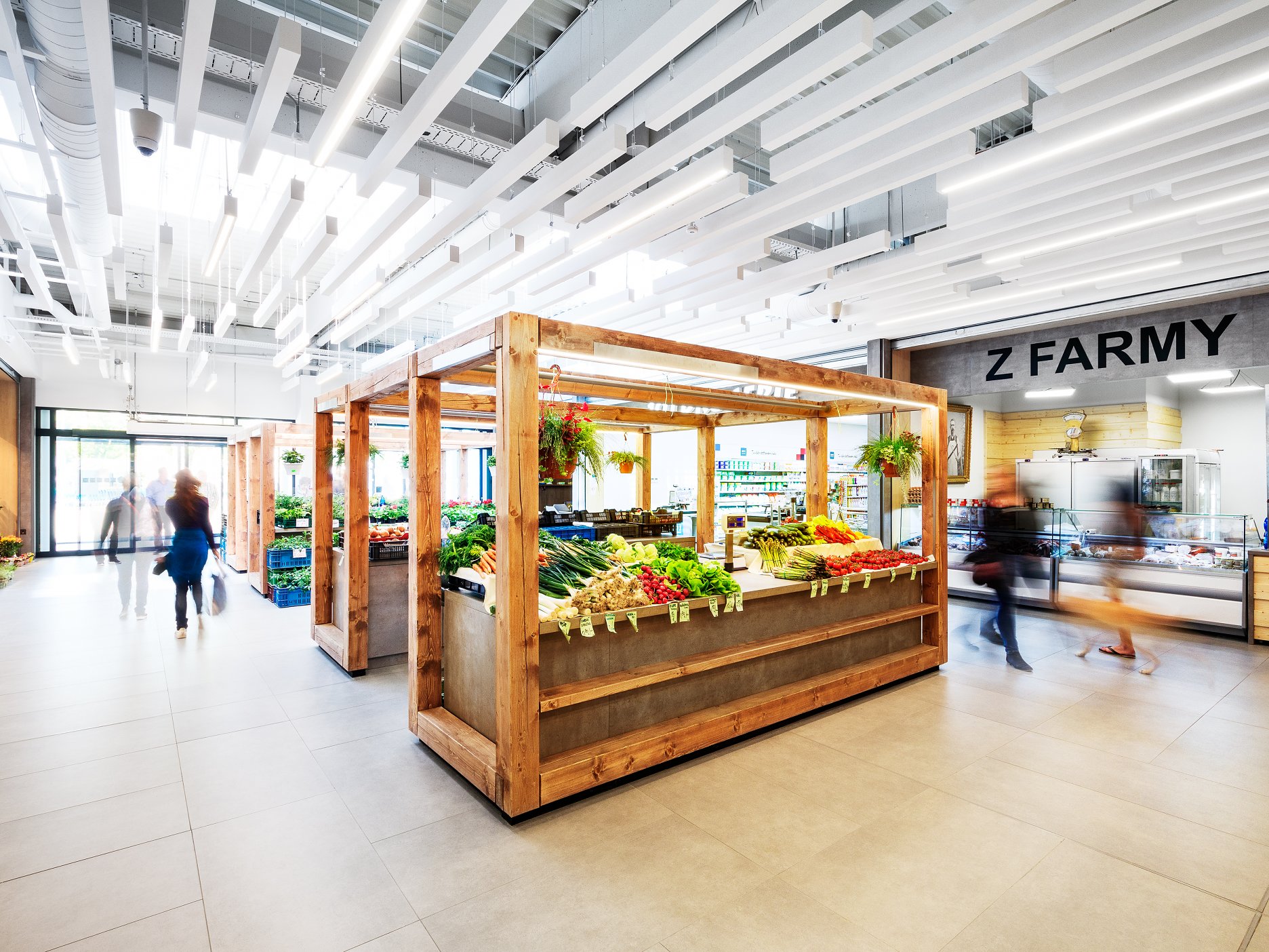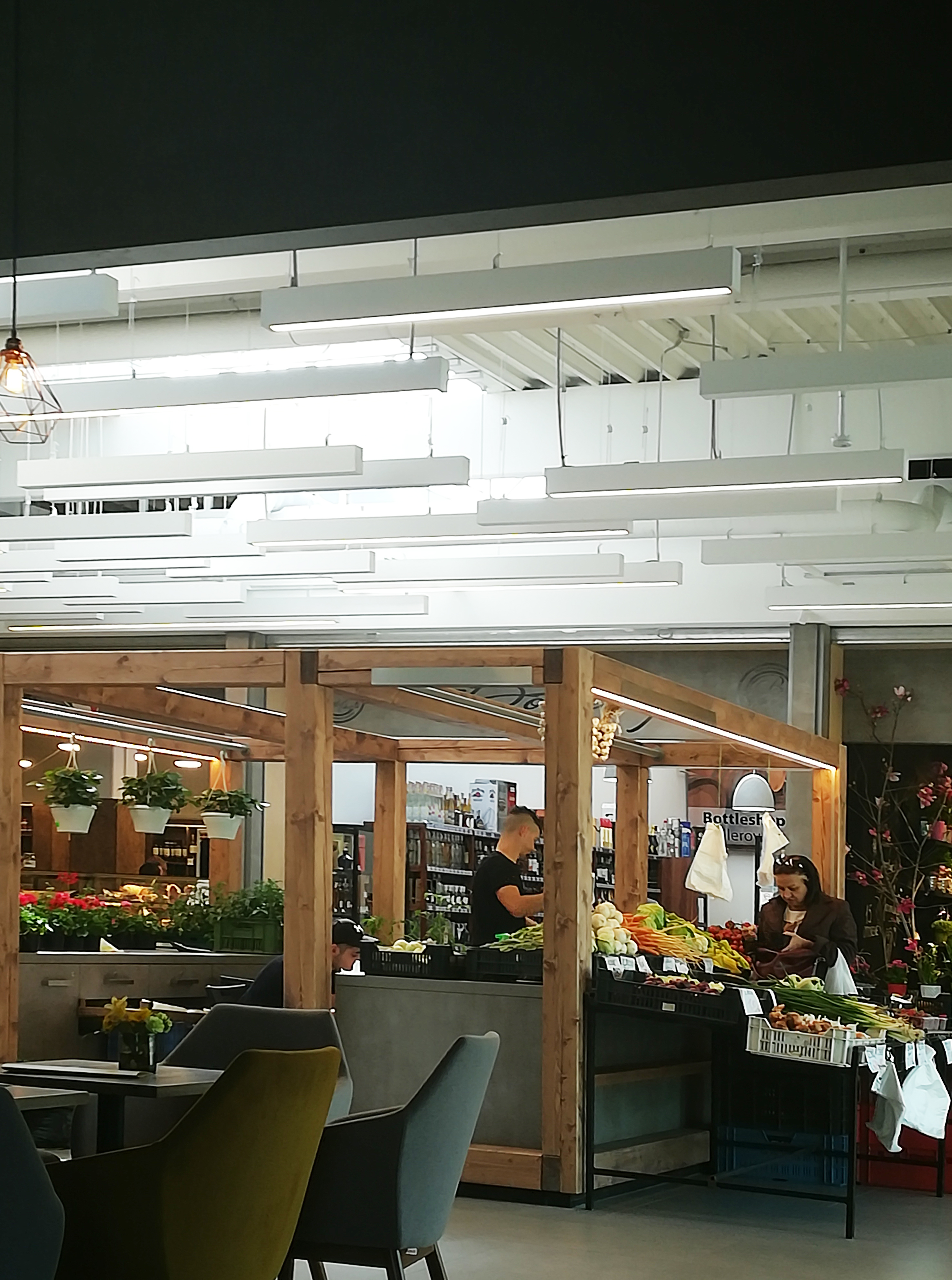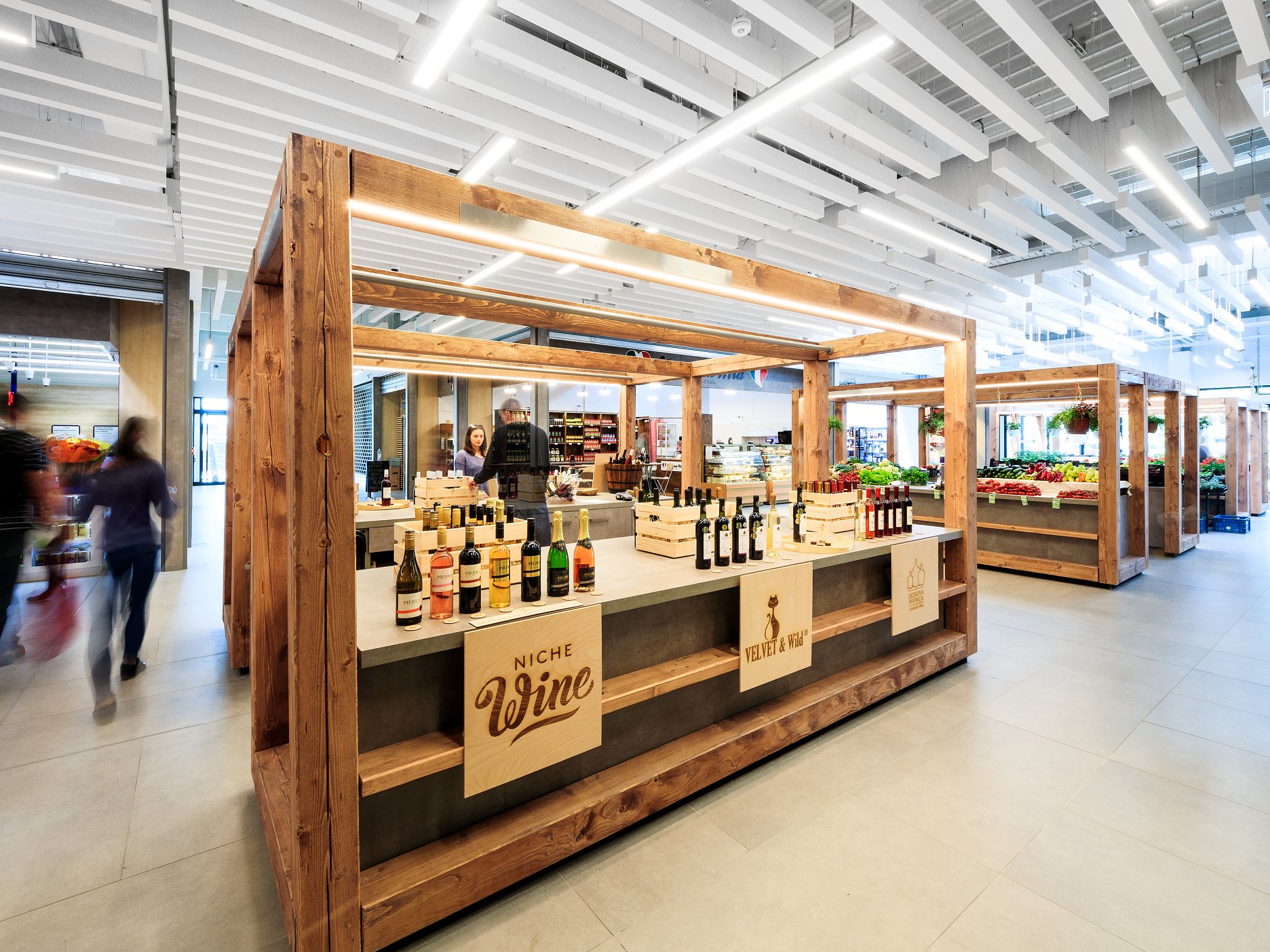 Jednoduchý koncept pôdorysného kríža dvoch obchodných komunikácií vedie od vchodov k významovým uzlom, s priestorom „trhoviska“ v osi jednej z nich. V časti bývalých skladov je vložené podlažie s prevádzkami služieb.