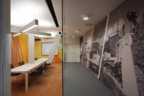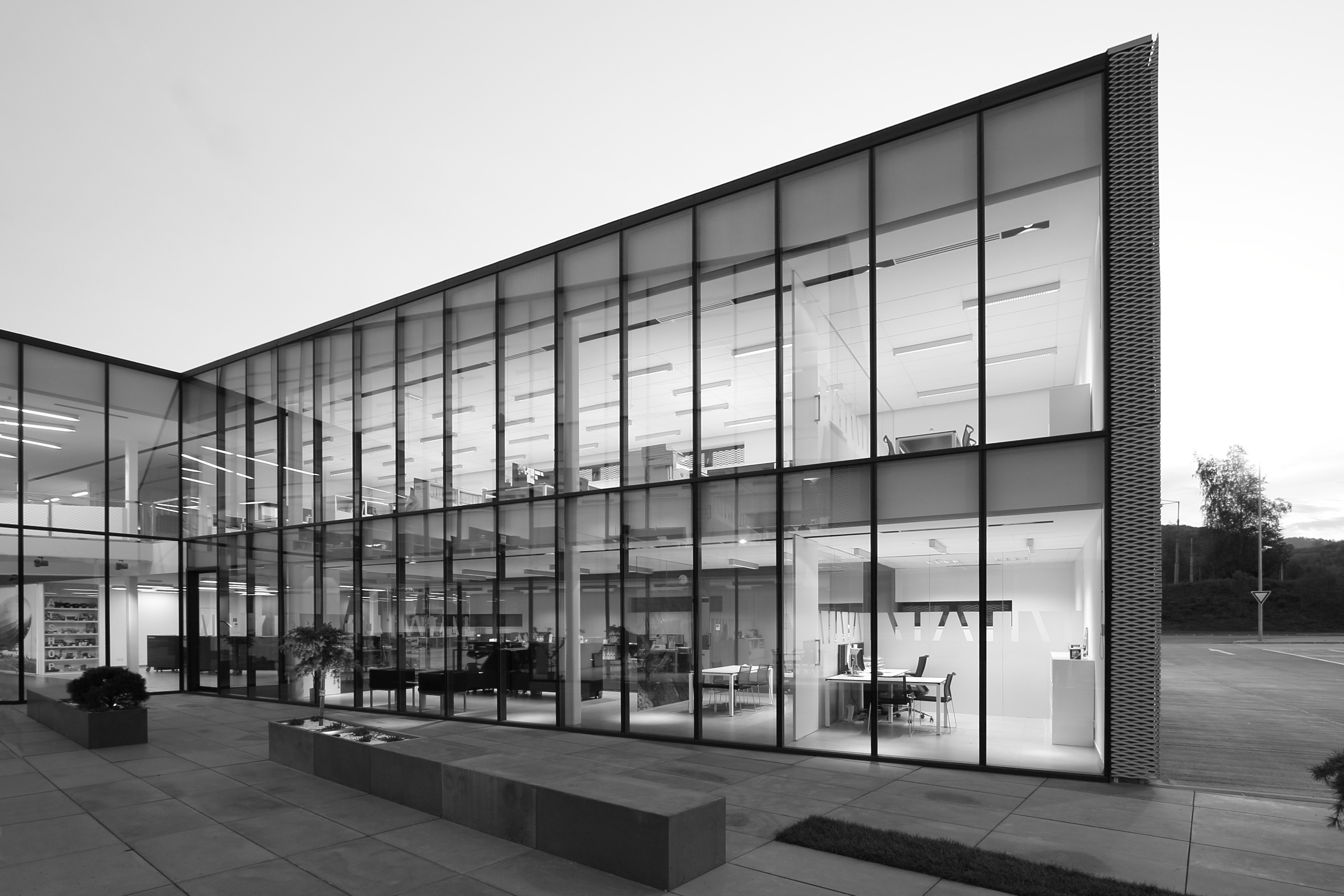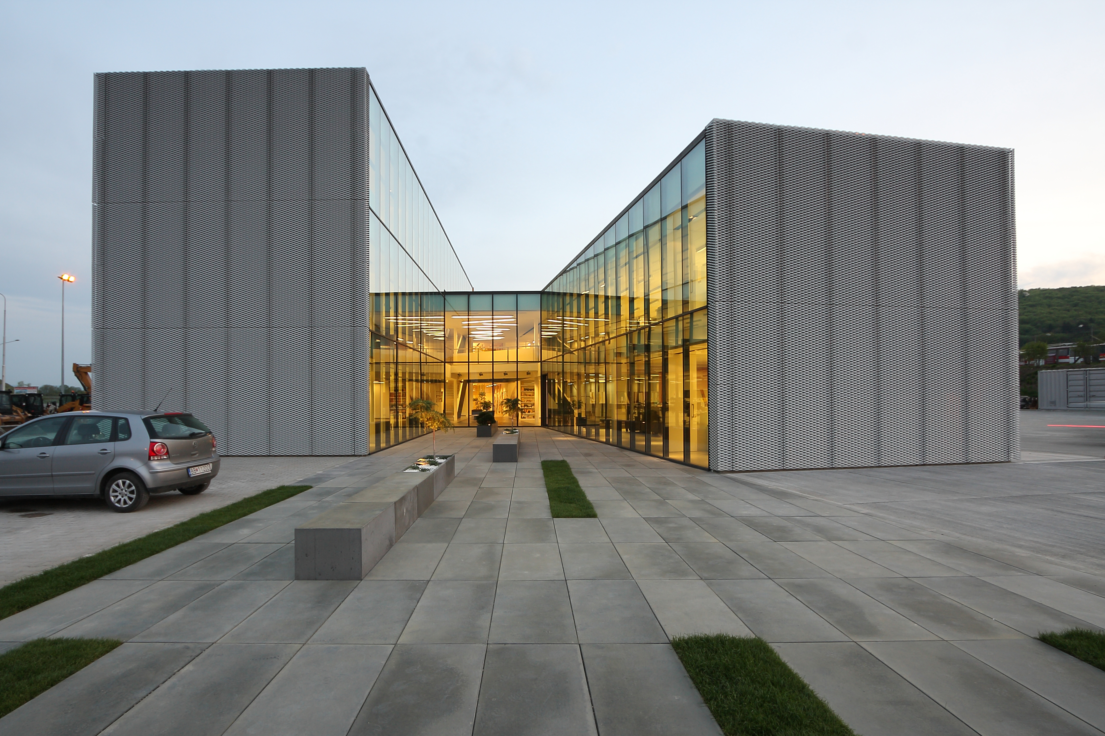 Pohľad juhovýchodnýPohľad severovýchodnýPohľad južnýDetailPohľad severozápadný.Detail.Pohľad juhozápadný.Zimný pohľad od cesty.ÁtriumÁtriumCentrálna halaSchodisko v haleCat RentalVstupná časť - recepciaCentrálny priestor objektuChodba 1.NPSekretariátOperatívne rokovacie miesnostiCentrálne schodiskoZasadačkaVstavaný šatník na 3.NPPohľad z haly do átria 3.NPOptické prepojenie pracovísk a átriaSeverovýchodné nárožiePredsadená ťahokovová fasáda a oknáÁtriumÁtrium bližší pohľadÁtrium detailÁtrium ČBÁtrium na výškuSeverný pohľad večerNočný pohľad od cestyDielňaDiaľkový pohľad od cesty
