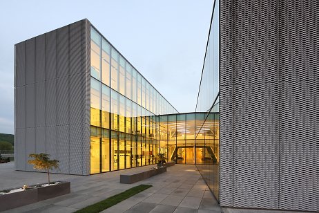 Polotransparentná predsadená fasáda zjednocuje všetky povrchy.