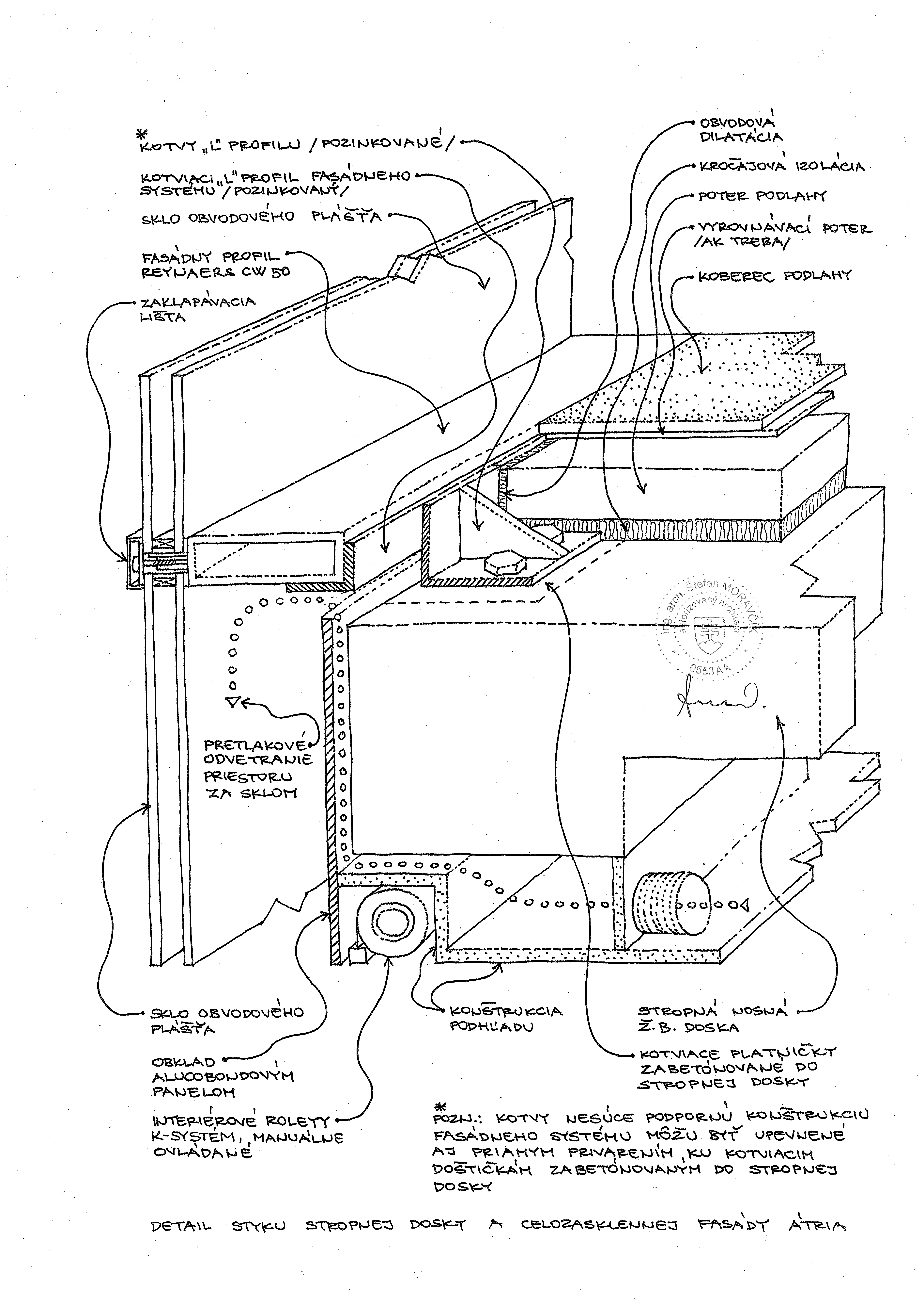 Fasáda - spodné ukončenieFasáda - horné ukončenieSpojenie predsadenej sklenenej fasády s budovouSkladba strešnej terasy