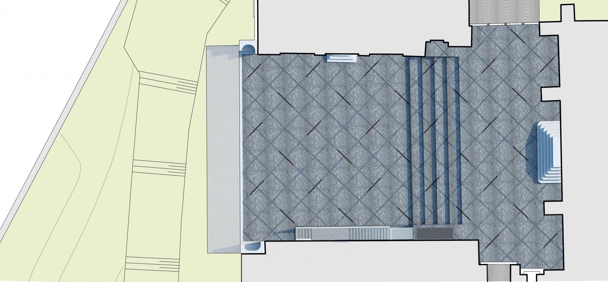 Celé priestranstvo bolo očistené od umelo vytvorených dopravných bariér, ktoré rozdeľovali priestor na chodník a vozovku. Odstránené boli aj lampy verejného osvetlenia. Použitím „jazdeckých schodov“ bol eliminovaný priestor, kde parkovali nedisciplinovaní vodiči. Jediným nutným zlom v areáli zostali len výsuvné stĺpiky s komunikačným systémom, ktoré nahradili pôvodnú závoru.