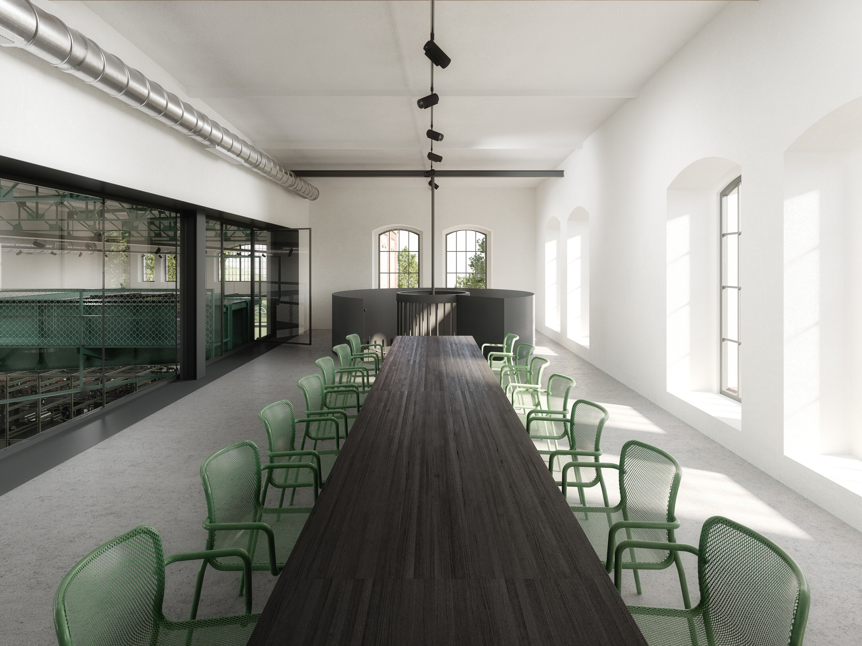 Architekti šetria výraznými gestami, ktoré nájdeme iba v najvýznamnejších polohách. Patrí medzi ne nový vstup do objektu, akcentovaný veľkorysým vonkajším schodiskom a presklenie hlavného štítu s priehľadom do výroby.“V interiéru plánujeme využít vybavení dřívější elektrorozvodny i mostový jeřáb a další objekty a povrchy,” dodávajú architekti.