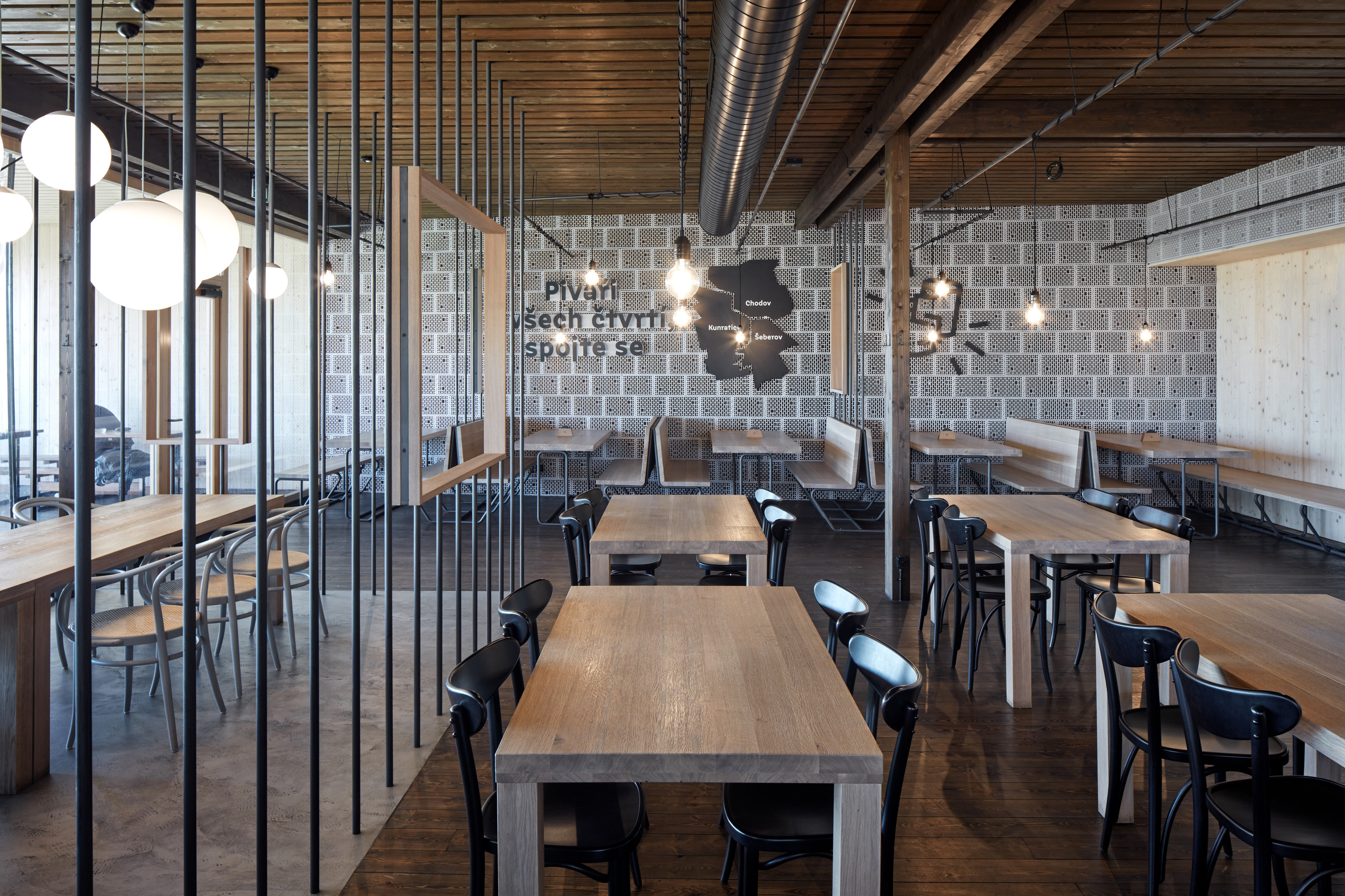 Základné tvarovanie objektu podmienila klinovitá parcela. Výsledné architektonické riešenie do značnej miery ovplyvnil prvý pivovar zo skupiny - Hostivař. Novostavba sa drží osvedčených princípov, pričom architekti pracujú so špecifickou identitou miesta. Fasáda je tvorená trojrozmerným rastrom smrekových lát, morených čiernou farbou. Na tmavom pozadí vyniknú svetlé, smrekové rámy okien. Pevná obálka je otvorená len na dôležitých miestach - vo varni pivovaru a v reštaurácii, ktorá je na juhu veľkou presklenou plochou prepojená cez zastrešenú terasu so záhradou.