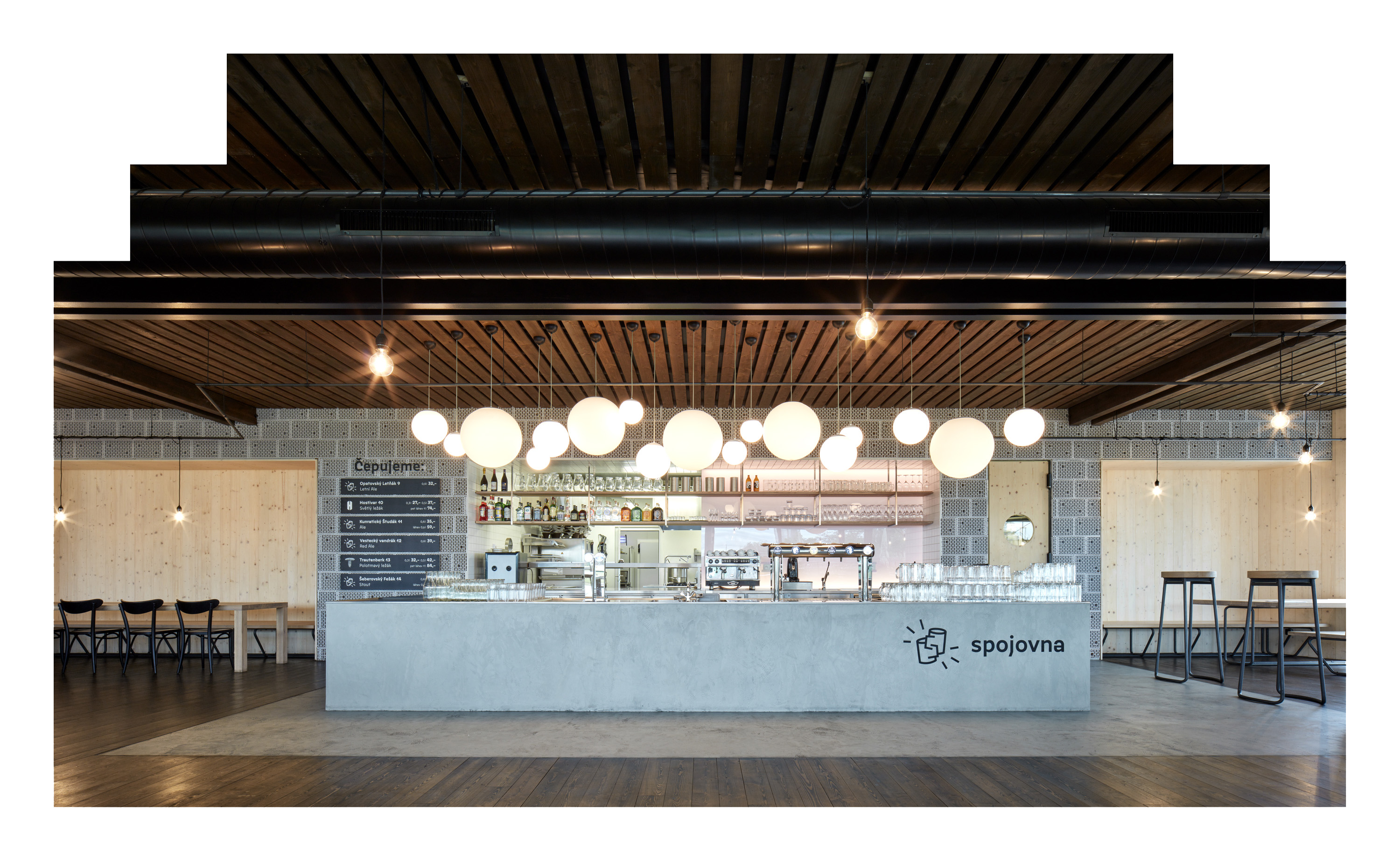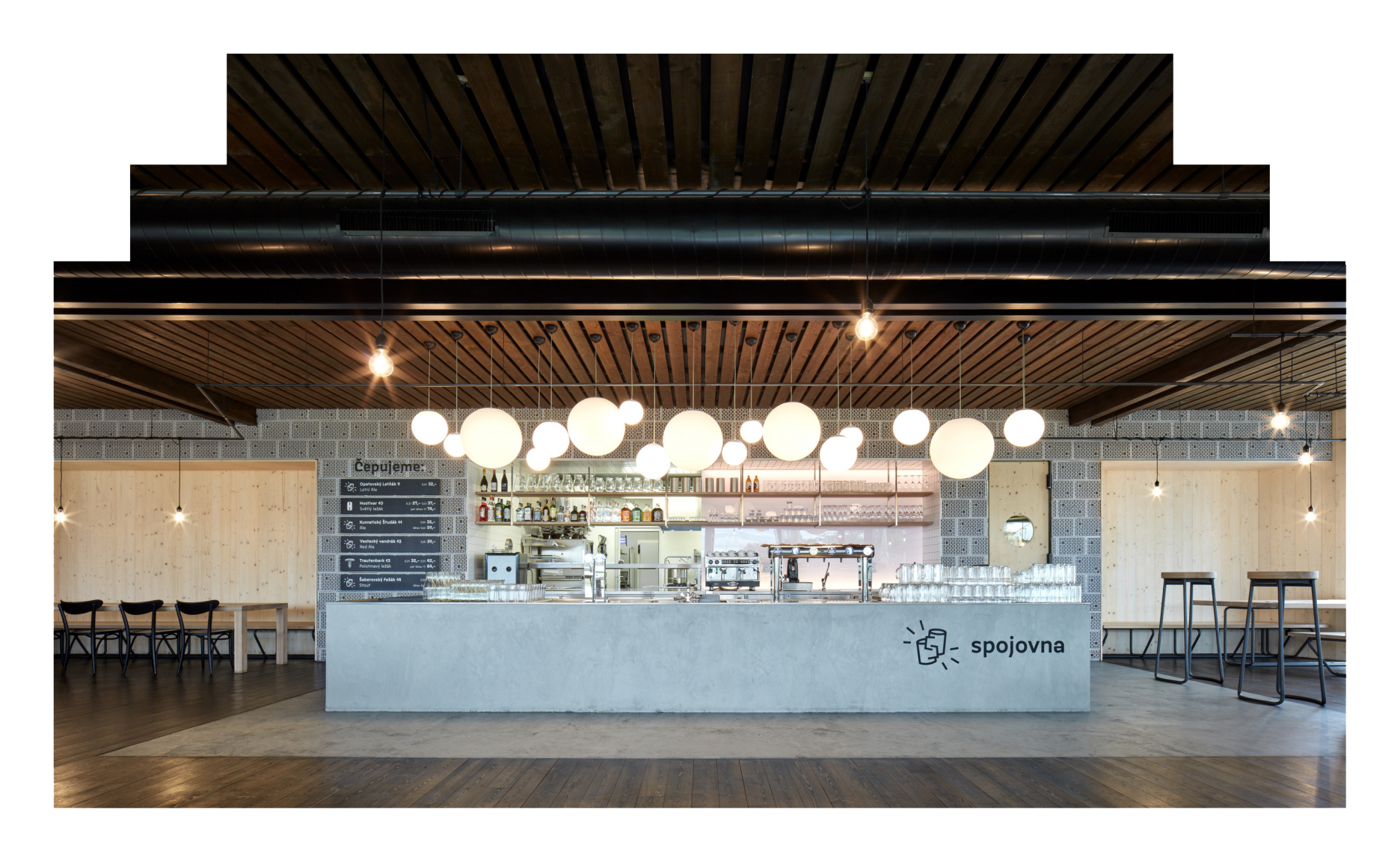 Tieto svety sa prelínajú aj v novom pivovare. Obedy patria “kravaťákom”, večery študentom a miestnym štamgastom. Odtiaľ pochádza aj názov pivovaru - SPOJOVNA.