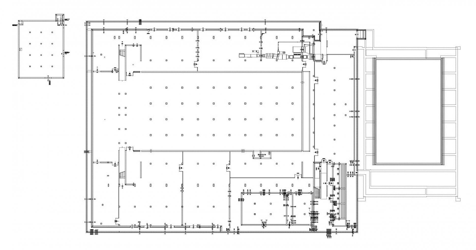 Odolné a odhalené povrchy a konštrukcie v bazénových halách zjednocuje biely náter, ktorý spolu so zvoleným osvetlením určuje atmosféru priestorov. Dôsledne integrovaná technológia a rozvody vzduchotechniky nechávajú vyniknúť elementárny interiér.