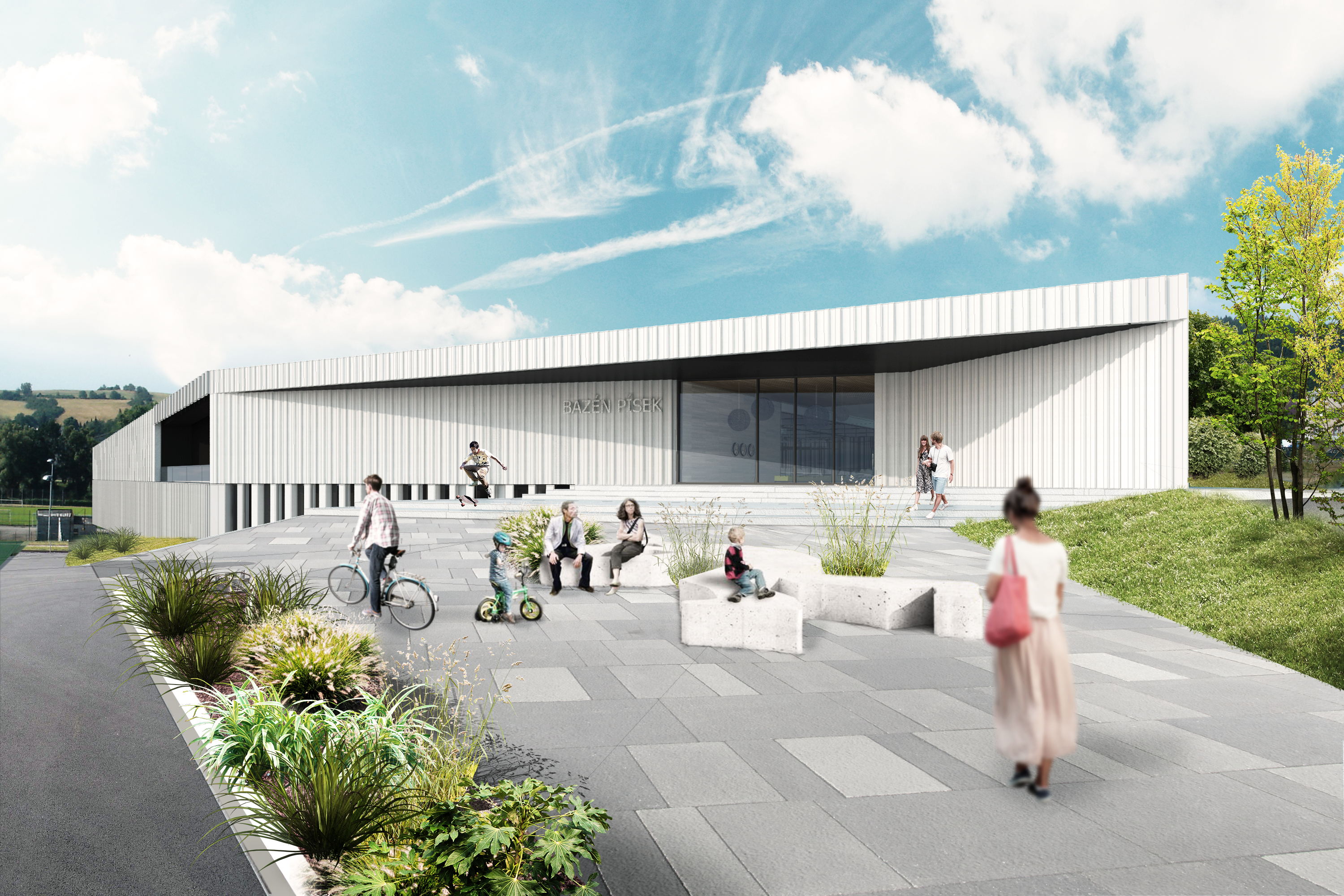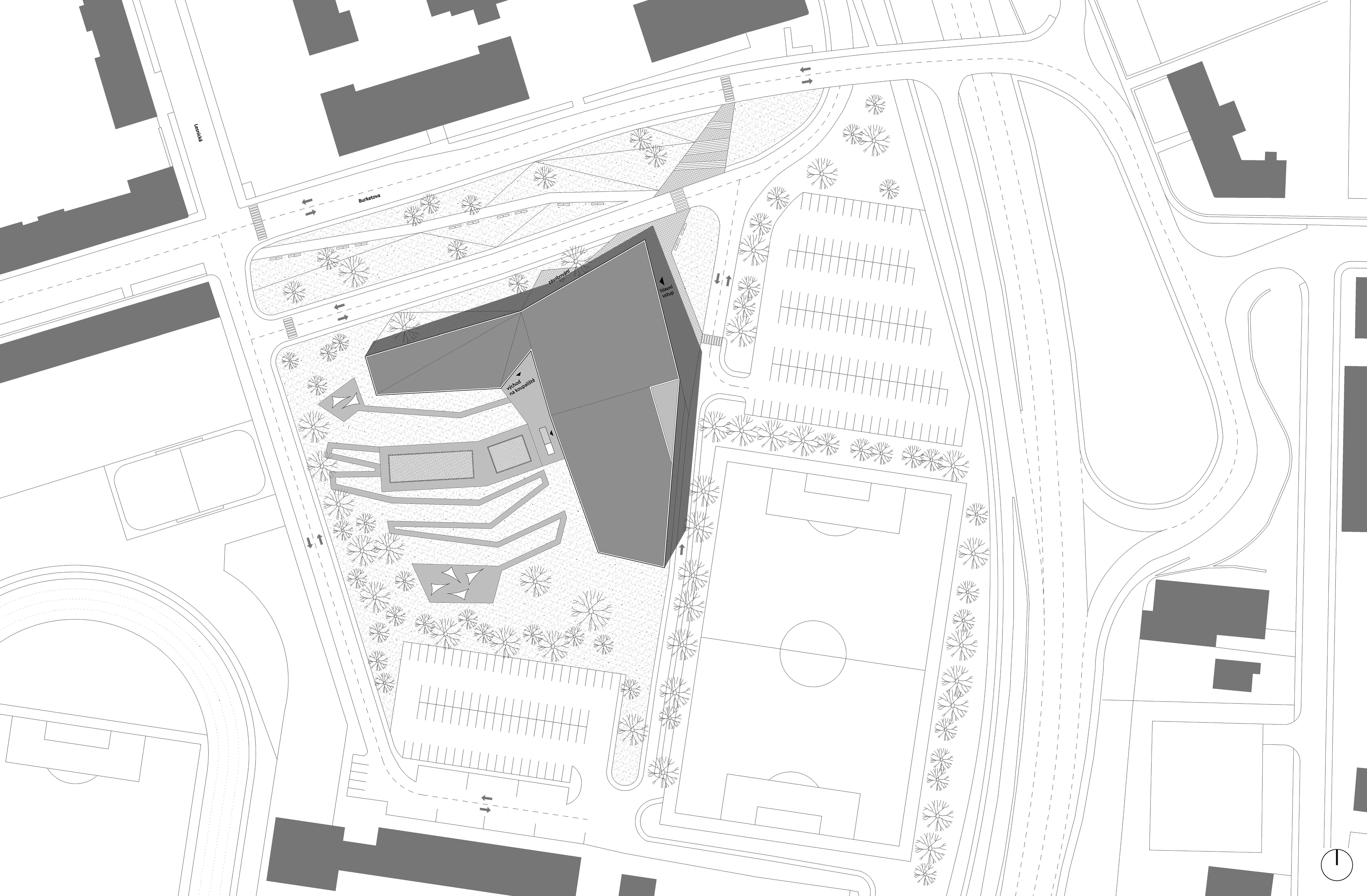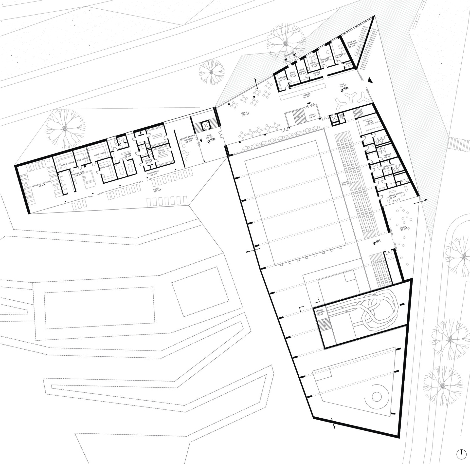 Urbanistická koncepcia je kompaktná a jasne čitateľná, čo prispieva k optimalizácii prevádzky a stavebných nákladov. Vo vzťahu k mestu sa stavba javí ako významný objekt, ktorý čistým a dynamickým architektonickým výrazom primerane signalizuje športovo - rekreačný charakter.