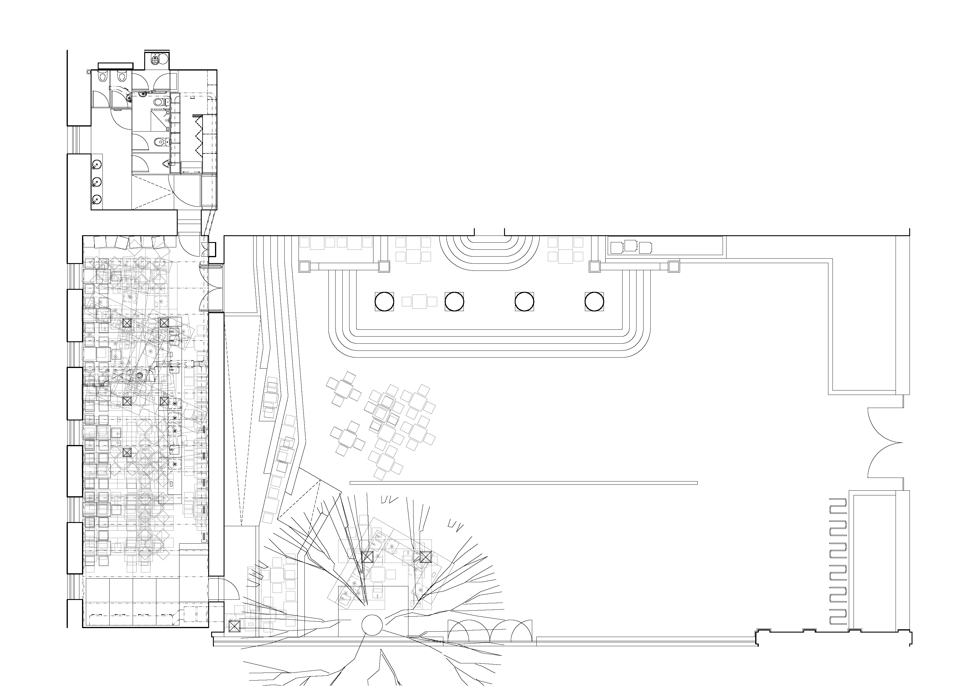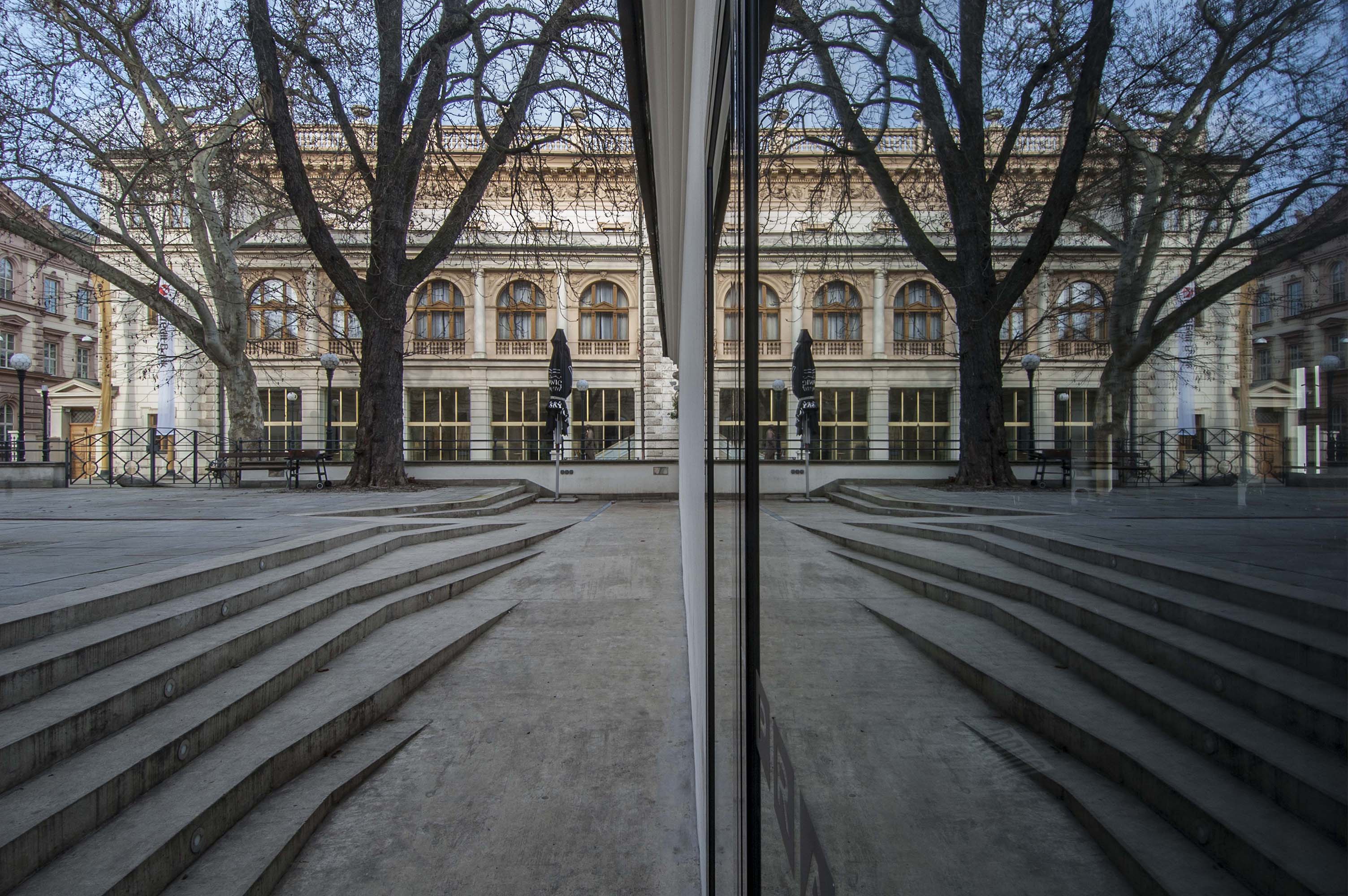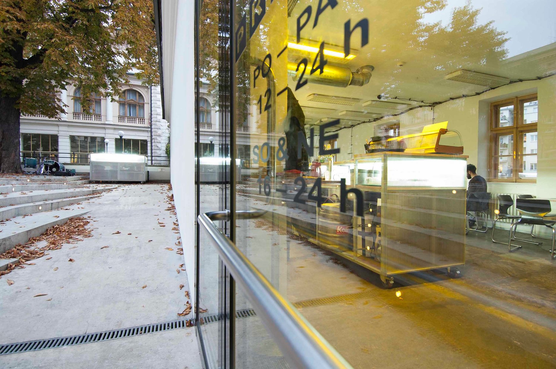 “Neexistuje žádná permanentní náplň (funkce), je definován pouze prostor stávající stavby a nový prostor událostí. Existující prostor je i po odstranění všech nenosných příček těsný, nově iniciovaný prostor je proto situační, podle okamžitých potřeb expandující na venkovní nádvoří nebo se smršťující v komorní kavárnu. Interiér města (nádvoří) a adaptovaného objektu splývají v nových gradientech společné podlahy. Hranice navržené architektury jsou definovány multiplicitou jejího kulturního programu,” vysvetlili pôvodný koncept architekti.