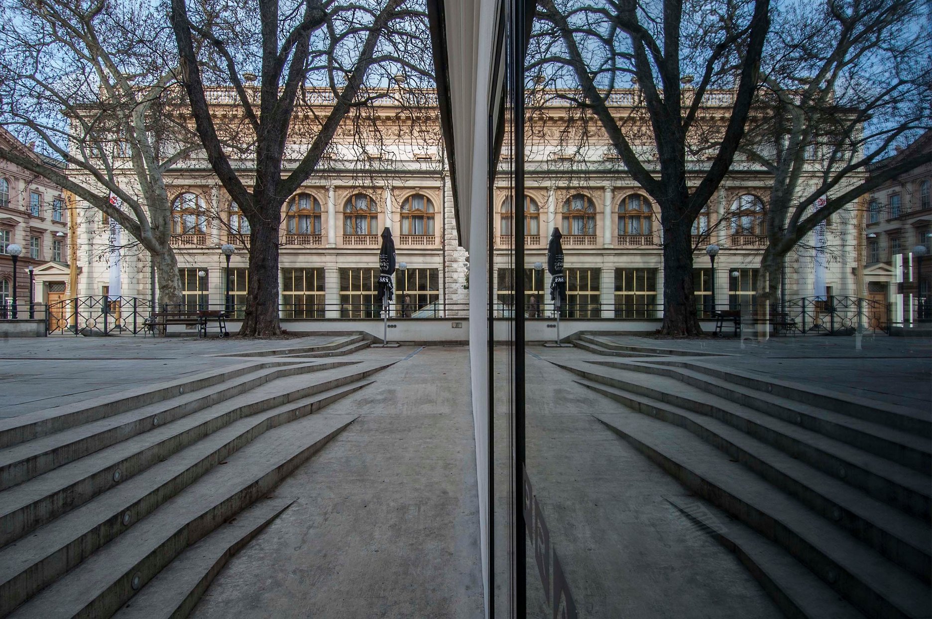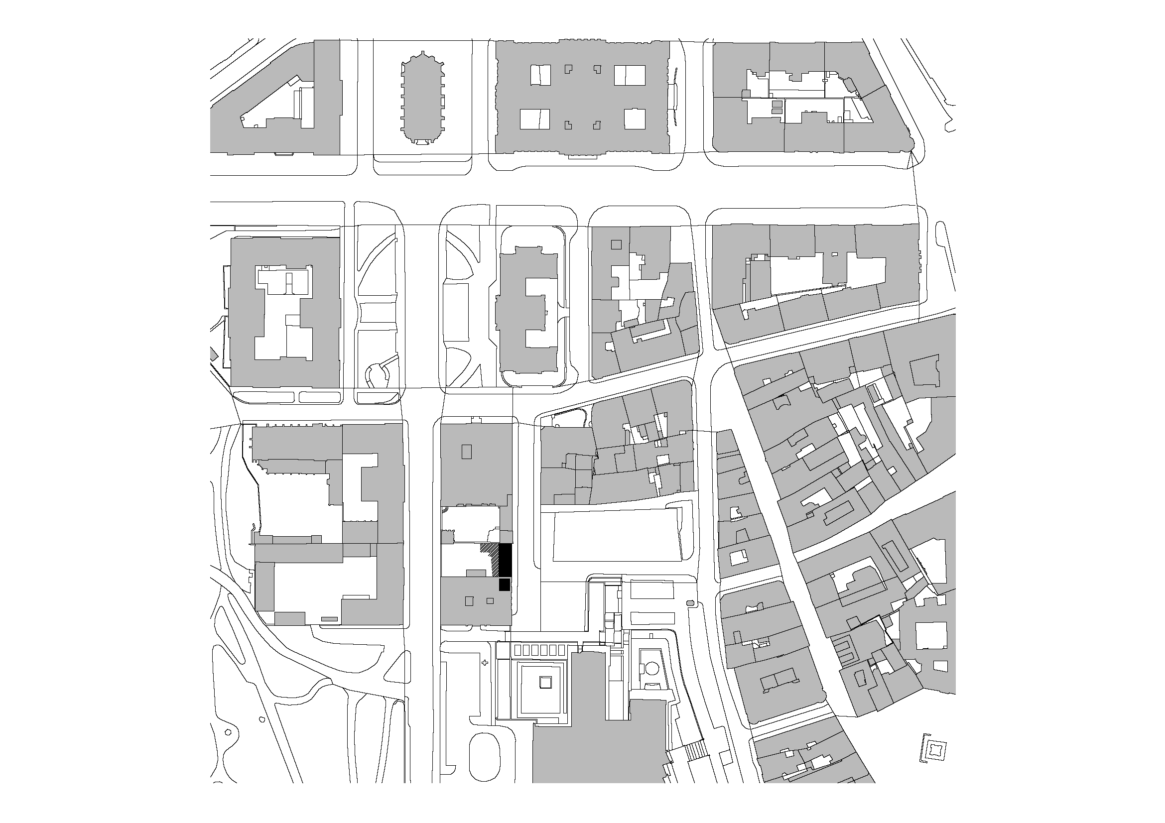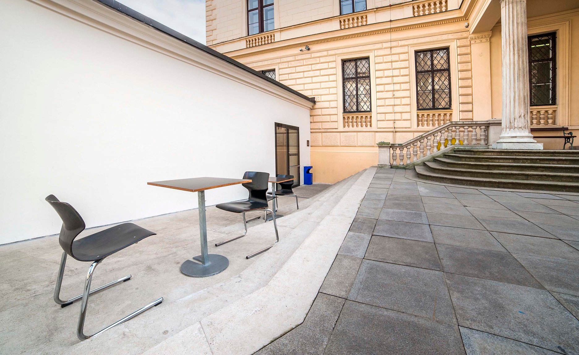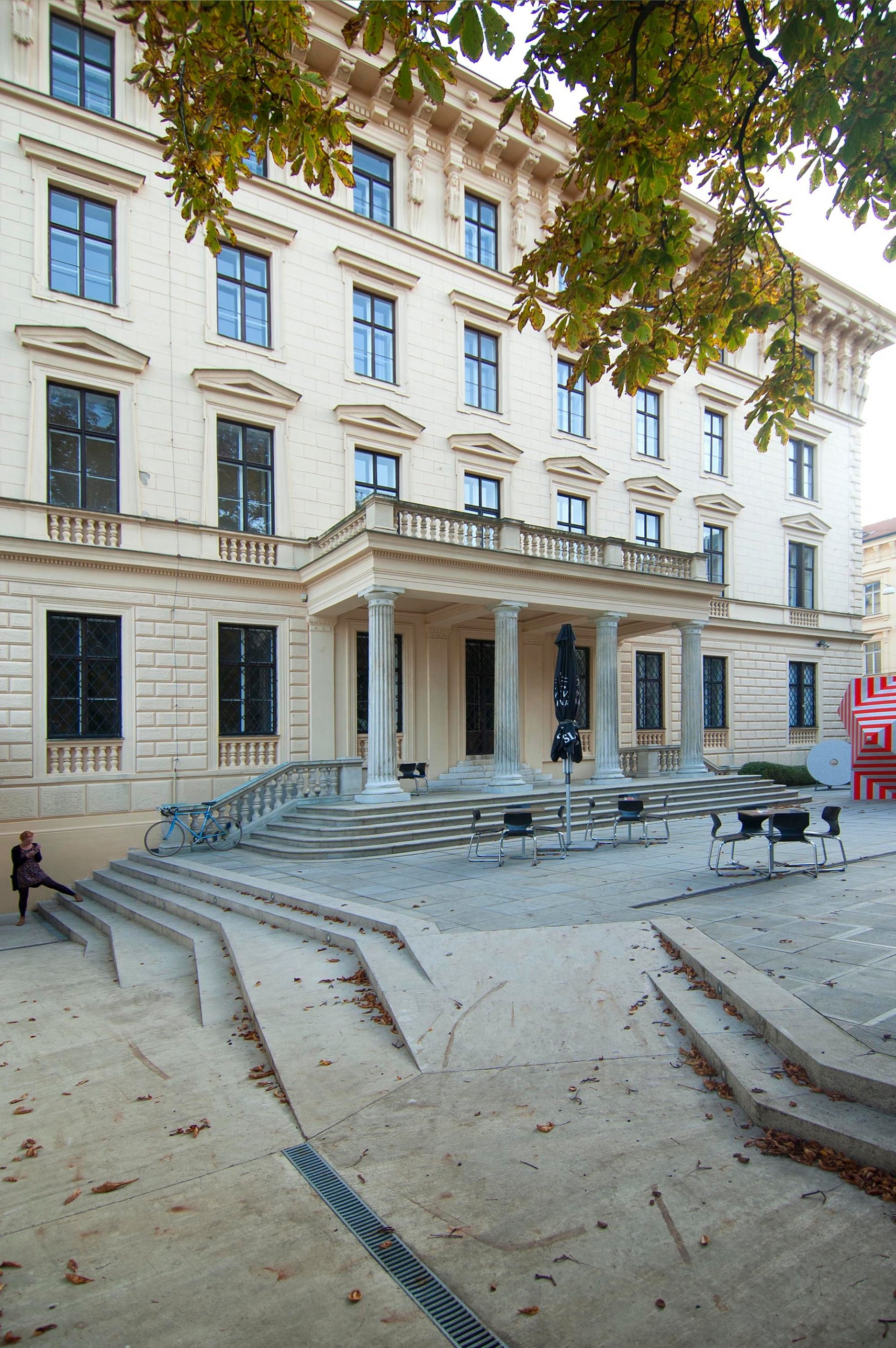 Na okružnej triede, vymedzujúcej historické jadro Brna, sa nachádza nádvorie neorenesančného súboru Pražákovho paláca (sídlo Moravskej galérie) a Besedního domu (Brněnská filharmonie). Projekt adaptoval ich spojovací krčok umiestnený na terénnej hrane niekdajšieho hradobného valu.
