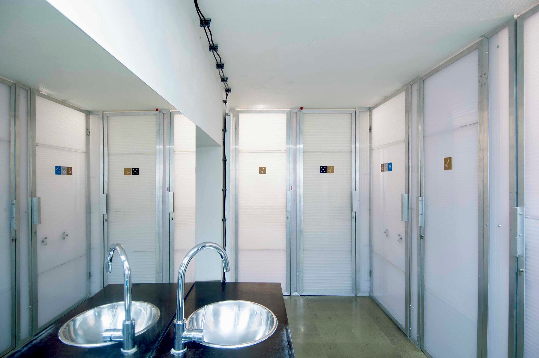 Zásahy do bývalých dielní zahŕňali najmä obnovenú infraštruktúru (bezbariérové úpravy, výplne stavebných otvorov, sanita, inštalačné šachty, siete…). Mobiliár bol v pôvodnom slova zmysle mobilný, používaný bez rozlíšenia interiéru a exteriéru (barové segmenty, pódiové podesty použiteľné ako pracovné stoly, výškovo nastaviteľné stolíky, stohovateľné a skladacie stoličky). Ambivalenciu meniaceho sa priestoru rozšírili stopy pôvodnej dielne (žiarivkové osvetlenie, skoršie dispozície, textúra betónové podlahy, rozdielna zrnitosť omietok v mieste asanovaných priečok...) a použitie recyklovaných prvkov (polykarbonátové panely z výstavy Obrazy mysle, reinštalácia knižnice z literárneho veľtrhu alebo stoličky z Aukra ...).