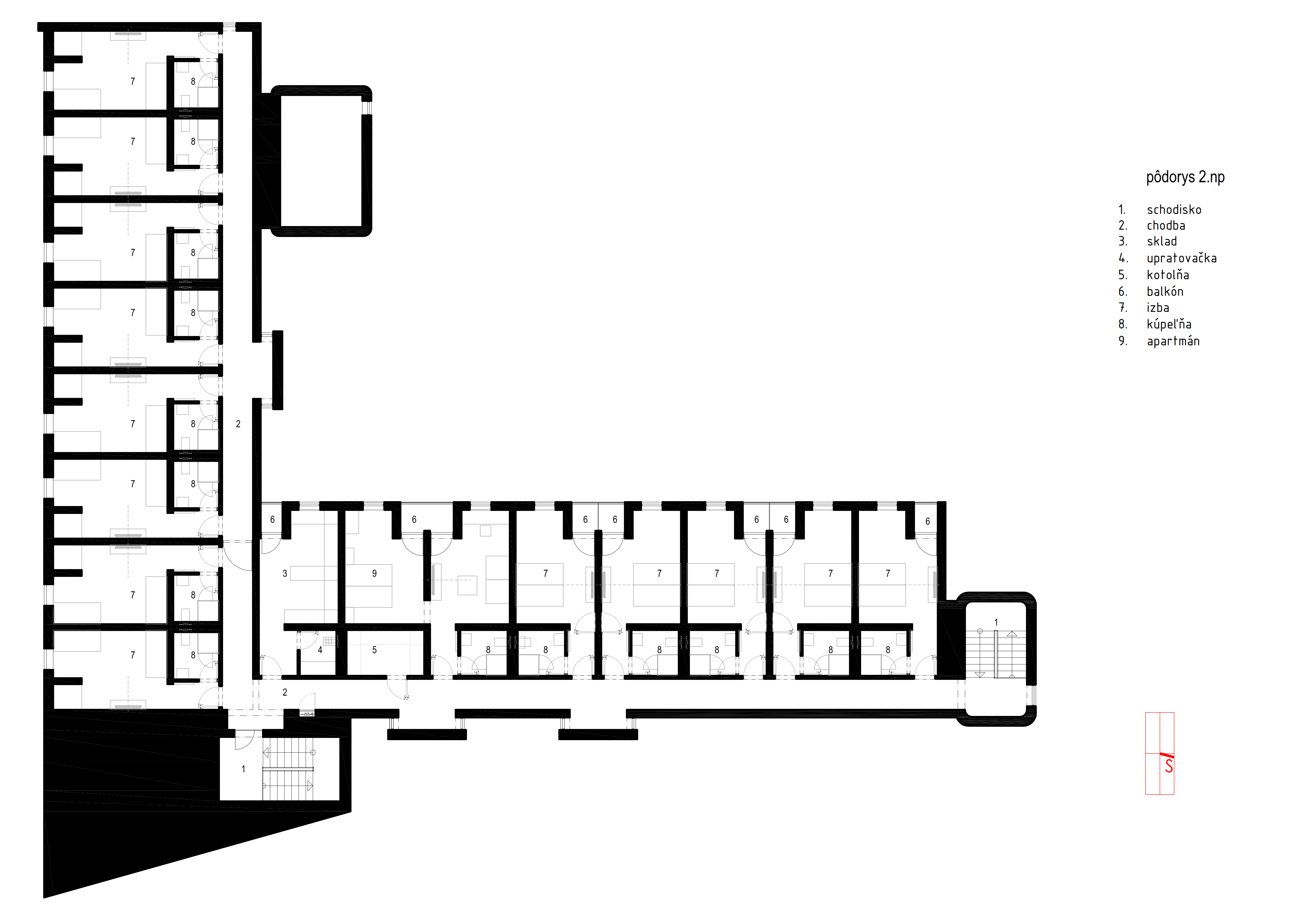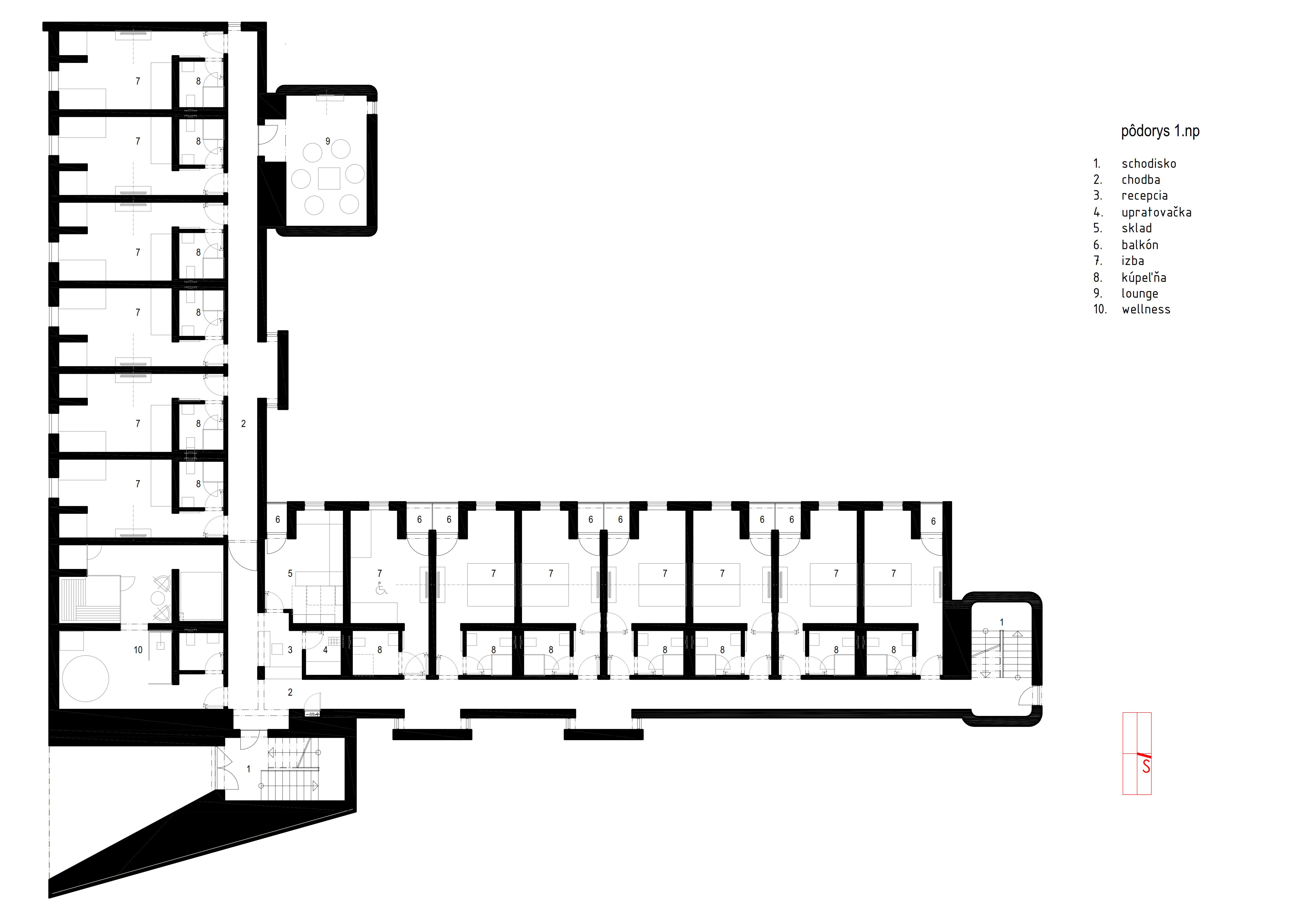Pôdorysne bola pôvodná stavba modifikovaná minimálne. Členenie miestností bolo ponechané a dostavané boli len nevyhnutné spoločenské priestory, nakoľko objekt slúži len ako nocľah. Ostatné spoločenské časti sú riešené v priľahlom objekte vinárstva.