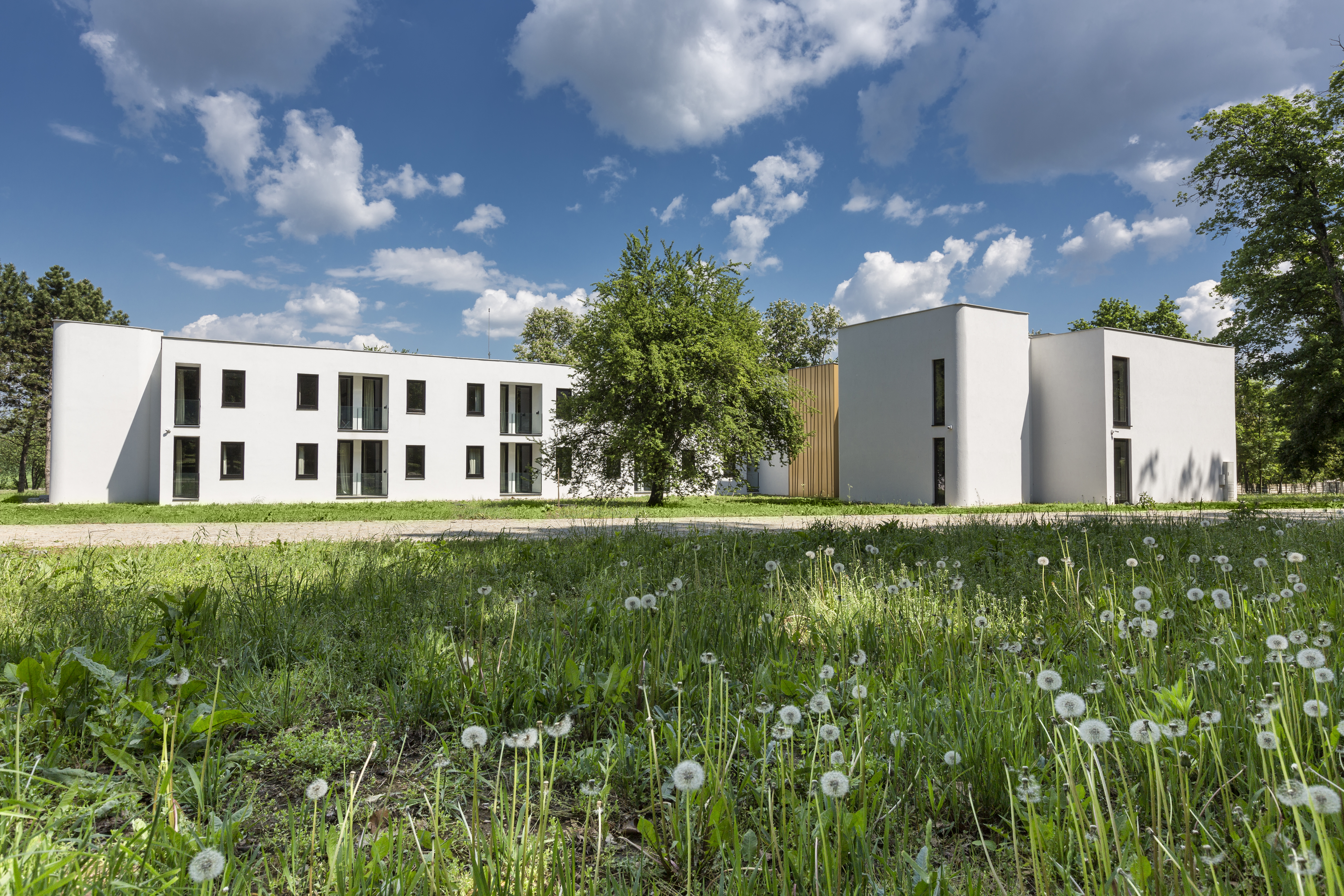 Pôvodná budova bola postavená v 70-tych rokoch ako „Charitný dom - domov dôchodcov“, neskôr slúžila pre rehoľu mníšok ako ubytovňa. Bol to rozsiahly objekt so 76 izbami a hmotovo tvoril dominantu v areáli kaštieľa v Rúbani. Architekti sa rozhodli zbúrať väčšiu časť objektu a ponechať len jedno krídlo pre ďalšie využitie. Objekt stojí pri vstupe do areálu, víta návštevníkov a sprostredkúva im prvým dojem.