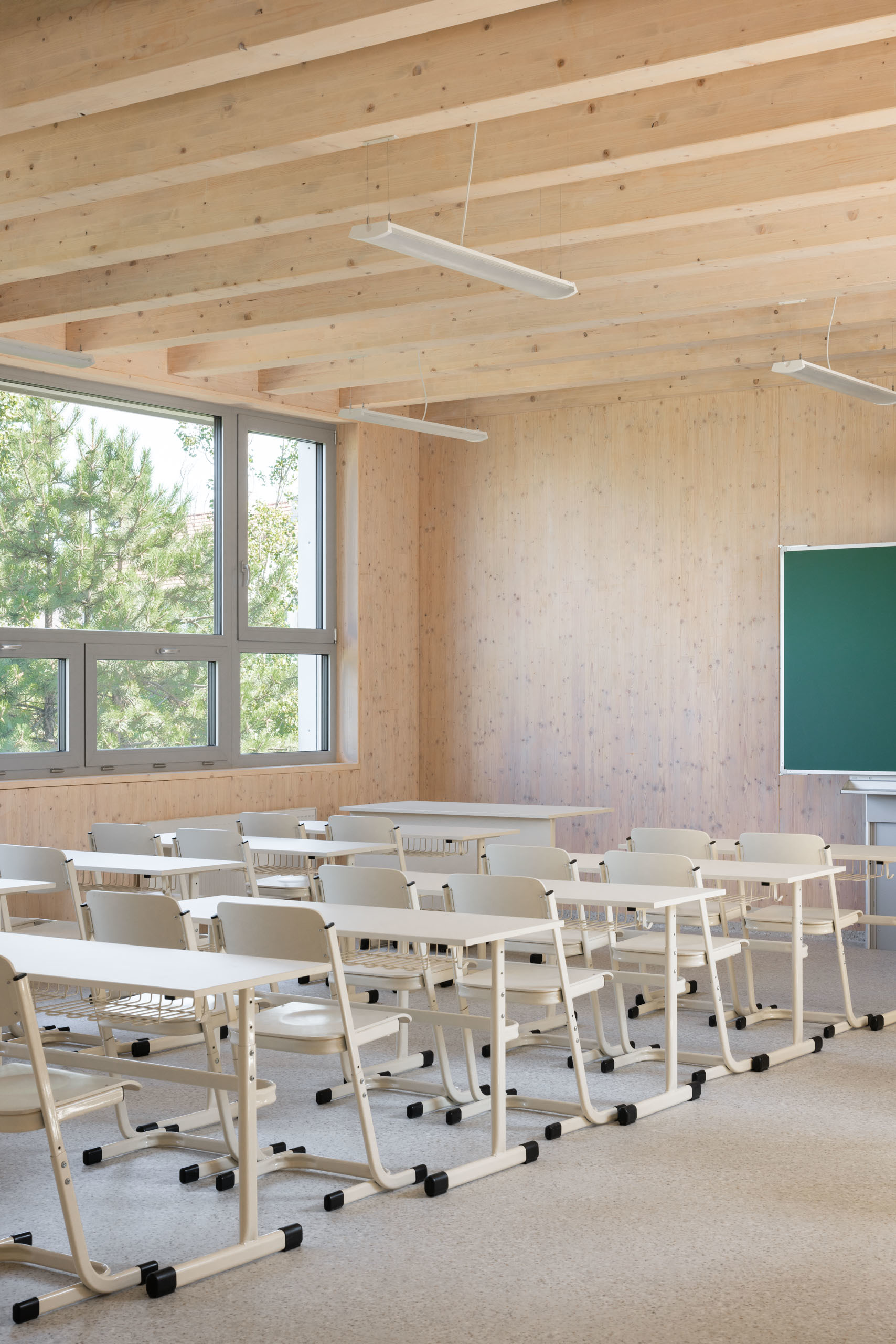 Medzi kvalitné realizácie z verejných zdrojov, ktoré ťažia z vybudovanej infraštruktúry existujúcich škôl (ZŠ v Bernolákove, bratislavská ZŠ Cádrova, ZŠ v Záhorskej Bystrici...), v priebehu uplynulého roku pribudla realizácia ateliéru ATOMstudio v Devínskej Novej Vsi. Východiskom riešenia prístavby a dostavby školy je dôsledná analýza pôvodného projektu a prevádzky typovej pavilónovej školy z 80. rokov. Dispozícia ľahkej drevenej nadstavby zachováva prevádzkovú schému nižších podlaží. Kompaktnú prístavbu s kmeňovými učebňami architekti mierne odsadili, čím zachovávajú čitateľnosť pôvodnej kompozície. Materiálová podstata nových blokov sa premieta aj do interiéru, v podobe odhalených trámových stropov, alebo masívnych CLT panelov.