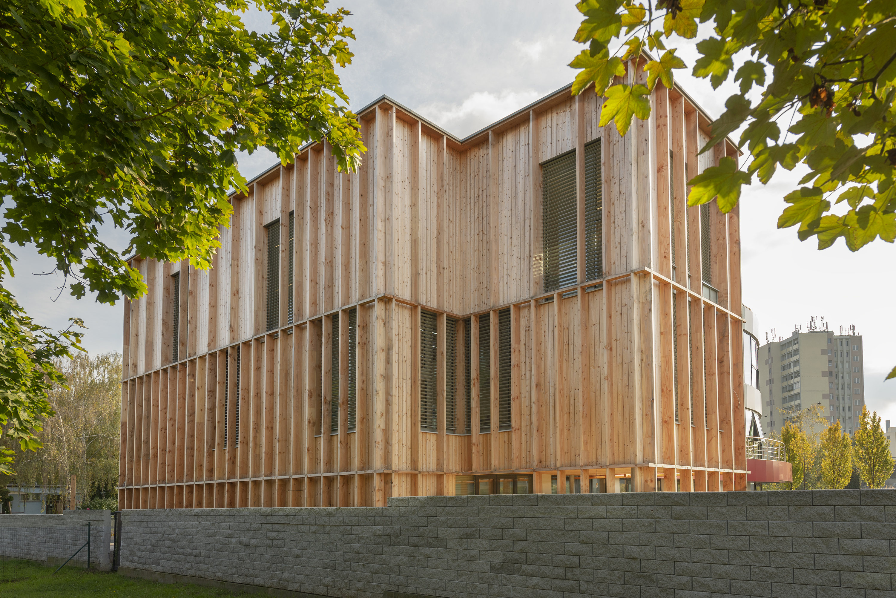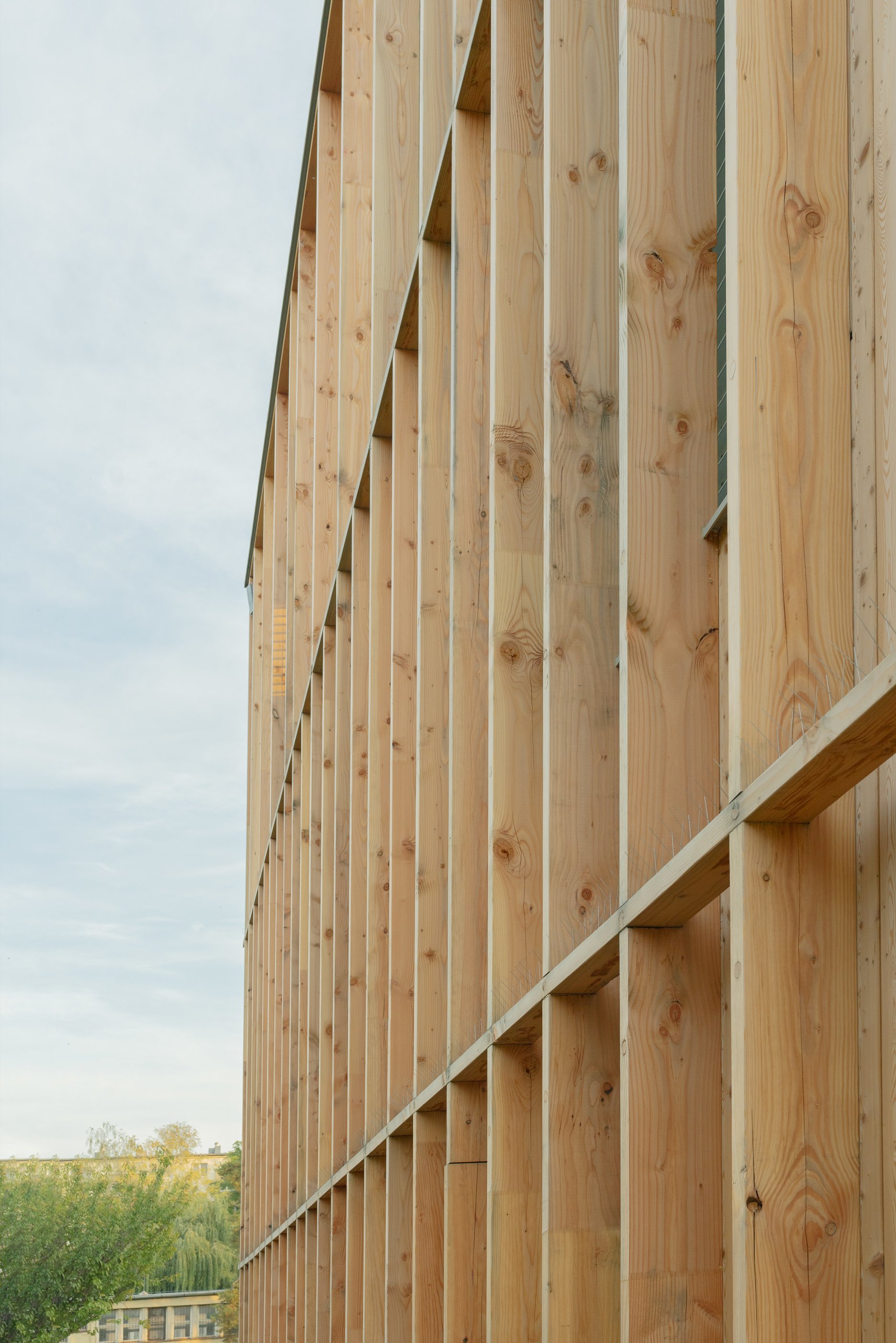 Autorom sa podarilo transformovať zadanie do architektonicky jednoduchej a ekonomicky efektívnej podoby. Priestorový raster zo smrekovcového dreva zjednocuje objem a integruje prvky fasády. Povahe projektu zodpovedá riešenie interiéru, s akcentom na použitie dreva.