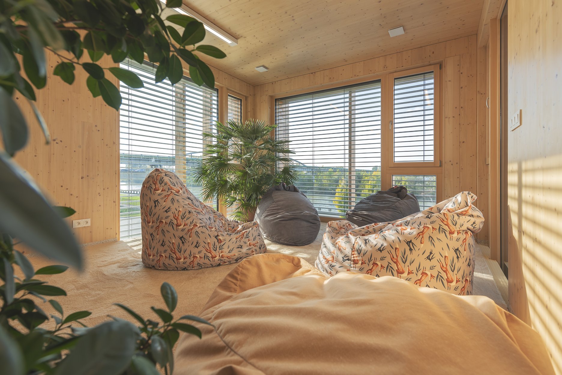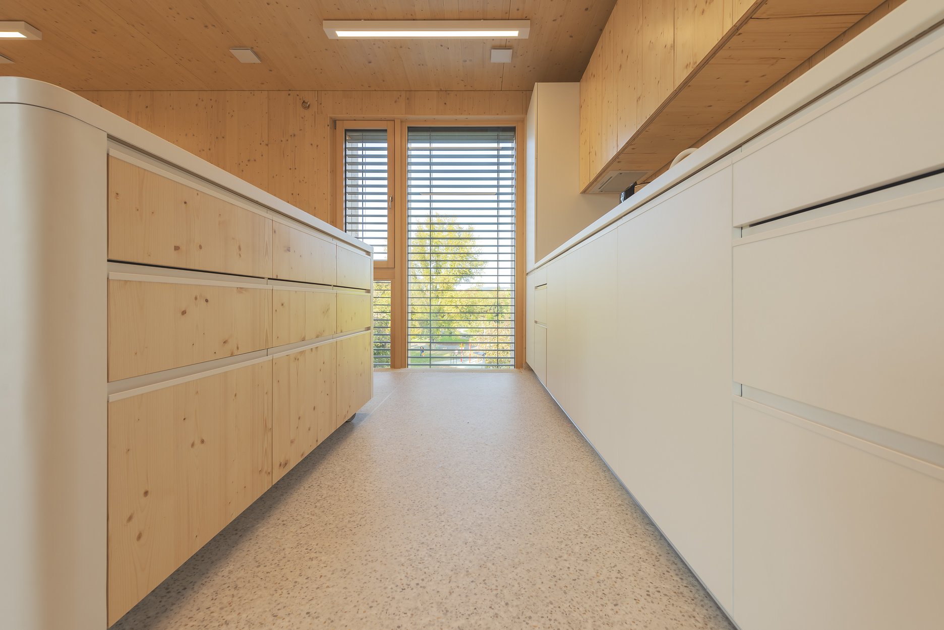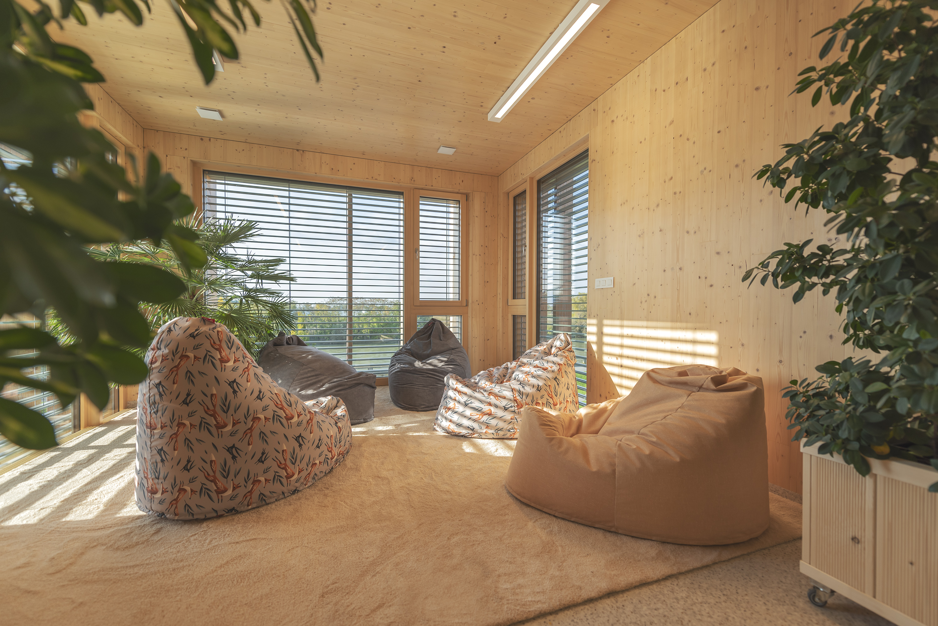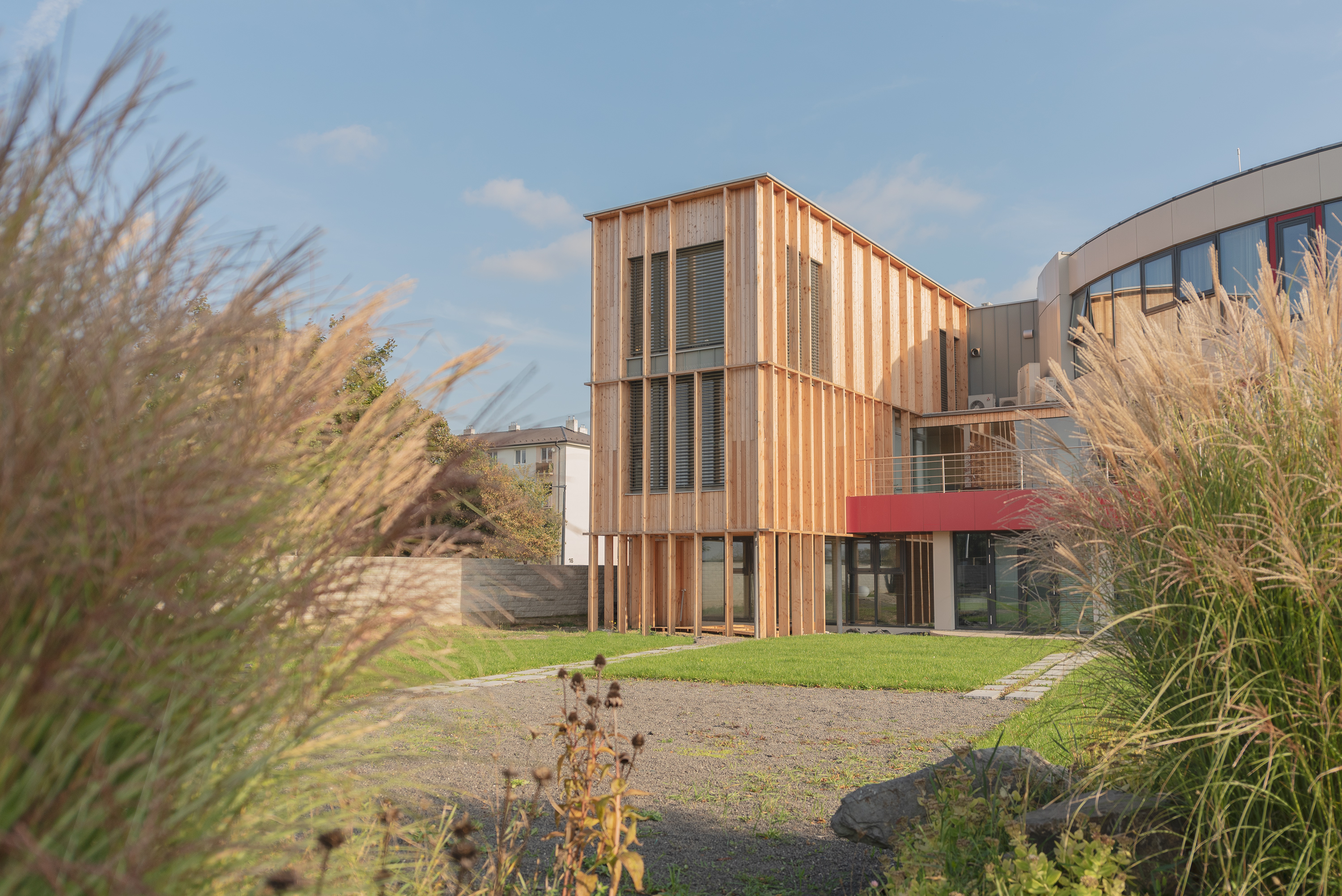 Prístavba v sebe spája nekonvenčné riešenie interiéru, zaobalené konštrukčnými materiálmi z obnoviteľných zdrojov. Aplikované technológie ako chladenie podzemnou vodou a rekuperácia vzduchu umocňujú ekologické aspekty realizácie.