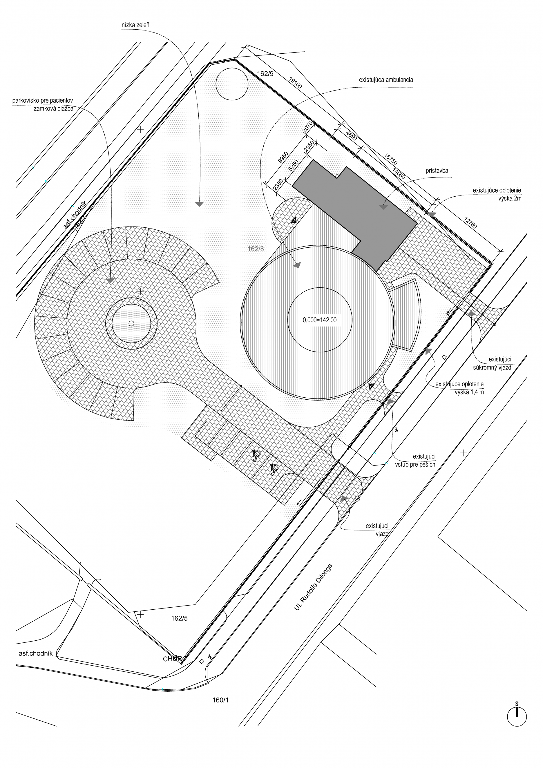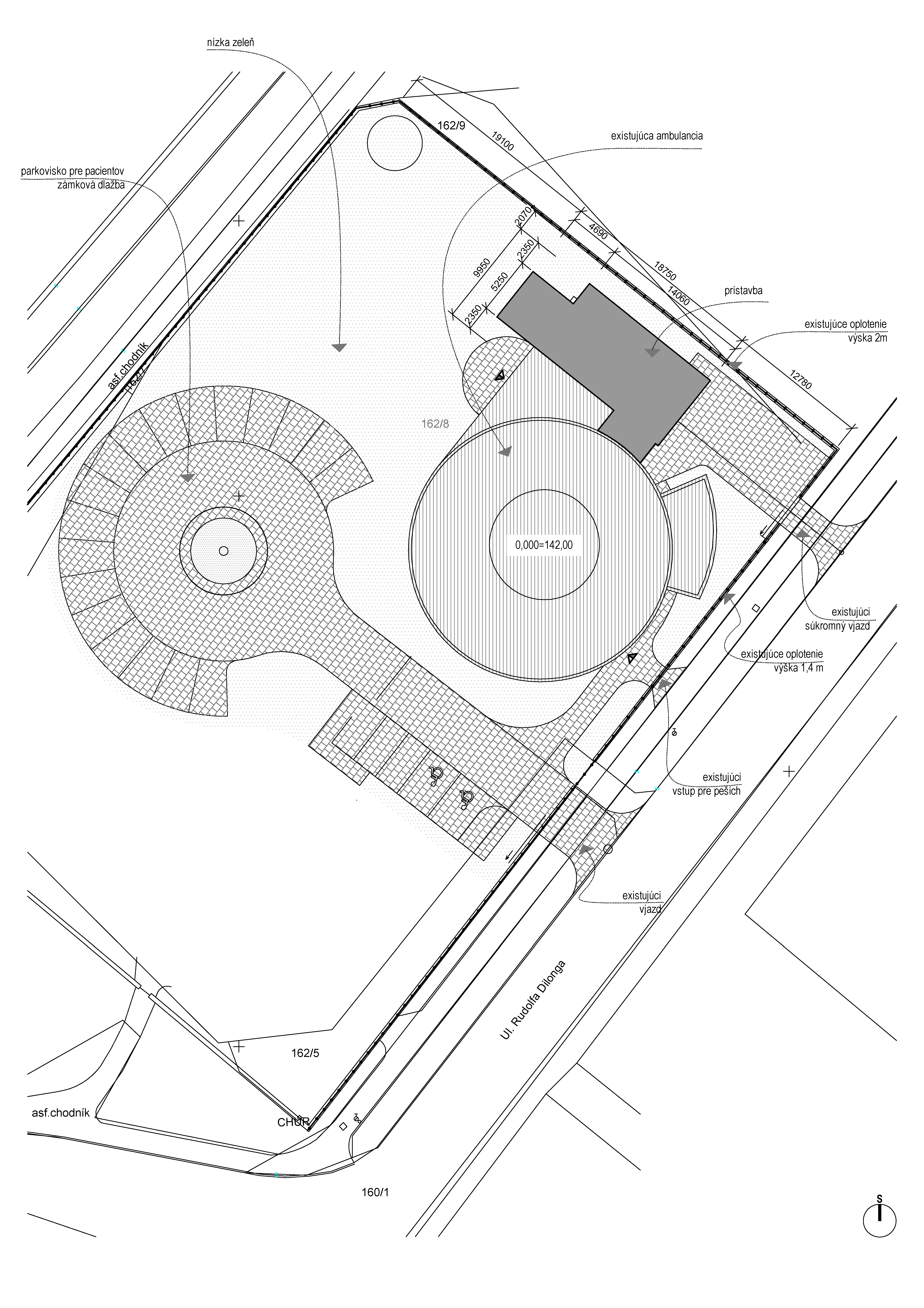 Prístavba dentálneho centra v širšom centre Hlohovca, v susedstve a verejným parkom a priamym kontaktom s povodím rieky Váh.