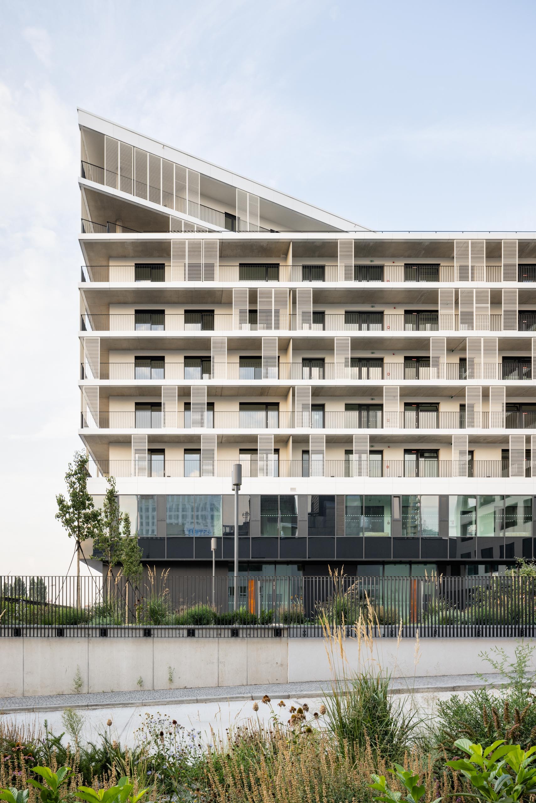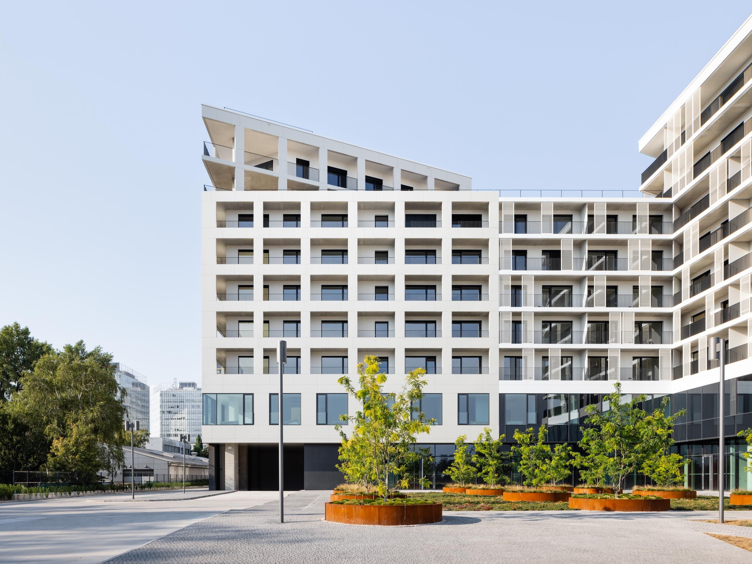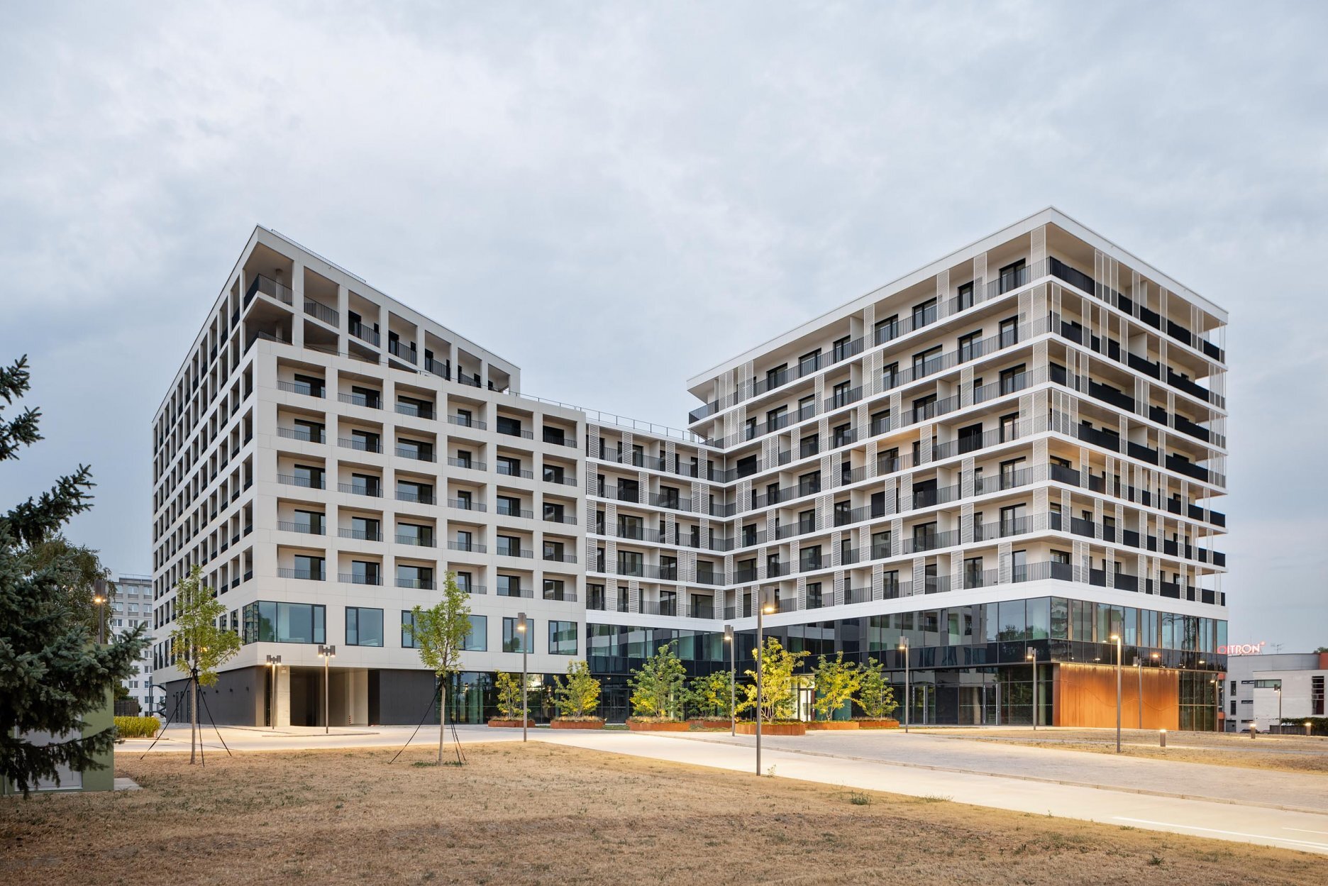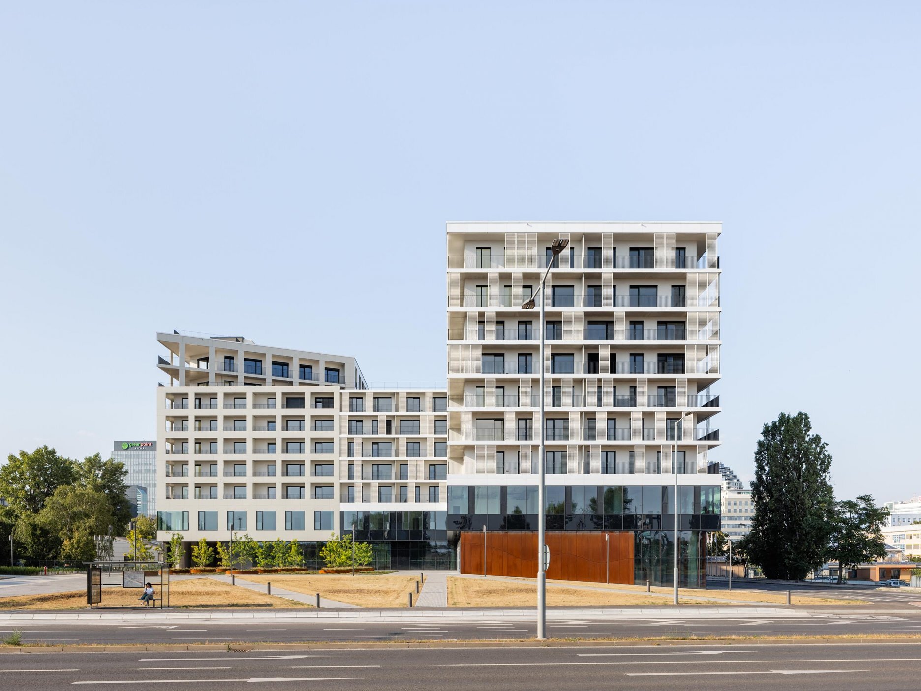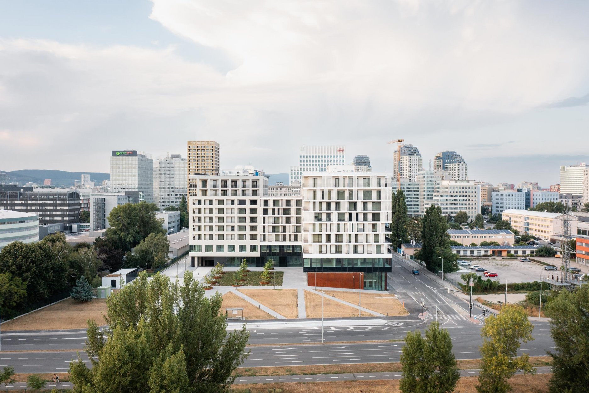 Projekt ateliéru AVK ARCHITECTS si prešiel od návrhu po realizáciu kľukatou cestou. Napriek tomu si výsledná architektúra zachováva jasne čitateľnú a artikulovanú štruktúru, ktorú vnáša do rýchlo sa meniacej lokality. Stvárnenie fasáy navonok reflektuje skladbu funkcií v rámci objektu. Dynamiku do výslednej kompozície vnáša skosený blok najvyšších ustúpených podlaží a premenná v podobe pohyblivých prvkov tienenia.