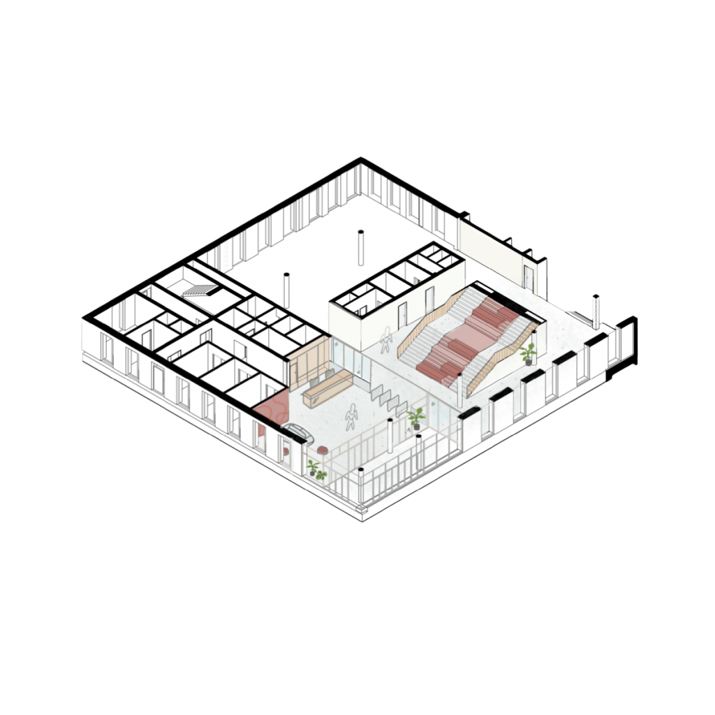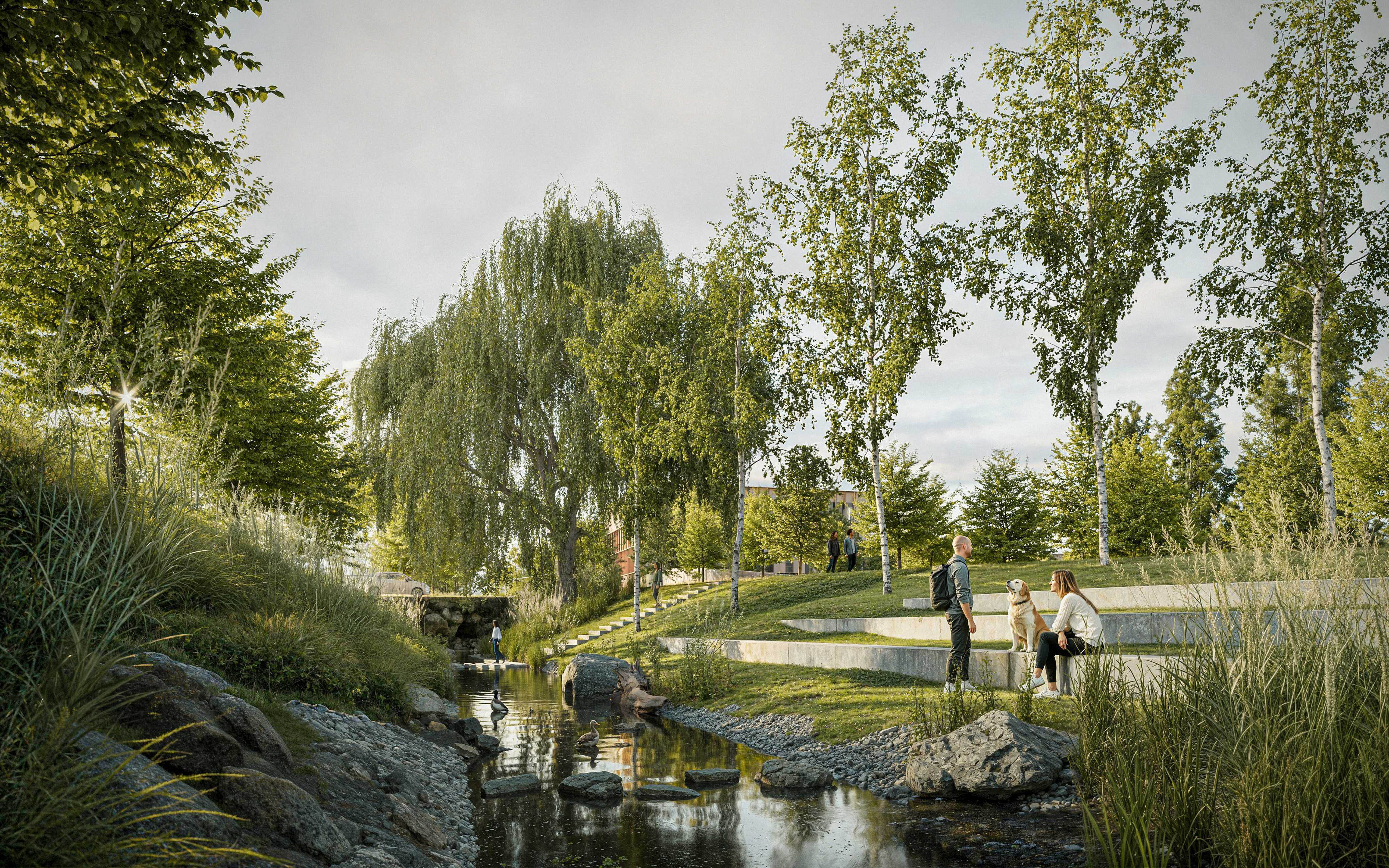 Projekt vstupuje do historického priemyselného areálu s cieľom jeho celkovej rekultivácie, sprístupnenia verejnosti a zabezpečenia priechodnosti územia. Autori kladú dôraz na vytvorenie otvoreného a prístupného prostredia, ktoré podporuje interakciu so susednými komunitami. Okolie je prispôsobené chôdzi a cyklistike.