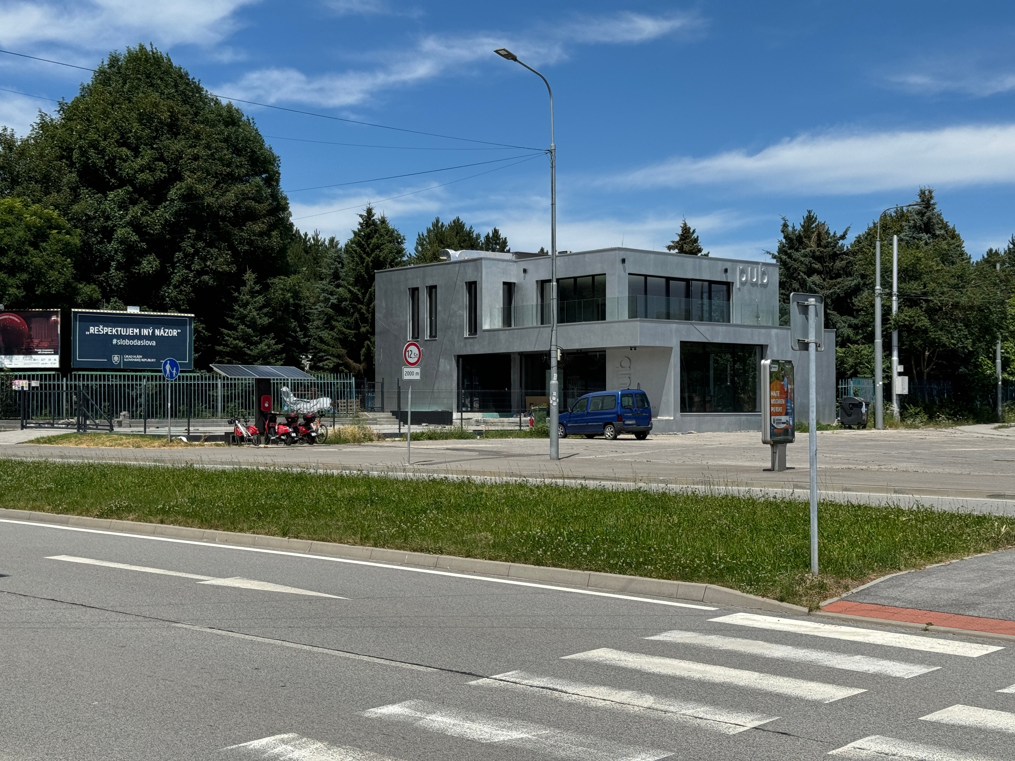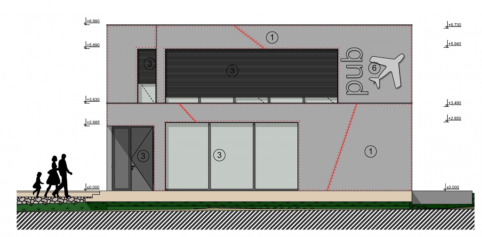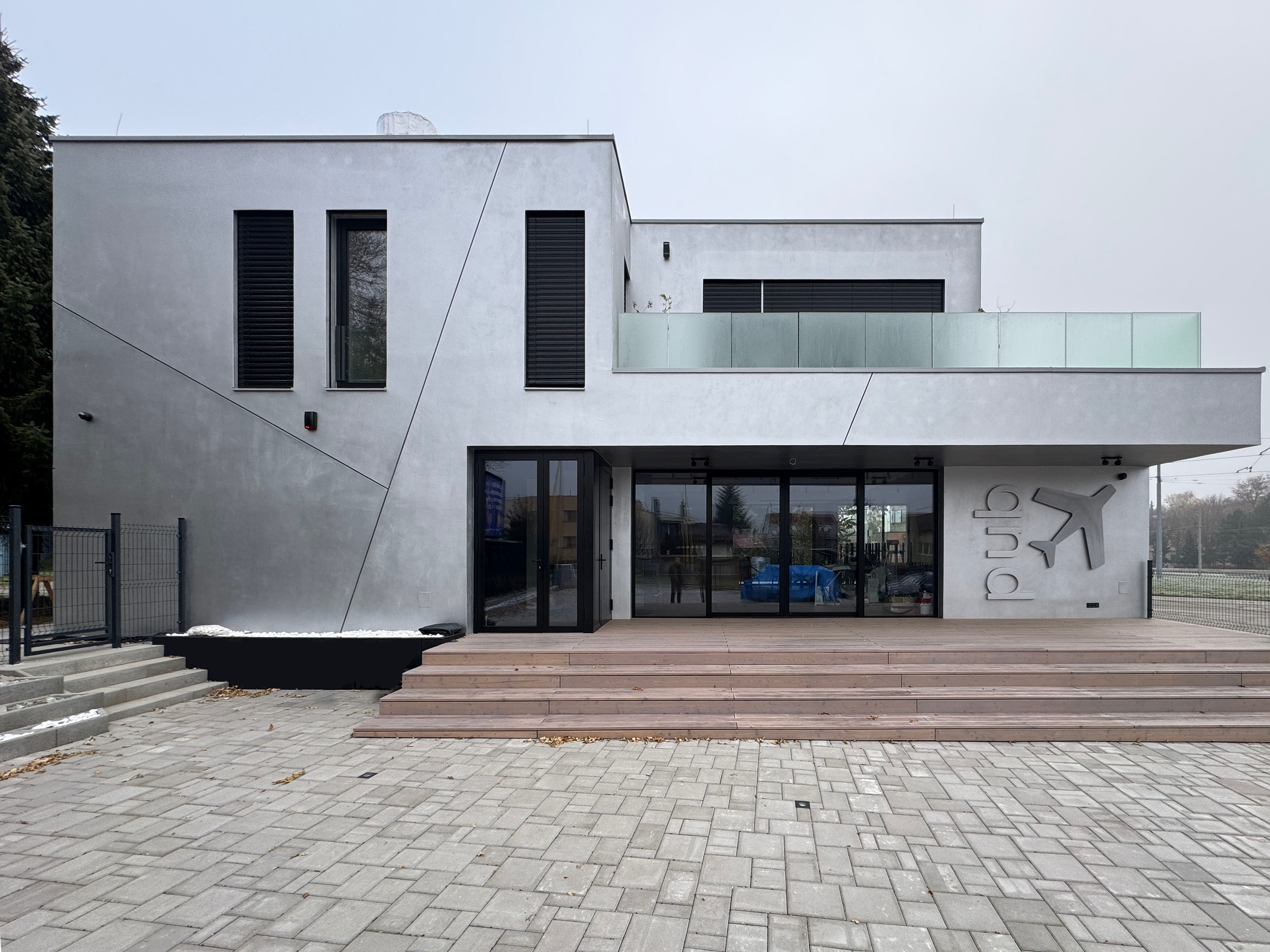 “Na tomto mieste kedysi stála búdka s občerstvením a na dobovej fotografii vidno aj ´tryskáč´ MiG-15. Chceli sme urobiť fasádu zo starého plechu, aký bol na hangároch a lietadlách, aby sme odkázali na stíhačku, ktorá tu stála a dala miestu meno. Plánujeme ešte pridať nity po škárach omietky,” približuje východiská návrhu architekt Marek Bakalár.
