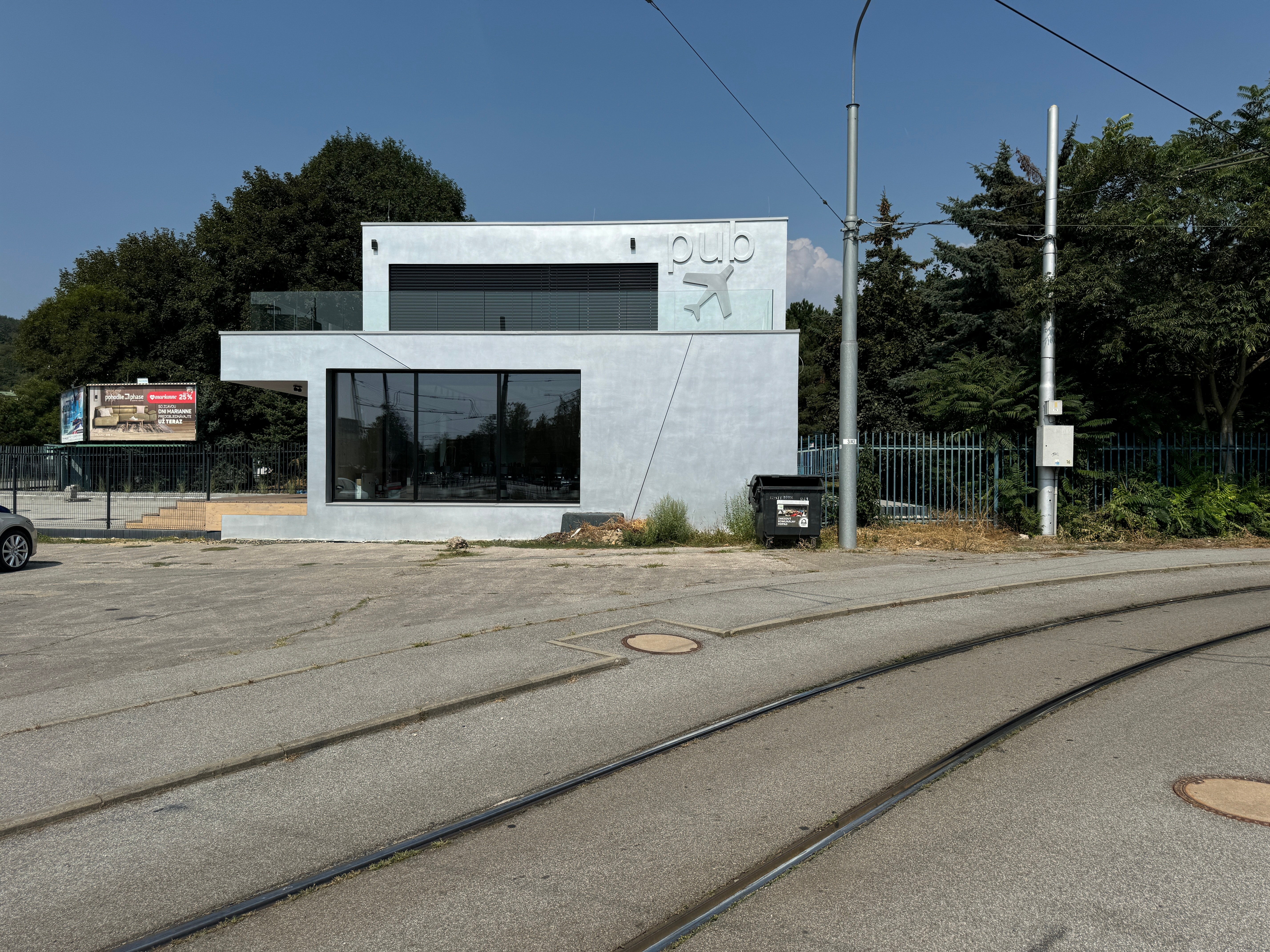 Novopostavený Pub Tryskáč sa nachádza v mestskej časti Košice-Sever, priamo v areáli štadióna Lokomotíva na južnom okraji lesoparku, ktorý oddeľuje električkové obratisko od športoviska.