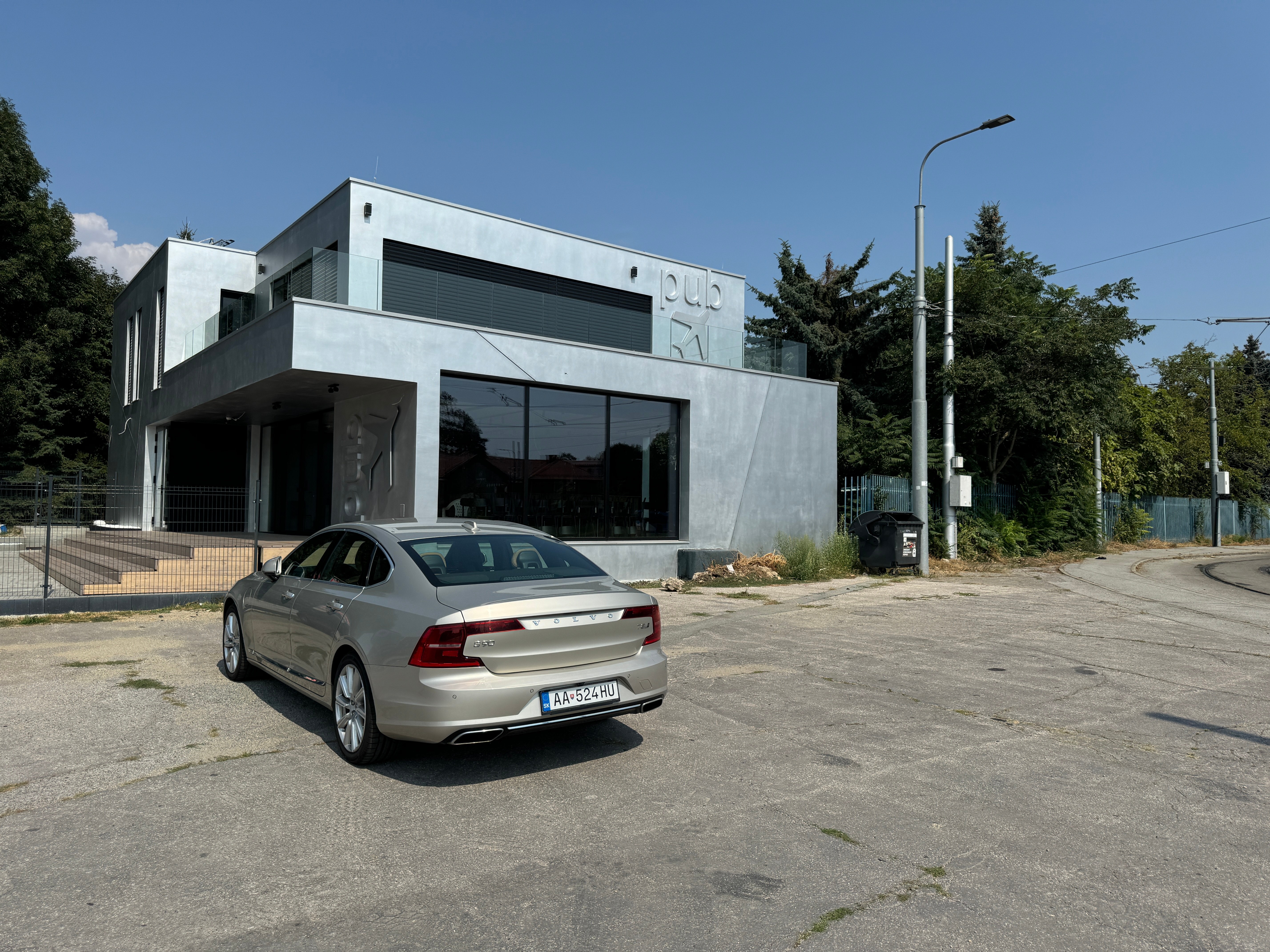 Architektonický výraz stavia na kontraste materiálov a farieb: strieborná hladká omietka a drevené terasy sú protiváhou antracitových okenných rámov a lamiel tienenia. Obvodové steny zateplené minerálnou vlnou zabezpečujú tepelný komfort, zatiaľ čo interiér charakterizuje kombinácia CLT panelov a drevenej stĺpikovej konštrukcie. Tryskáč Pub tak spája ekologické princípy drevostavby s funkčným dispozičným riešením a nadväzuje na charakter solitérnych objektov v okolí.
