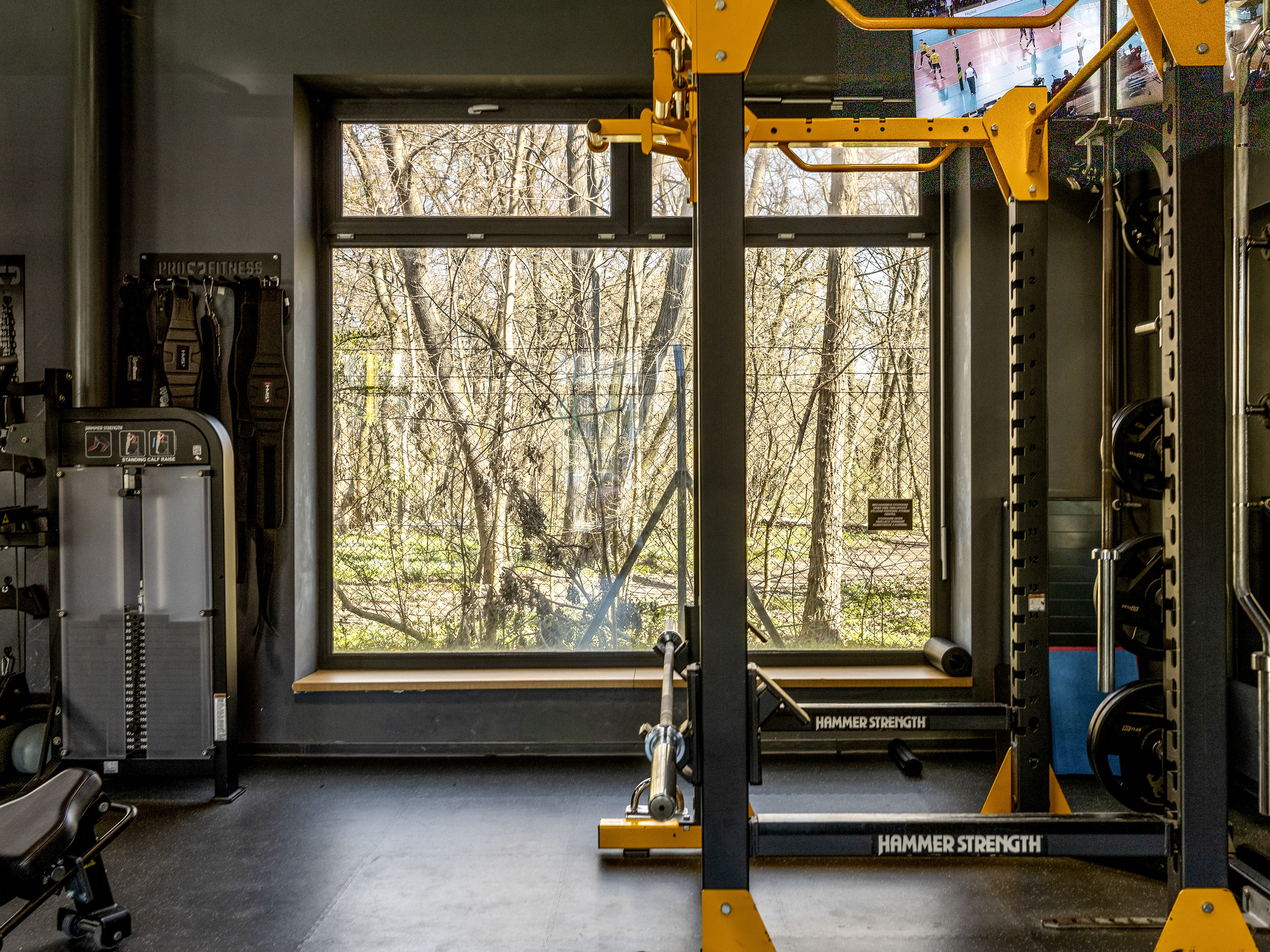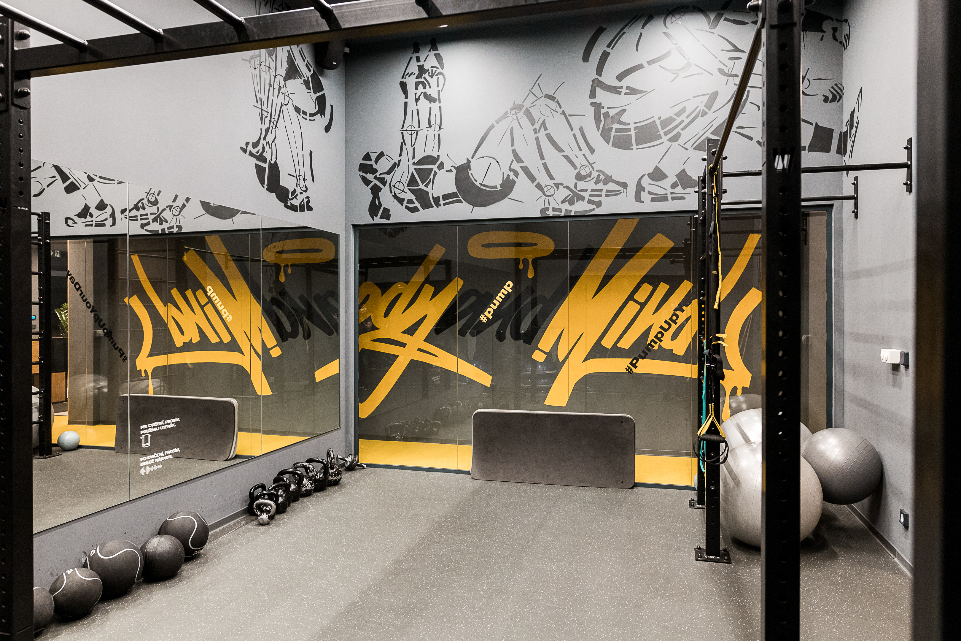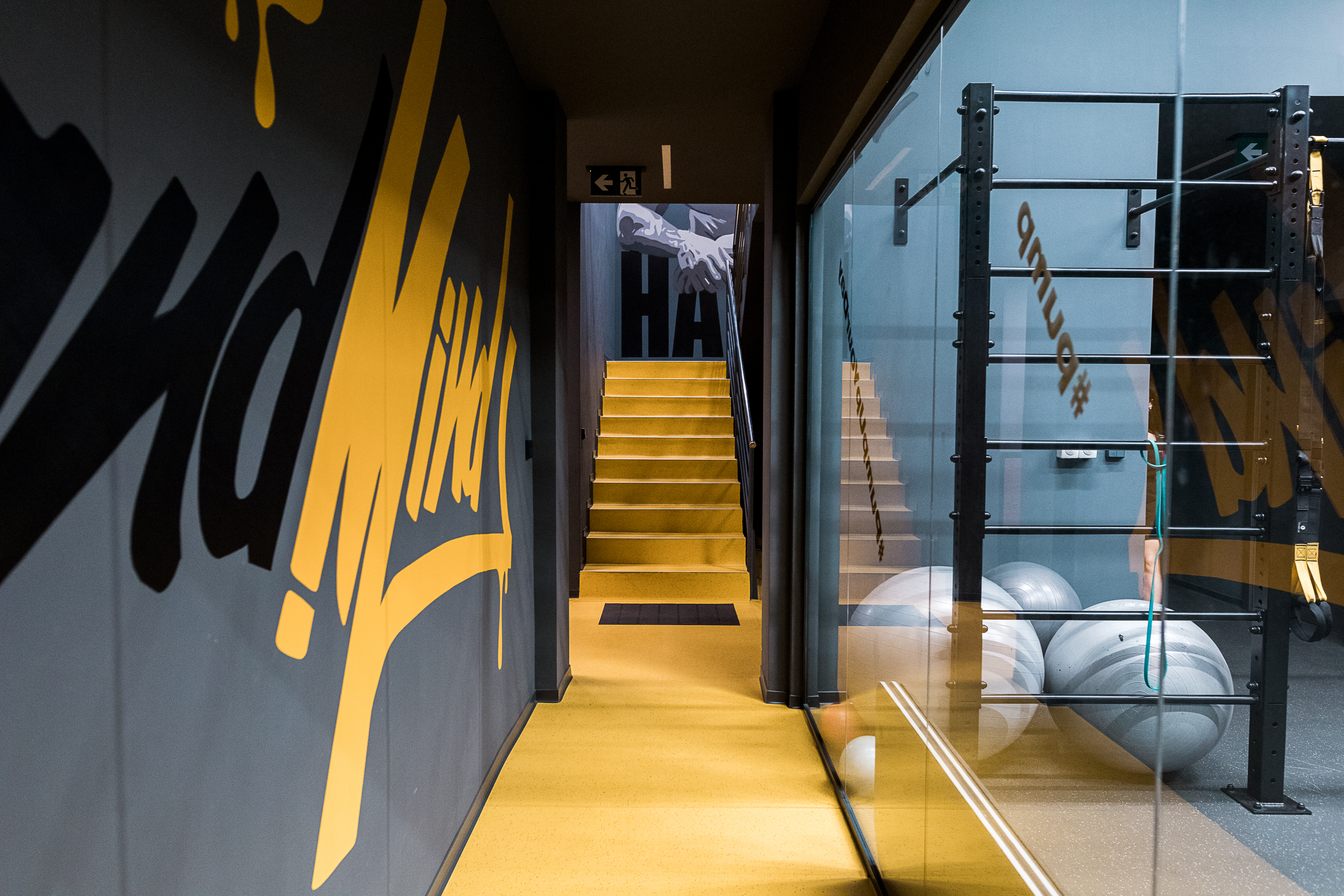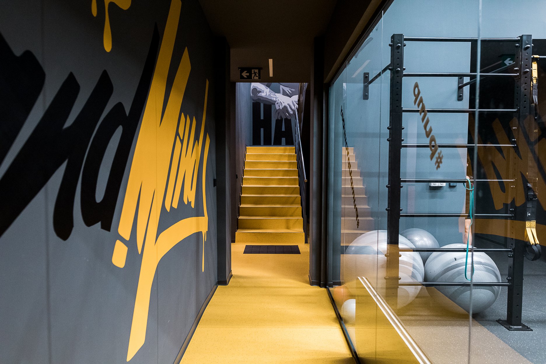 Dizajn priestoru spája industriálny vibe s prvkami, ktoré podporujú pohodu a prirodzený pohyb. Hrubé betónové povrchy sú v kontraste s masívnym drevom, ktoré prináša do priestoru teplo a organickosť. Minimalistické kovové detaily a recyklované materiály vytvárajú atmosféru funkčnej jednoduchosti, ktorá odráža filozofiu samotného fitness centra – efektivitu, silu a udržateľnosť.