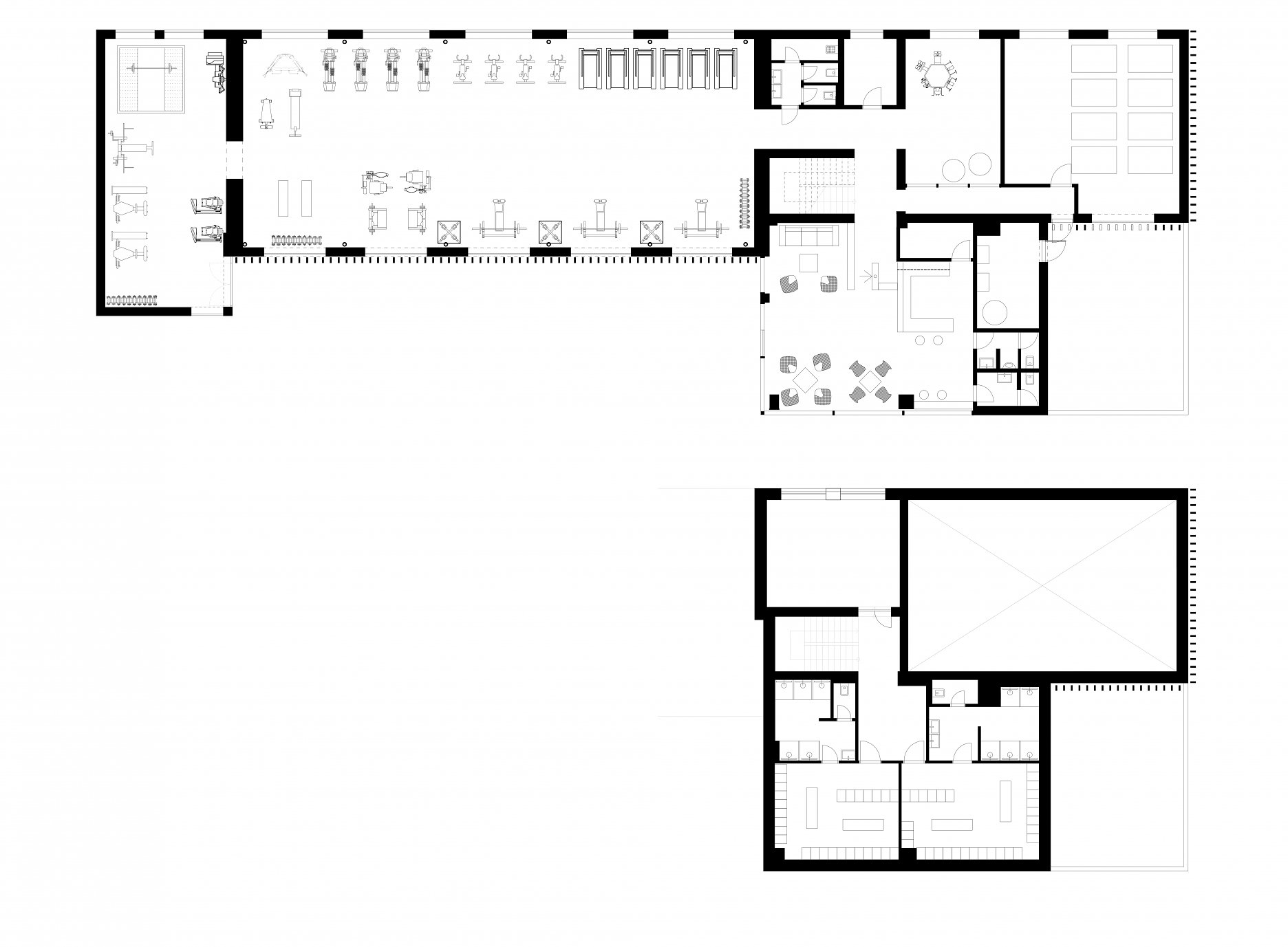 Zachovanie nosných prvkov, oceľových konštrukcií a priemyselného charakteru budovy bolo základným východiskom projektu. Namiesto toho, aby sa pôvodné materiály odstránili, boli zrenovované a znovu integrované do nového konceptu. Oceľové nosníky ostali priznané, betónové steny dostali nové textúry a hrubozrnný industriálny charakter priestoru bol obohatený o teplejšie prvky – prírodné drevo, výrazné farby a premyslené osvetlenie.