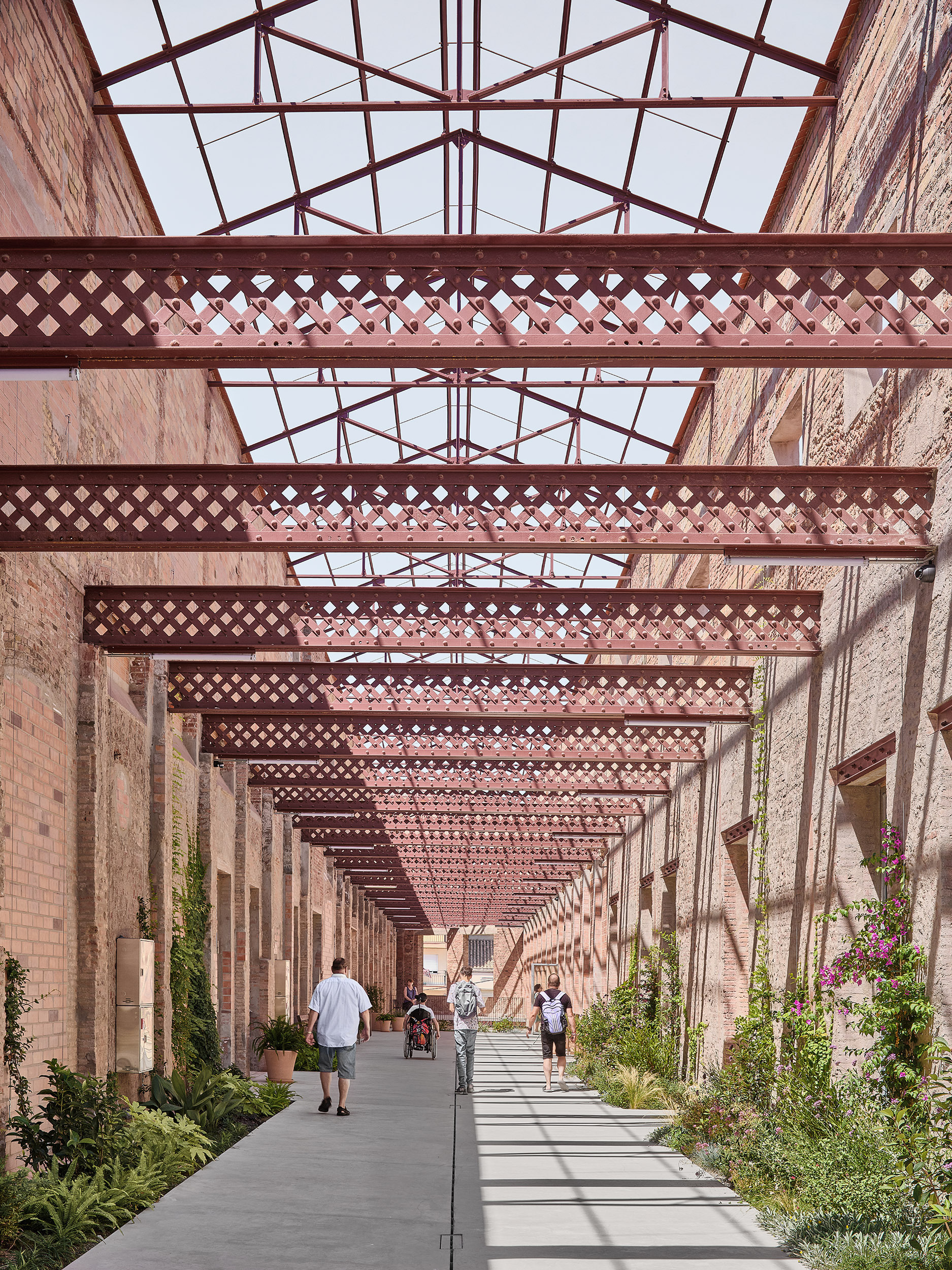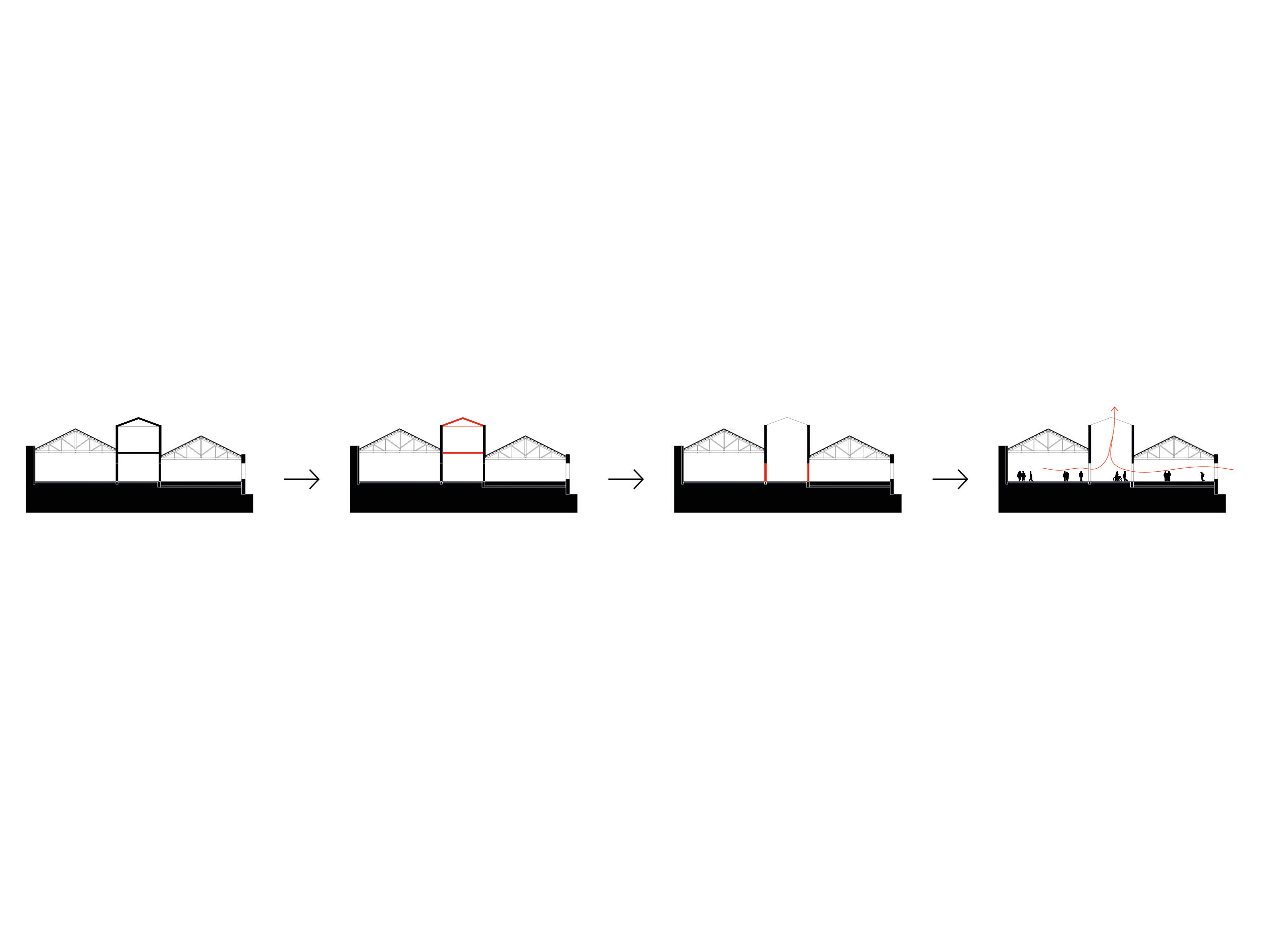 Architekti vychádzali z pôvodnej hmotovej skladby areálu, ktorú tvorili dve haly a voľné priestranstvo medzi nimi. Práve tento medzipriestor sa stal základom celého návrhu. Obnovená stredová pasáž dnes funguje ako nová mestská ulica, ktorá vedie naprieč areálom a organizuje pohyb aj každodenné fungovanie centra.