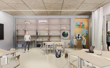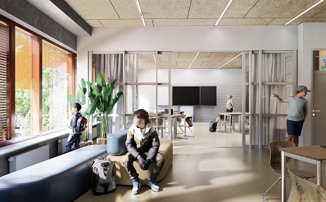 Dospeli sme k záveru, že je nutné zameniť pôvodné stereotypné chodbové dispozície s triedami zameranými na frontálnu výučbu za klastrový systém flexibilných priestorov. Ten okrem frontálnej výučby ponúka priestor pre moderné pedagogické procesy, ako sú individuálna práca, projektové a klastrové vyučovanie alebo peer learning. Tak, aby nová škola ponúkala priestory nielen v súlade s novou kurikulárnou reformou školstva, ale aj priestory hodné súčasnej doby.