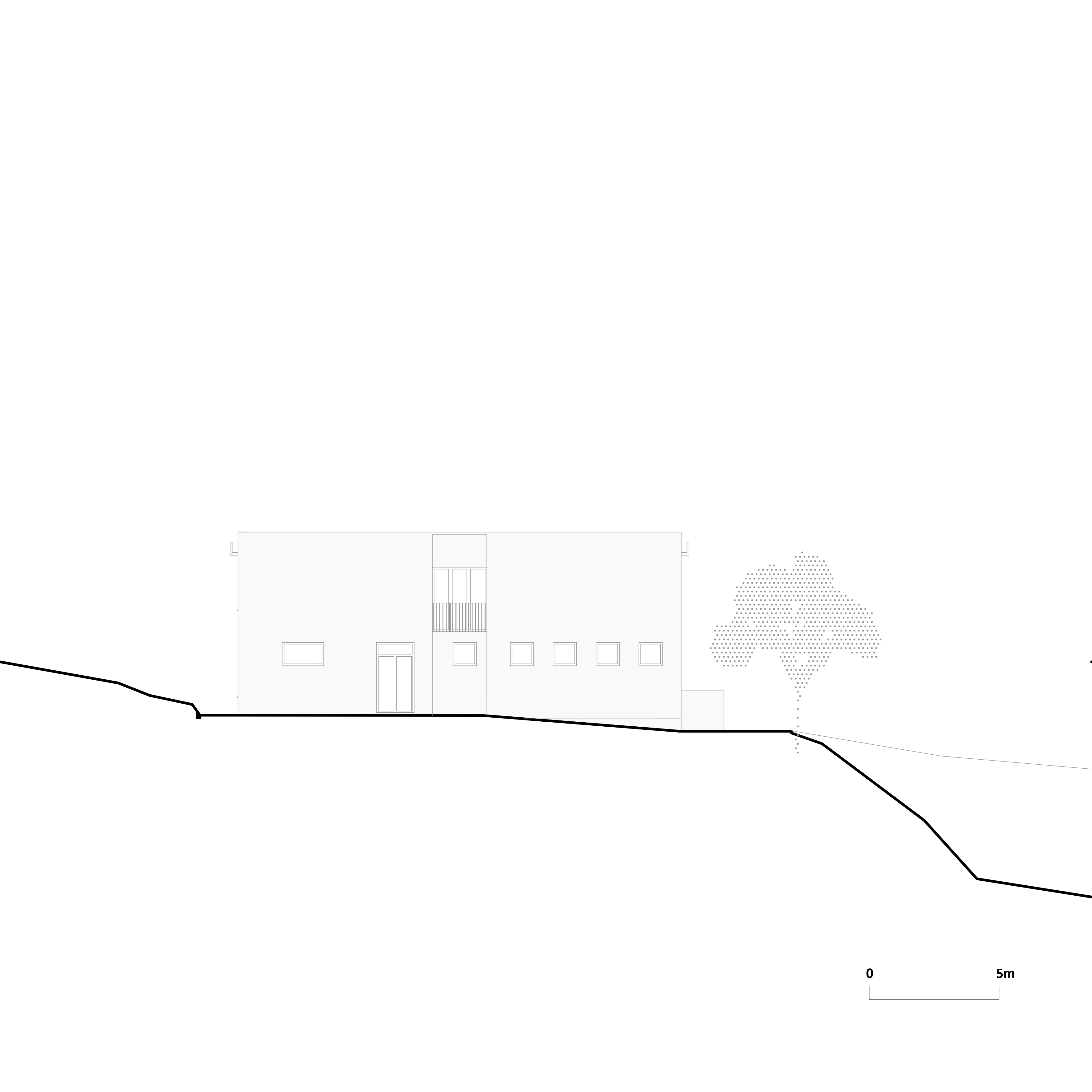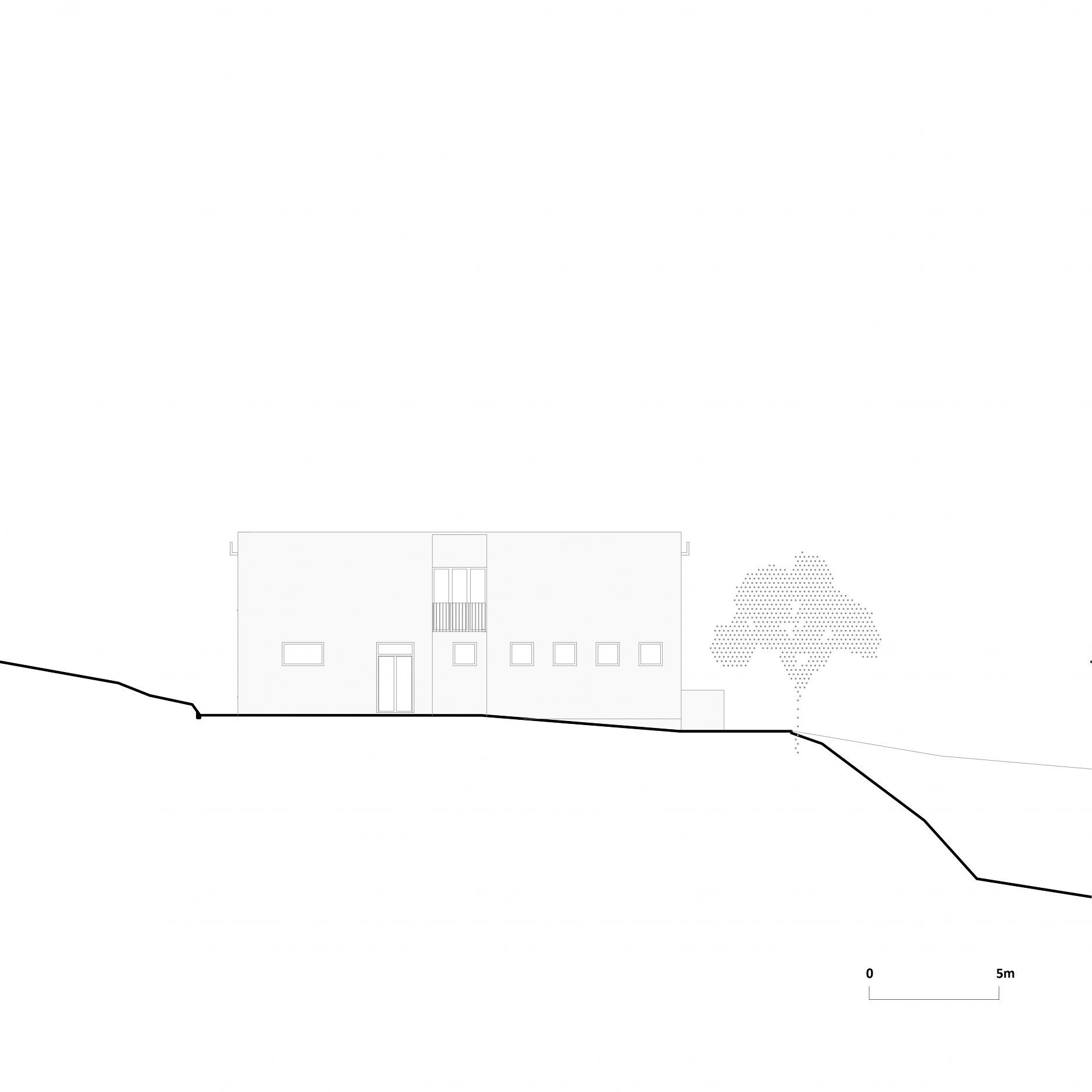 Čistota prefabrikovanej betónovej fasády kontrastuje s farebnou škrabanou omietkou pôvodnej budovy. Samotný objekt jedálne nadstavujeme o jedno podlažie pre nové učebne. Nadstavba s jemným výrazovým posunom preberá tektoniku pôvodného telesa. Je jasne odčlenená pôvodnou rímsou objektu, aj keď materiálovo zostáva totožná. Novým prvkom sú jemné “šambrány” okolo otvorov.