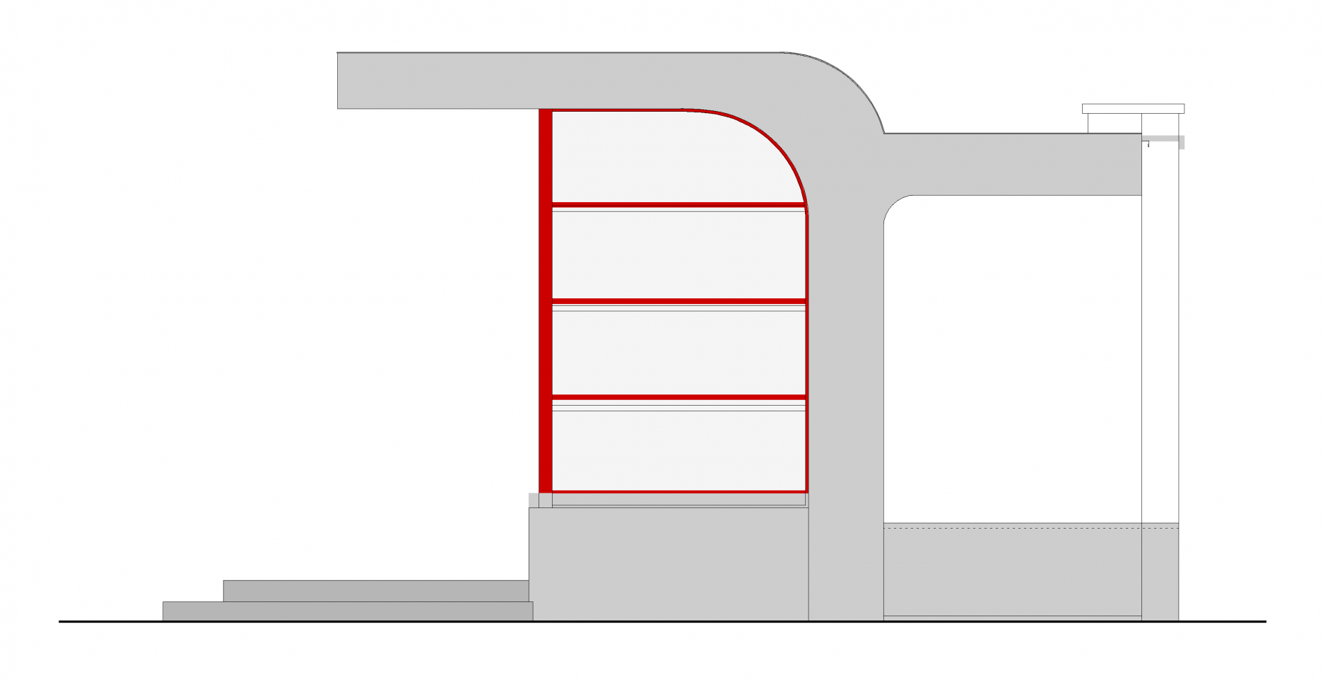 V hornom vnútornom leme škrupiny je nanovo umiestnený zapustený diódový pásik, ktorý osvetľuje priestor prístrešku. Zadné schodisko bolo asanované, výkop zasypaný a prekrytý povrchom z betónových dlaždíc.
