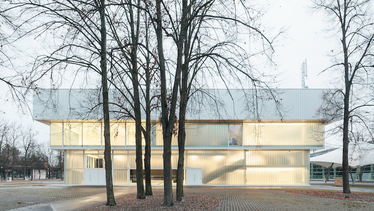 Pavilón pôsobí na prvý pohľad čisto a jednotene aj zvonku. Zatiaľ čo interiér ovláda betónová podlaha a najmodernejšie technológie, exteriér sa nesie v duchu minimalizmu. Spodné dve poschodia sú vzdušné. Výrazový minimalizmus podčiarkuje copilitová stena, ktorá v exteriéri vytvára príjemné farebné efekty. Na subtílne pôsobiace spodné poschodia je osadená zdanlivo ťažko pôsobiaca hmota strechy. Trochu netradične je však zrealizovaná v bielej farbe. Všetko je tak dokonale zjednotené.