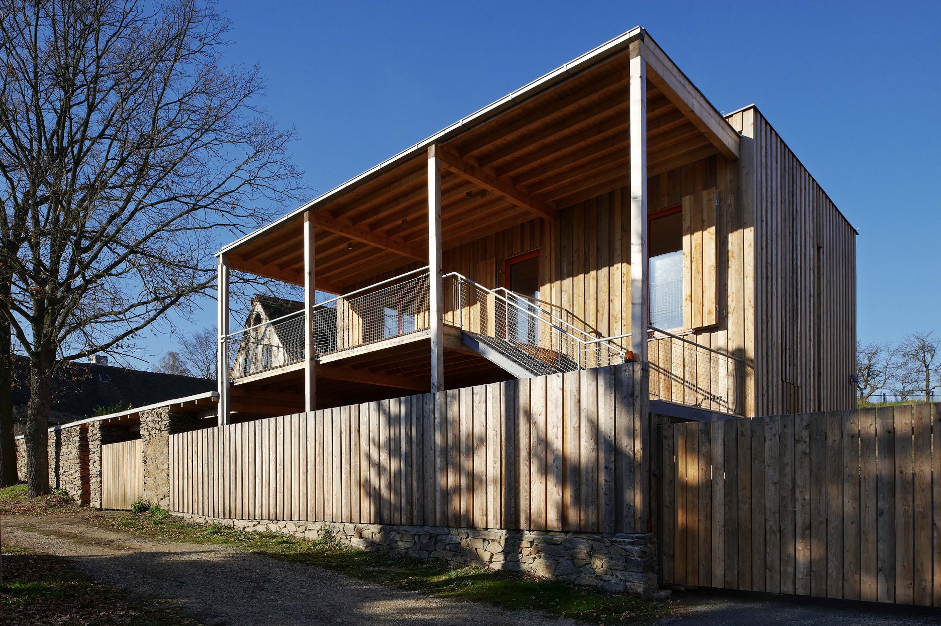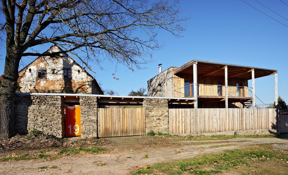 Projekt zviditeľňuje kontrast a vytvára napätie medzi starou a novou architektúrou. Kontrast formy je jasný a čitateľný. Nový objekt je vložený medzi pôvodné objemy bývalej hospodárskej usadlosti - stodolu a obytný dom - a uzatvára pozemok z južnej strany od príjazdovej komunikácie.