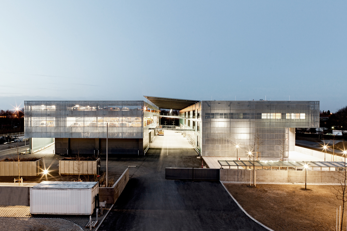 V tejto novej budove sídli nielen riadiace stredisko dopravy, ale tiež servis pre ďalšie prepravné služby. Budova stojí v heterogénnom prostredí v bízkosti Allacher Straße. Na sever od areálu je priemyselná zóna, na juh malé záhradné územia a na západe a východe sú obytné oblasti. Architekti reagujú na tieto rôzne mierky geometricky čistou, nízkou hmotou. Základným kompozičným prvkom sú dva dlhé trakty, ktoré sú navzájom paralelné. Sú orientované v pravom uhle k hlavnej ulici. Budova svojou orientáciou nadväzuje na susediace občianske stavby.