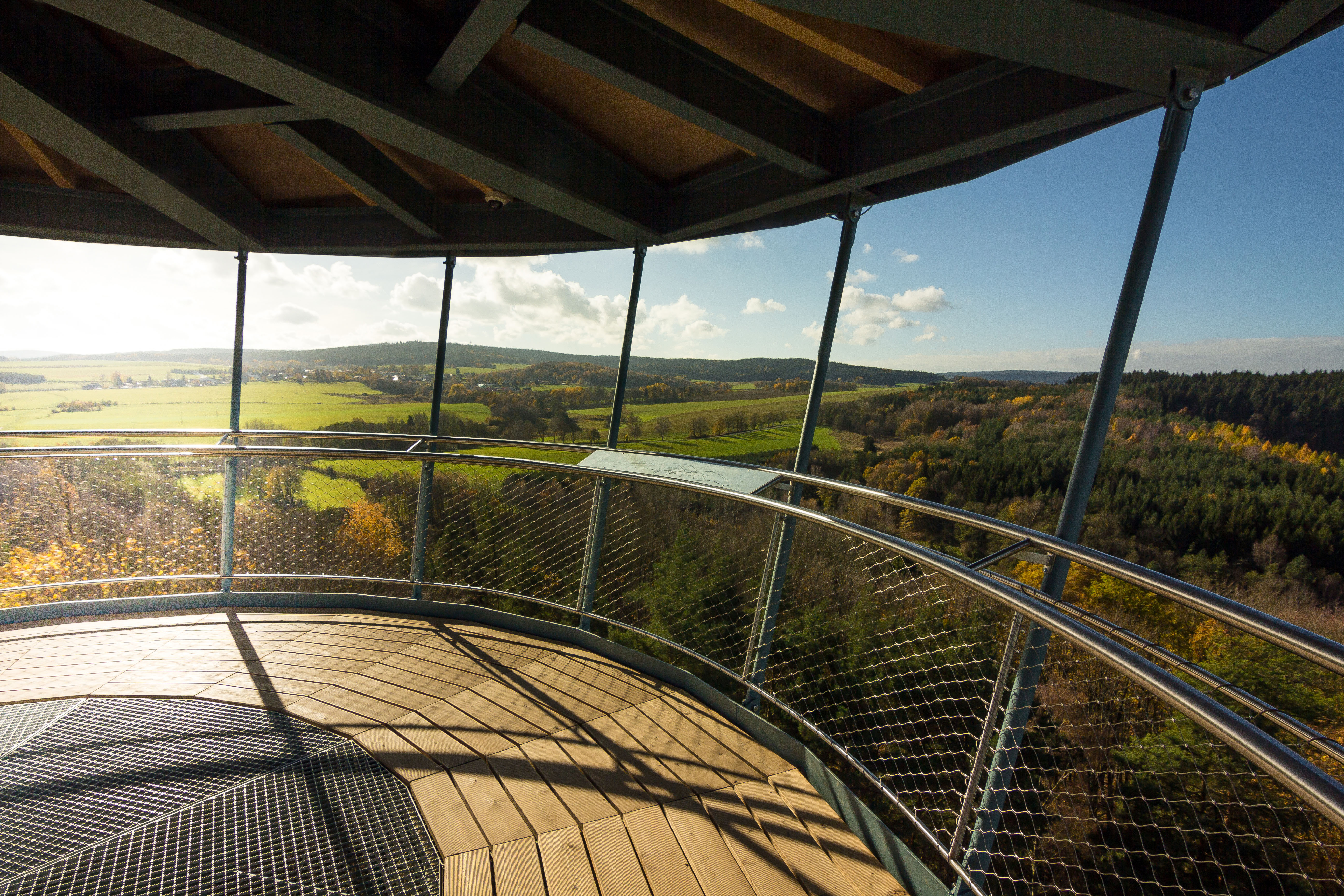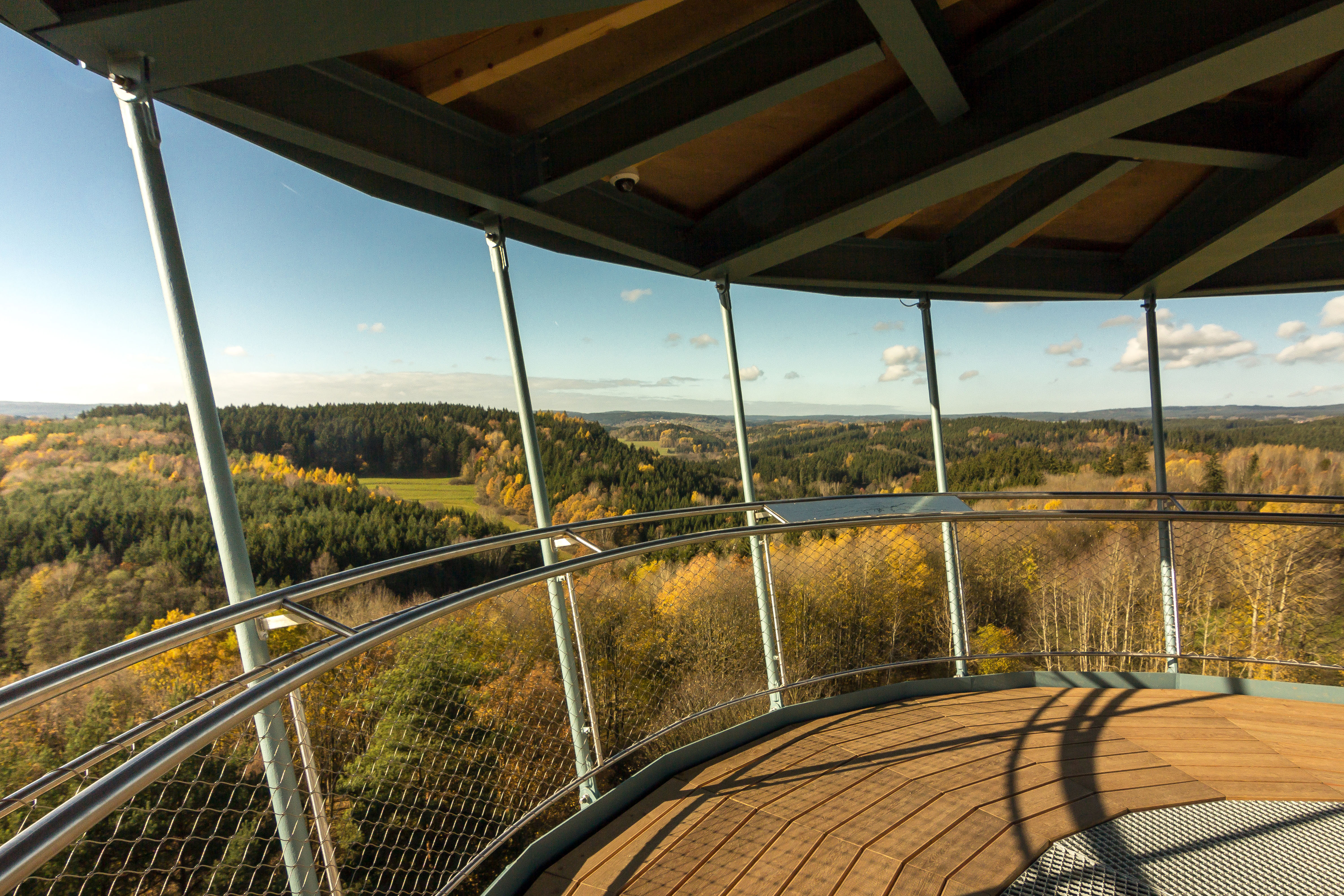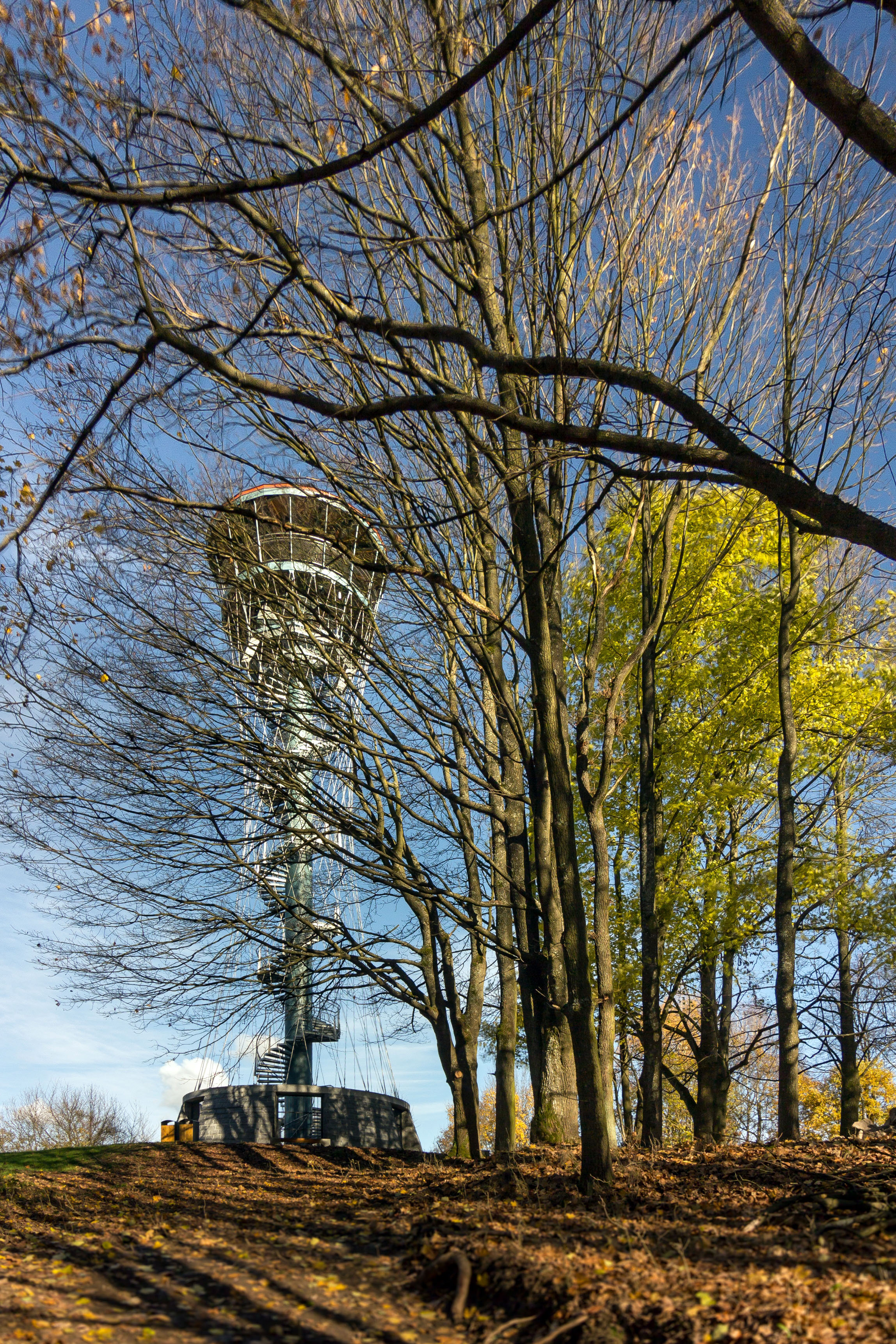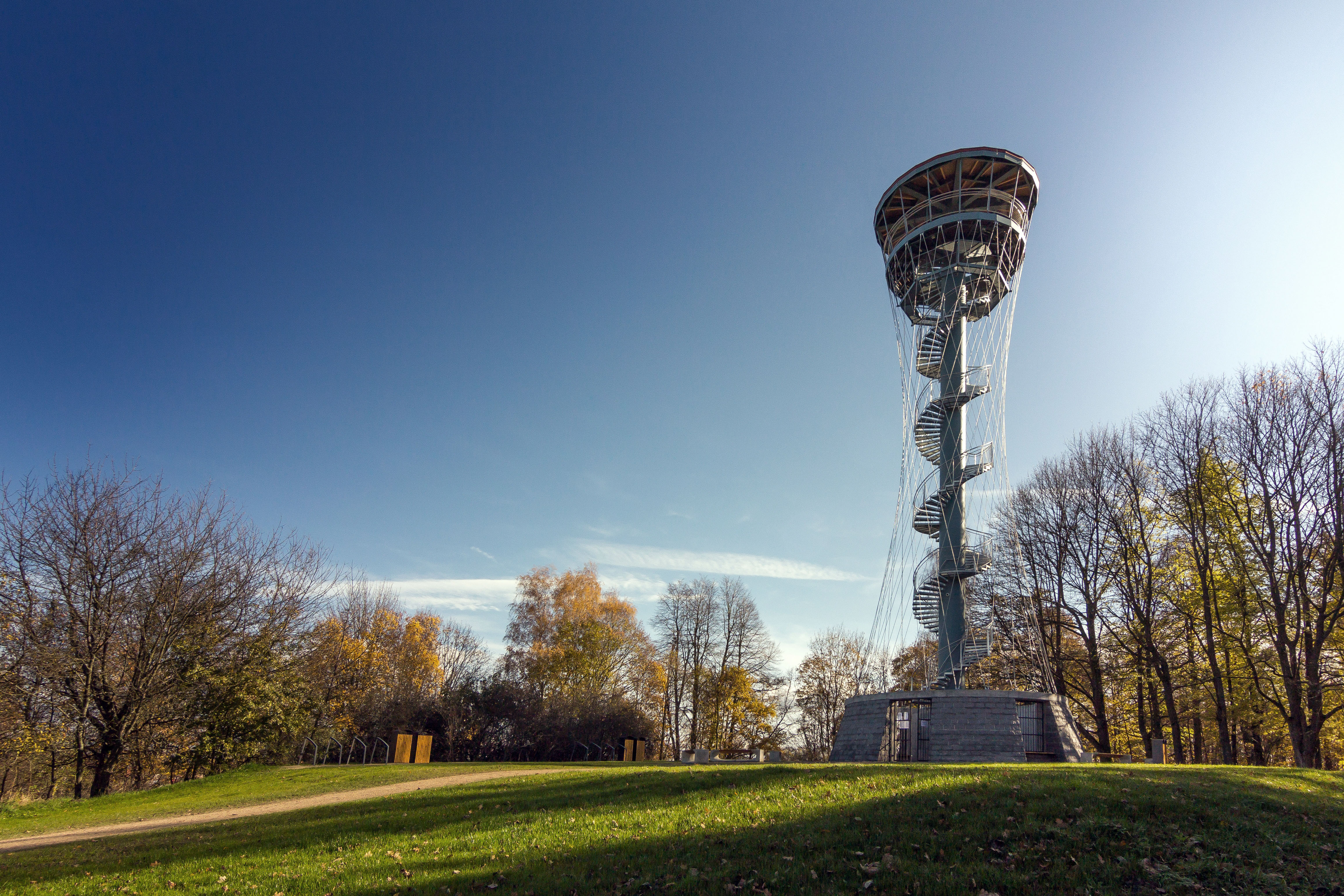 Ochodza je tvorená oceľovou kruhovou plošinou s otvorom pre schodisko. Nosníky plošiny sú votknuté do oceľového stĺpu a súčasne zavesené na hornej tuhej oceľovej konštrukcii strechy. Tým je zaistená dostatočná priestorová tuhosť pochôdznej plochy. Pod vyhliadkovou plošinou je umiestnené technické podlažie, tvorené servisnou lávkou. V ochodze je uzamykateľný otvor pre vstup na servisnú lávku.