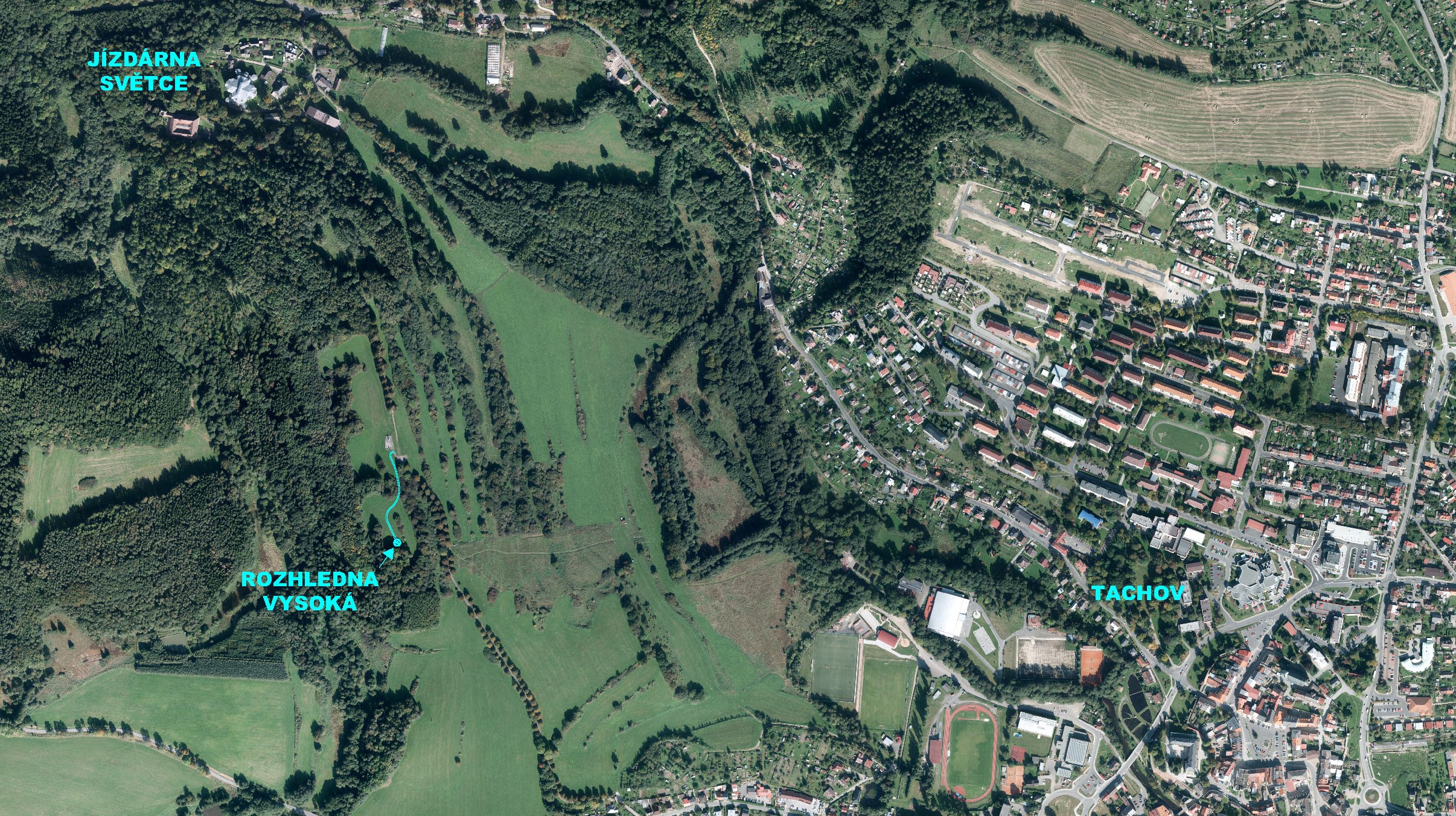 Rozhľadňa Vysoká leží v nezastavanej časti mesta na vrchole kopca Vysoká vo výške 563,7 m n.m. západne od mesta Tachov. Rozhľadňa nadväzuje na rekreačno športovú zónu mesta pozdĺž rieky Mže. leží 500 m od zastavaného územia mesta, 200 m od dočasného konca zjazdovky a 150 m južne od nového pamätníka bitky pri Tachove, ktorého rekonštrukcia bola dokončená v apríli 2015.