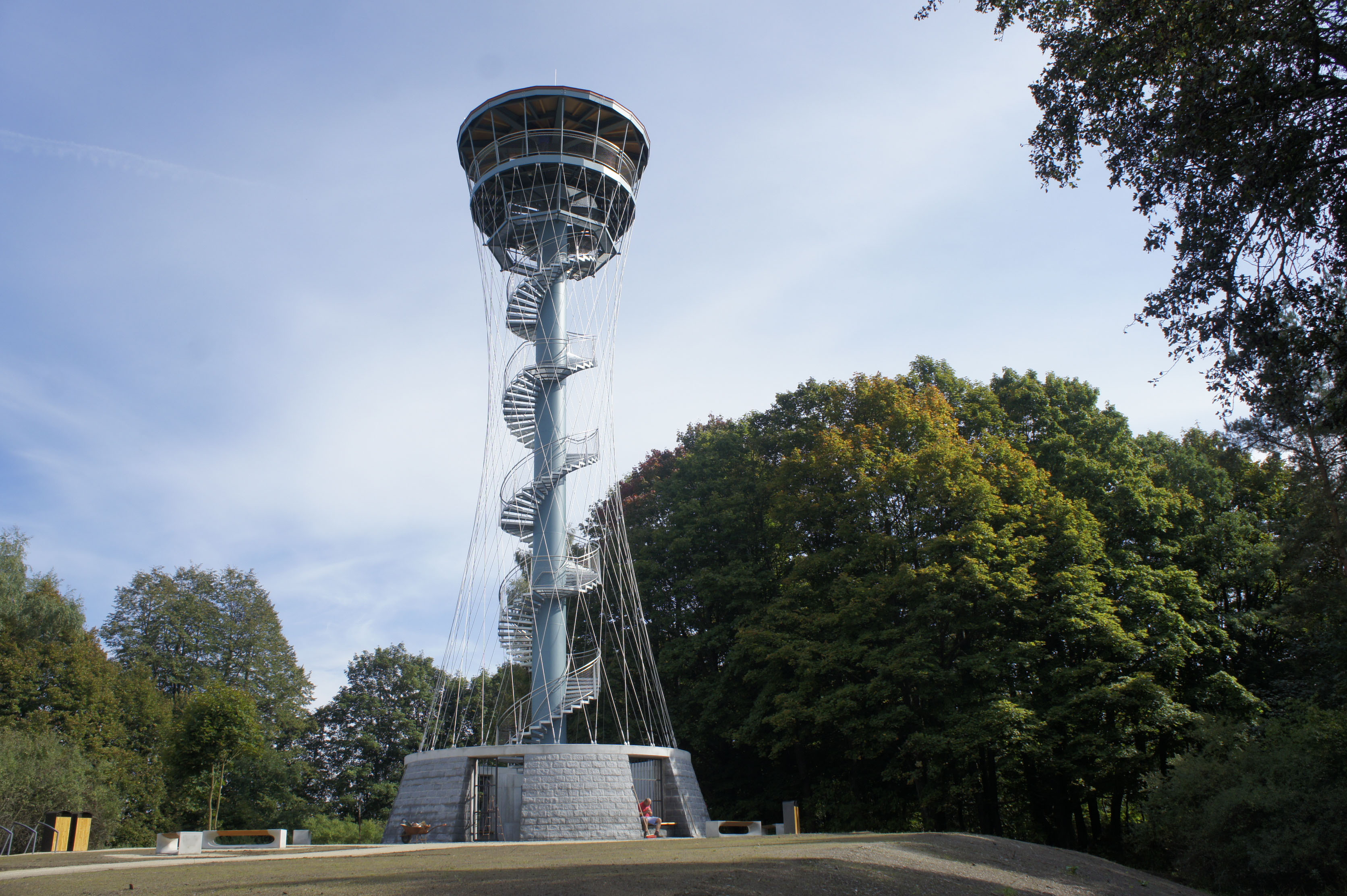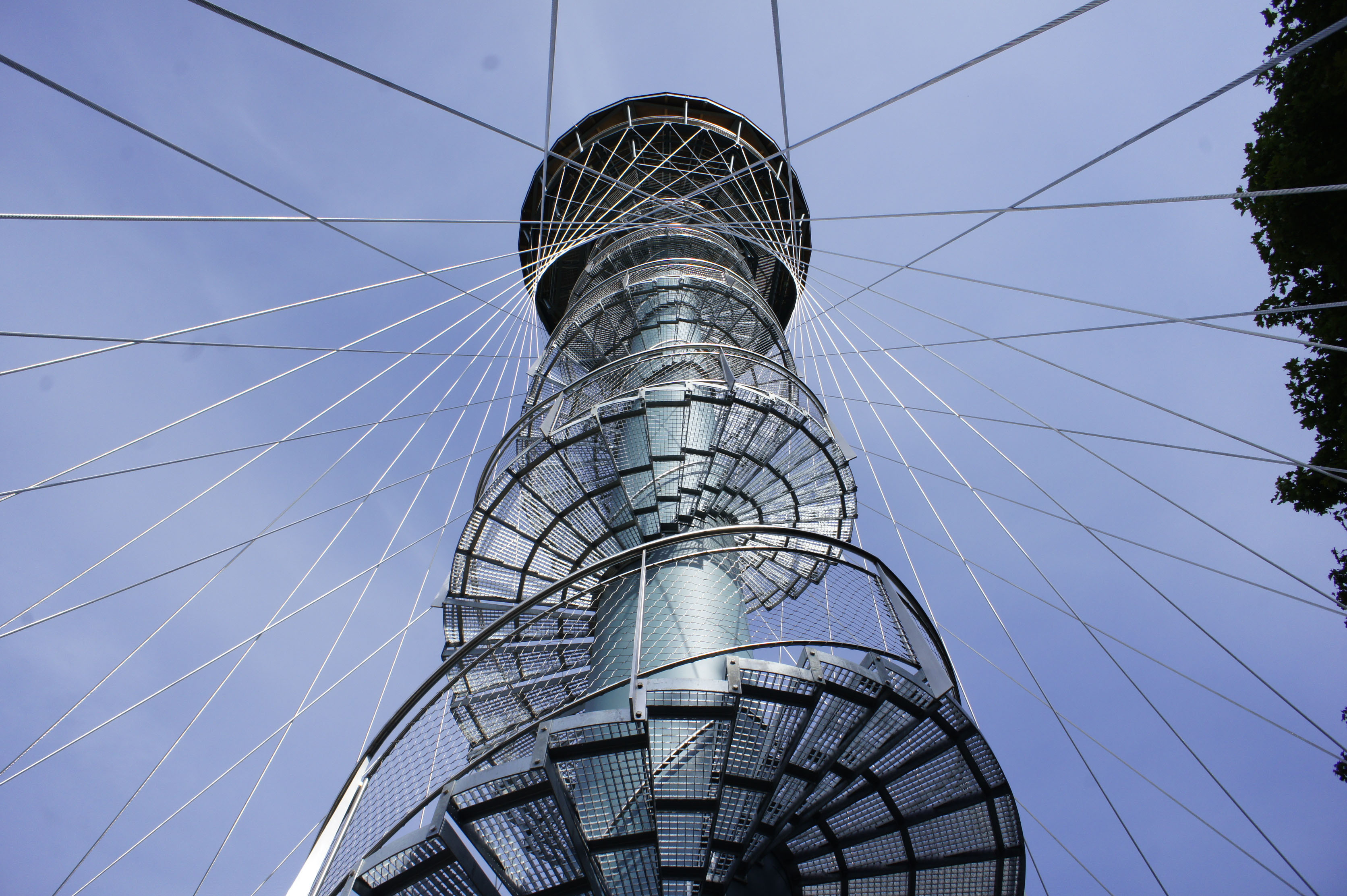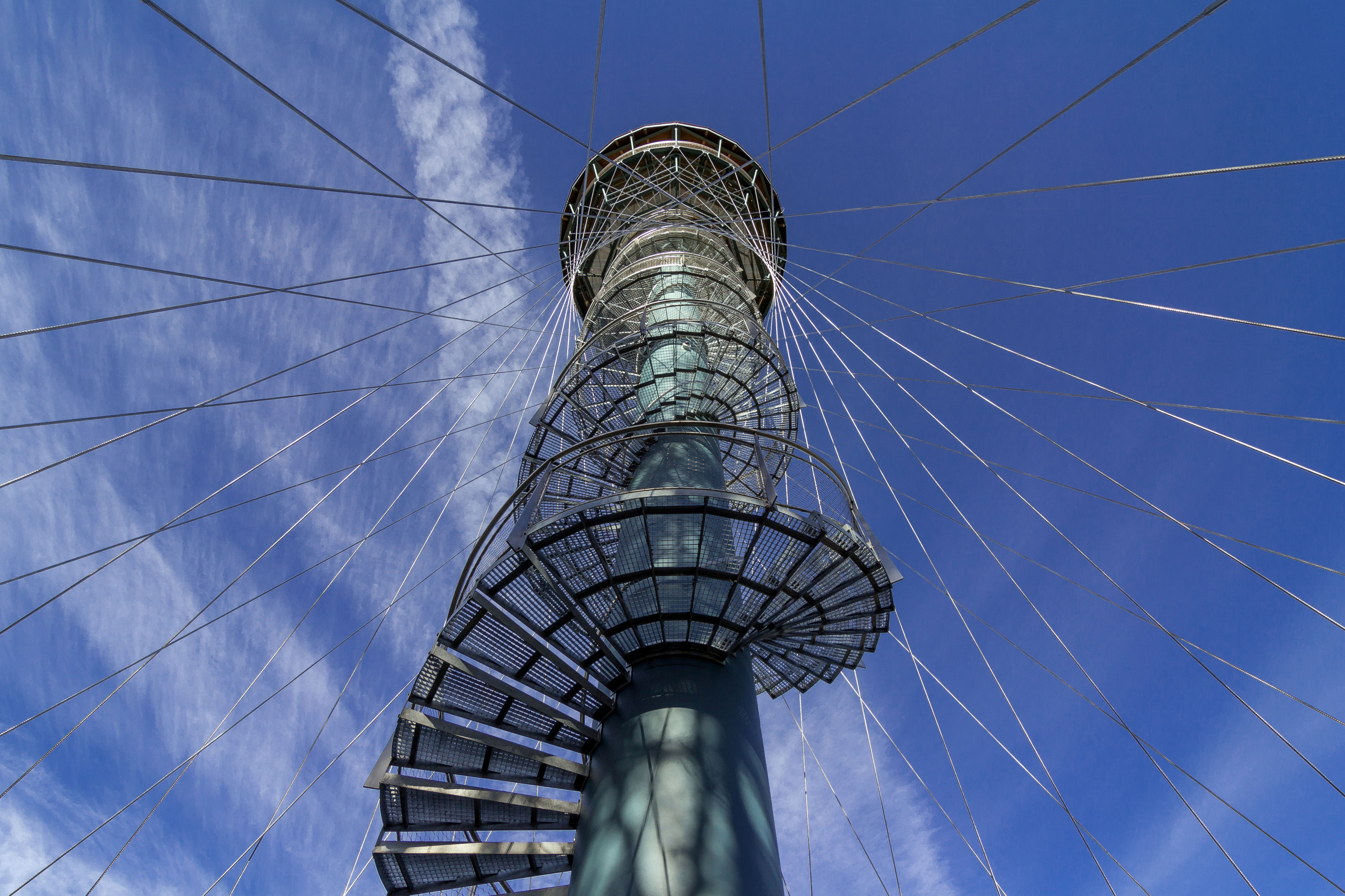 Nosná konštrukcia rozhľadne je tvorená oceľovým stĺpom kruhového prierezu priemeru 1,2 m. Na stĺpe sú upevnené samonosné oceľové schody a podesty opatrené zábradlím. Tuhosť konštrukcie rozhľadne je zaistená oceľovými lanami tvoriacimi sieť v tvare hyperbolického paraboloidu. Laná sú upnuté v oceľovom kruhovom ráme tvoriacim súčasne konštrukciu hornej ochodze. Dole sú laná upevnené na hornej hrane kruhovej železobetónovej steny.